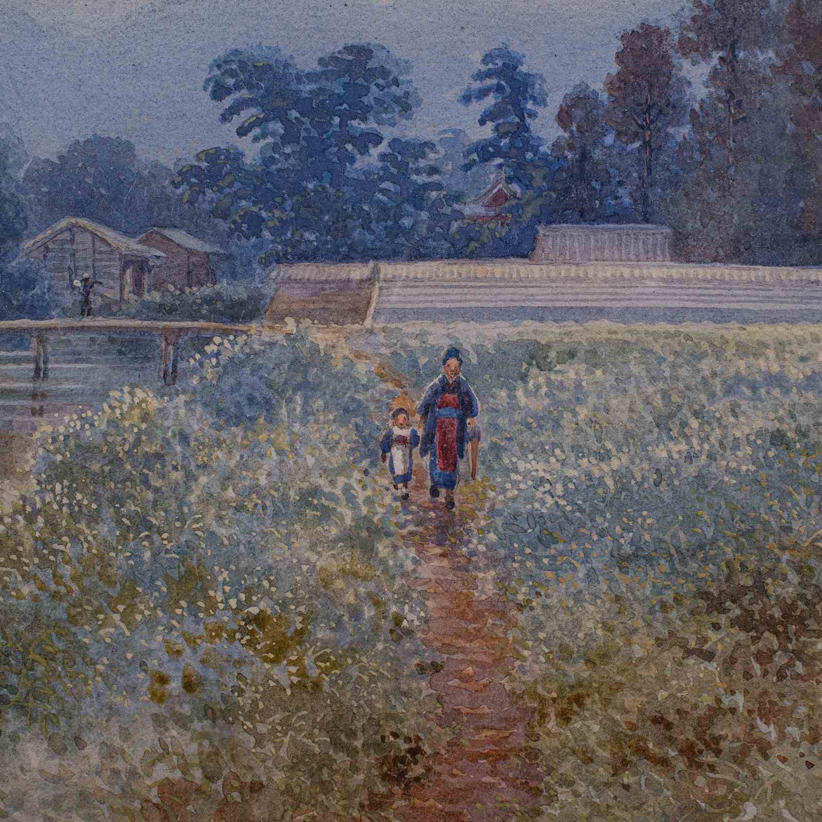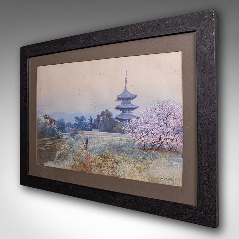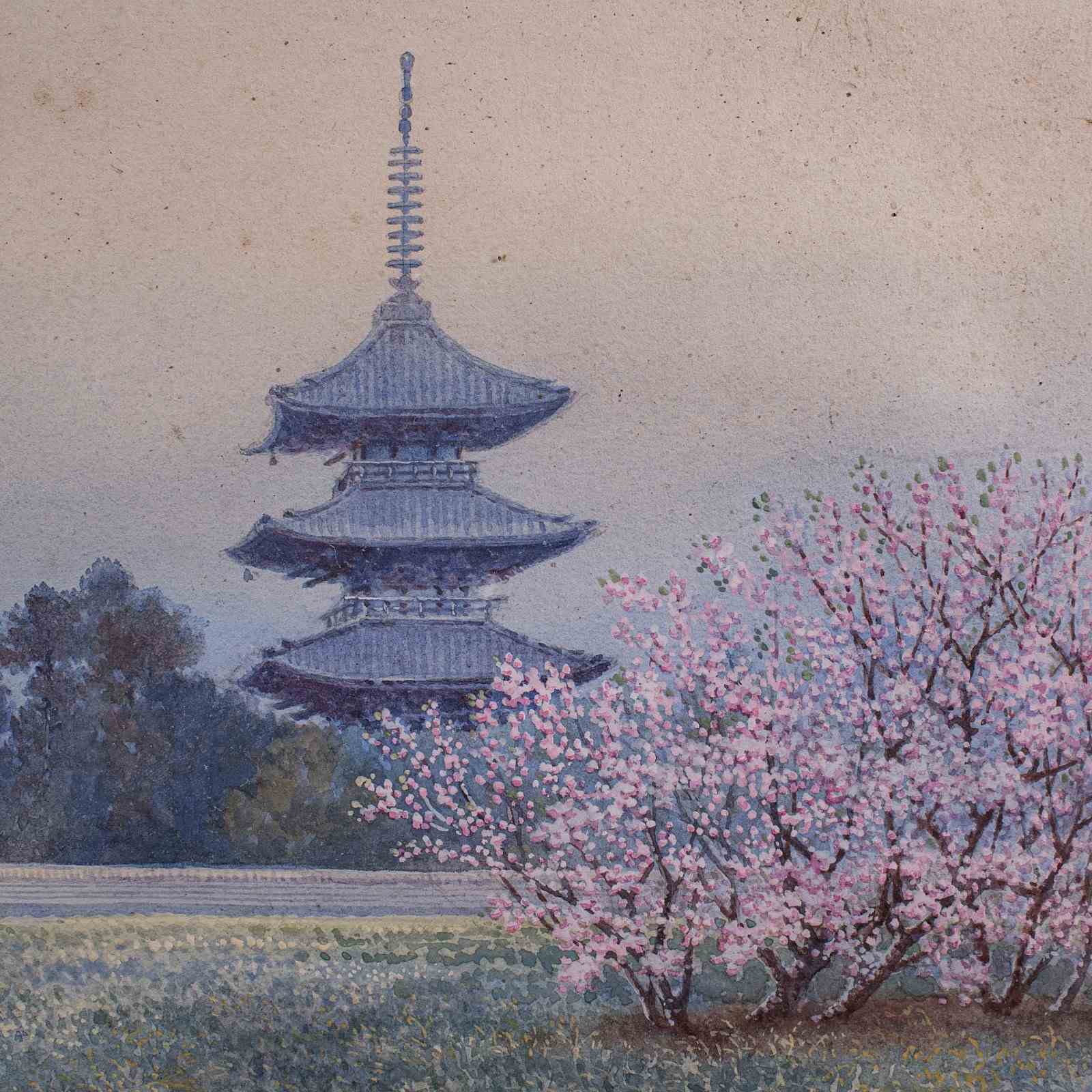 Vintage Landscape Painting, Japanese School, Watercolour, Art, Mid Century, 1960