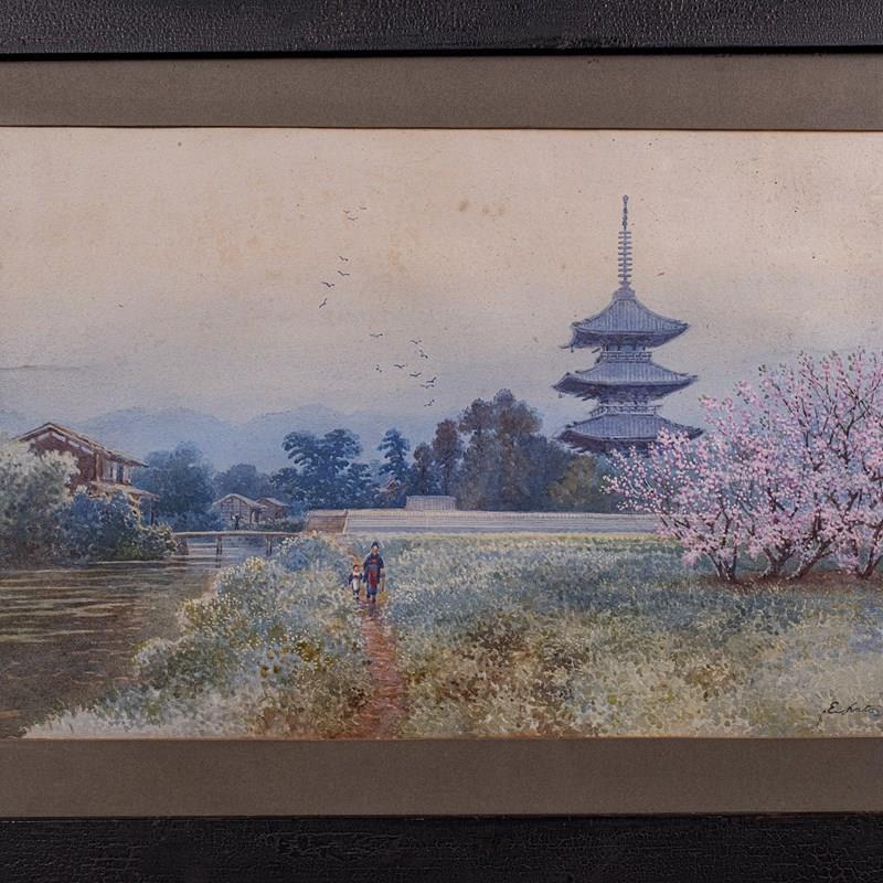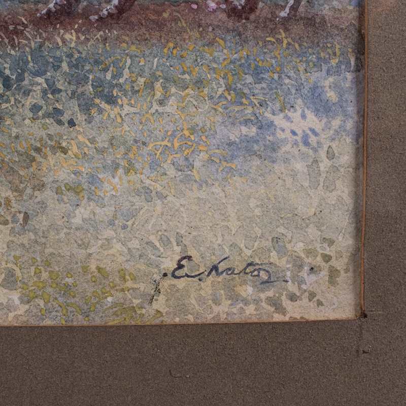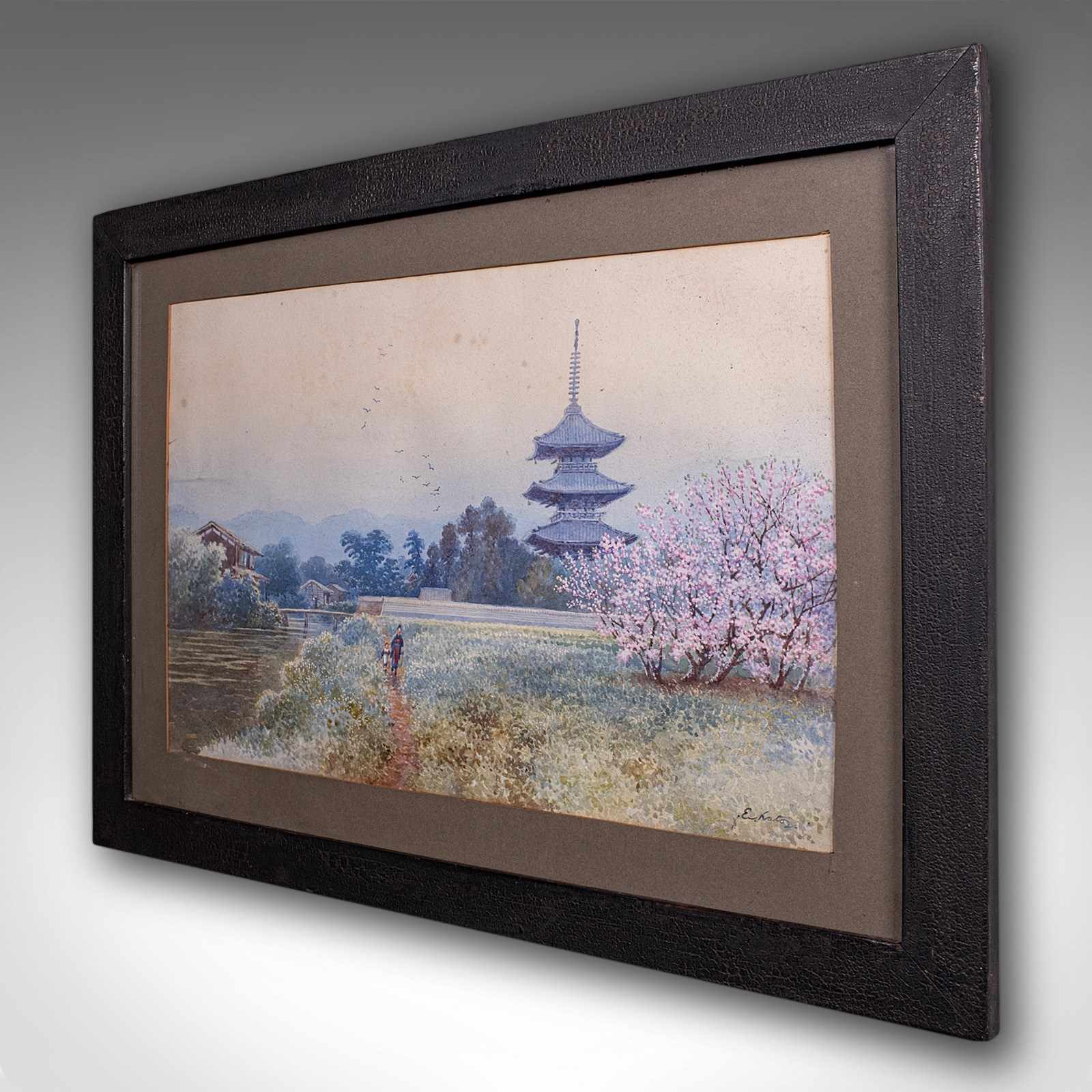 This is a vintage landscape painting. A Japanese School watercolour, signed by the artist Eizo Kato, dating to the mid 20th century, circa 1960.