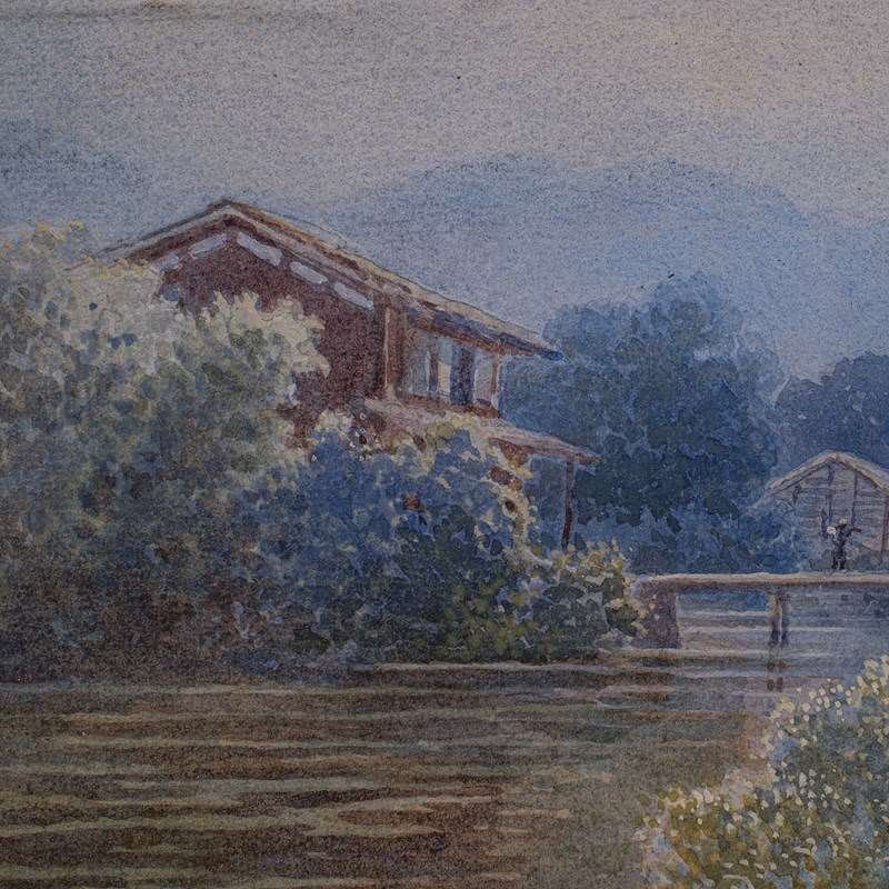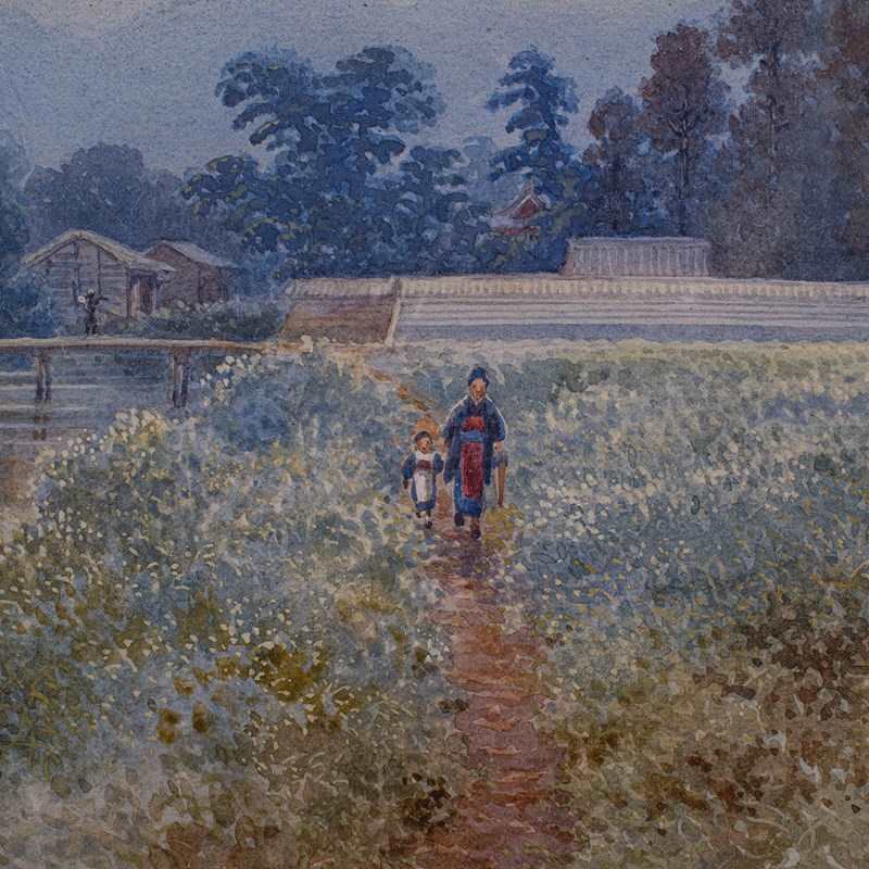 Endearing Japanese school watercolour with wonderful colour and brush work