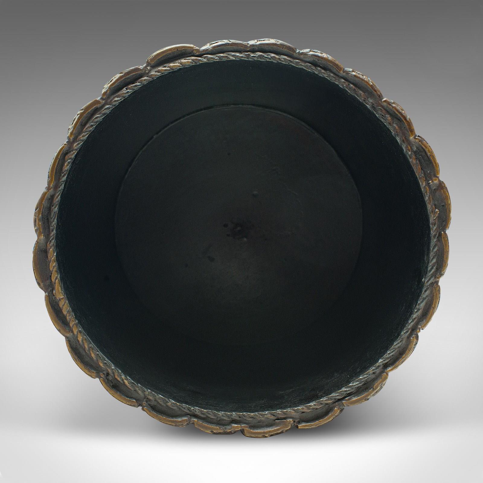 This is a vintage library waste bin. An English, composite leather effect book basket, dating to the late 20th century, circa 1980.