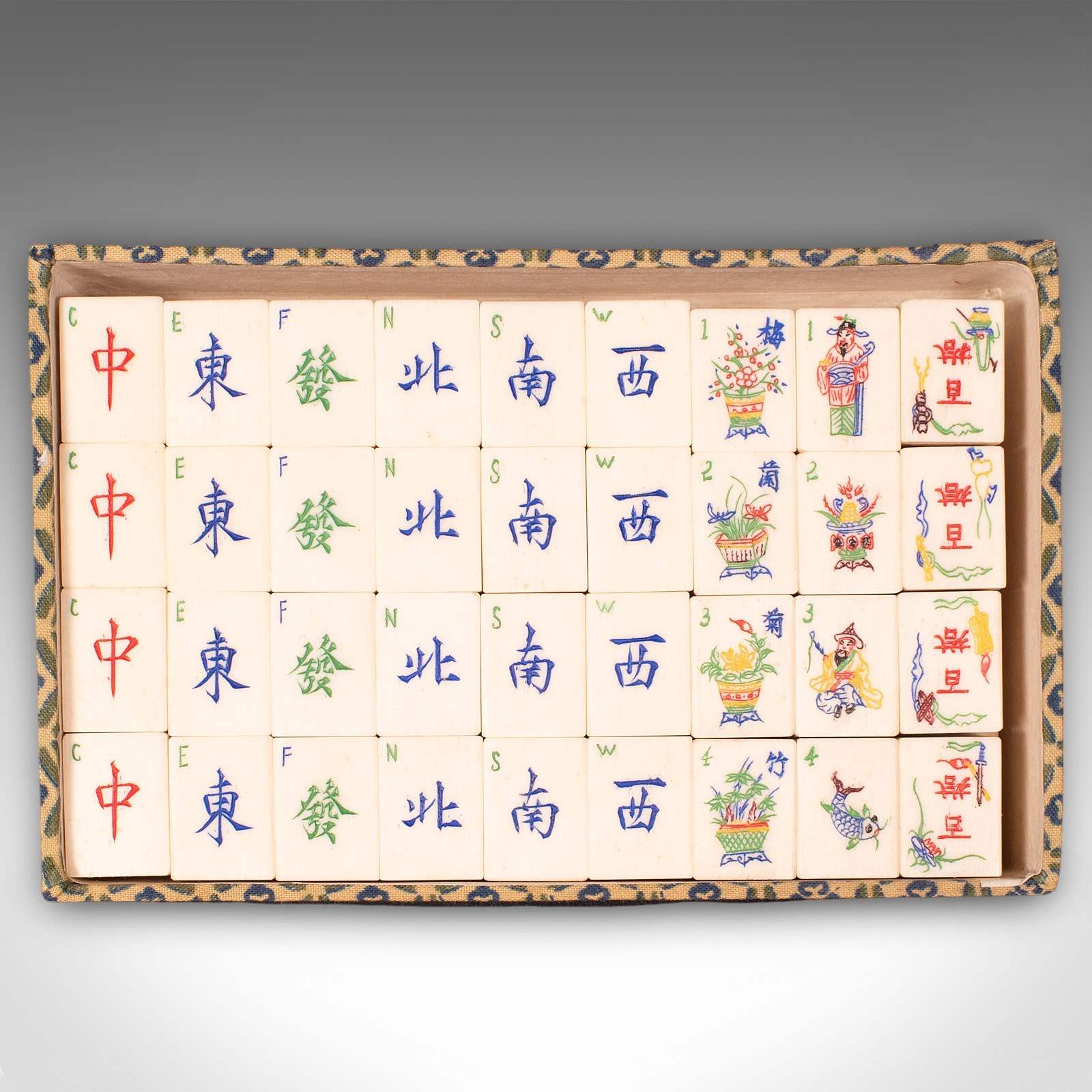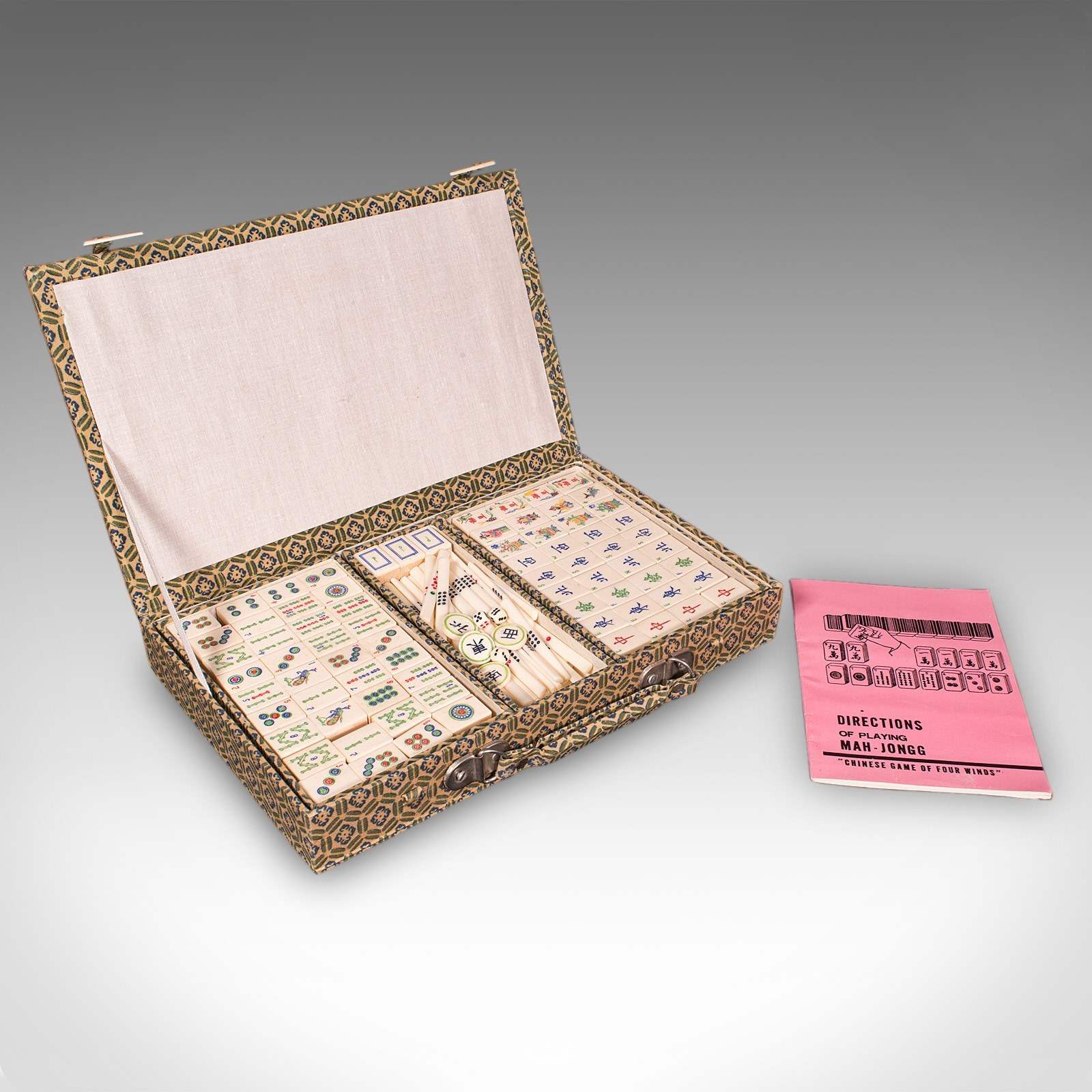 Vintage Mah Jong Game Case, Oriental, Gaming Box, Bamboo Pieces, Mid Century