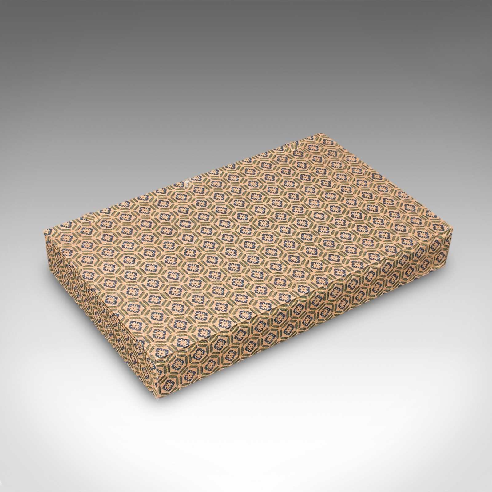 This is a vintage Mah Jong case. A Chinese, upholstered gaming box with bamboo pieces, dating to the mid 20th century, circa 1960.