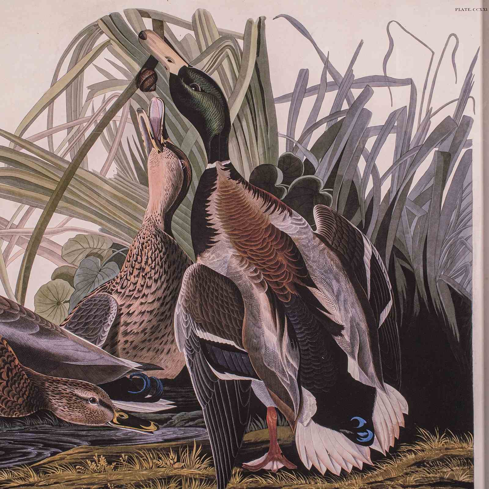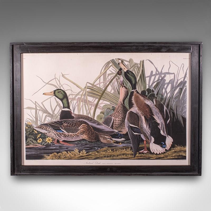 This is a large vintage Mallard picture. An English, framed print engraving of wildlife interest originally by J.J. Audubon (1785 - 1851), dating to the mid 20th century, circa 1960.