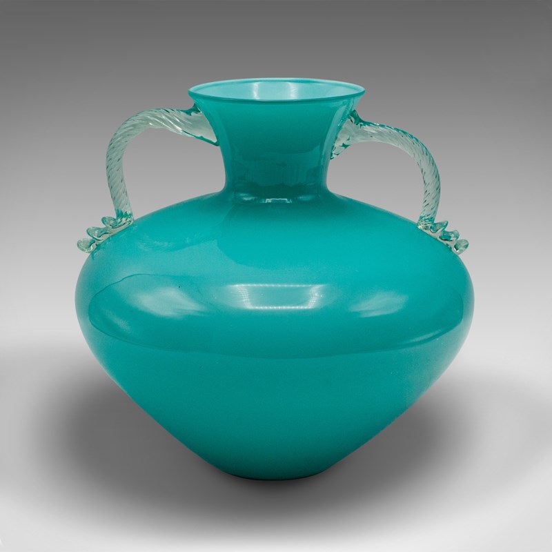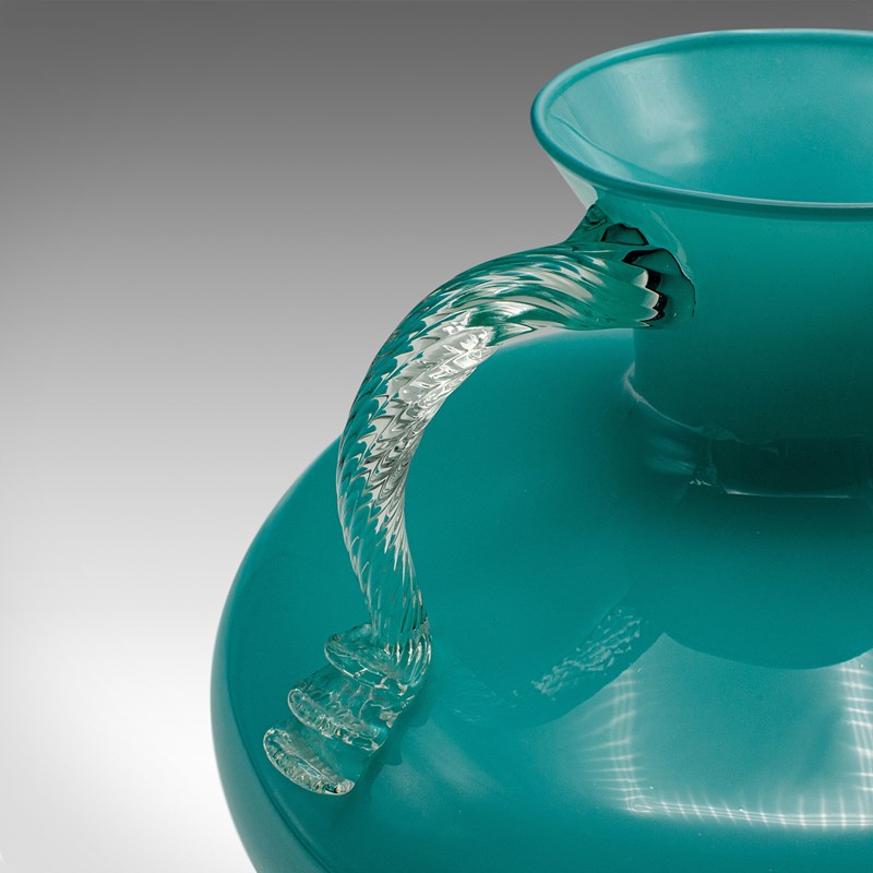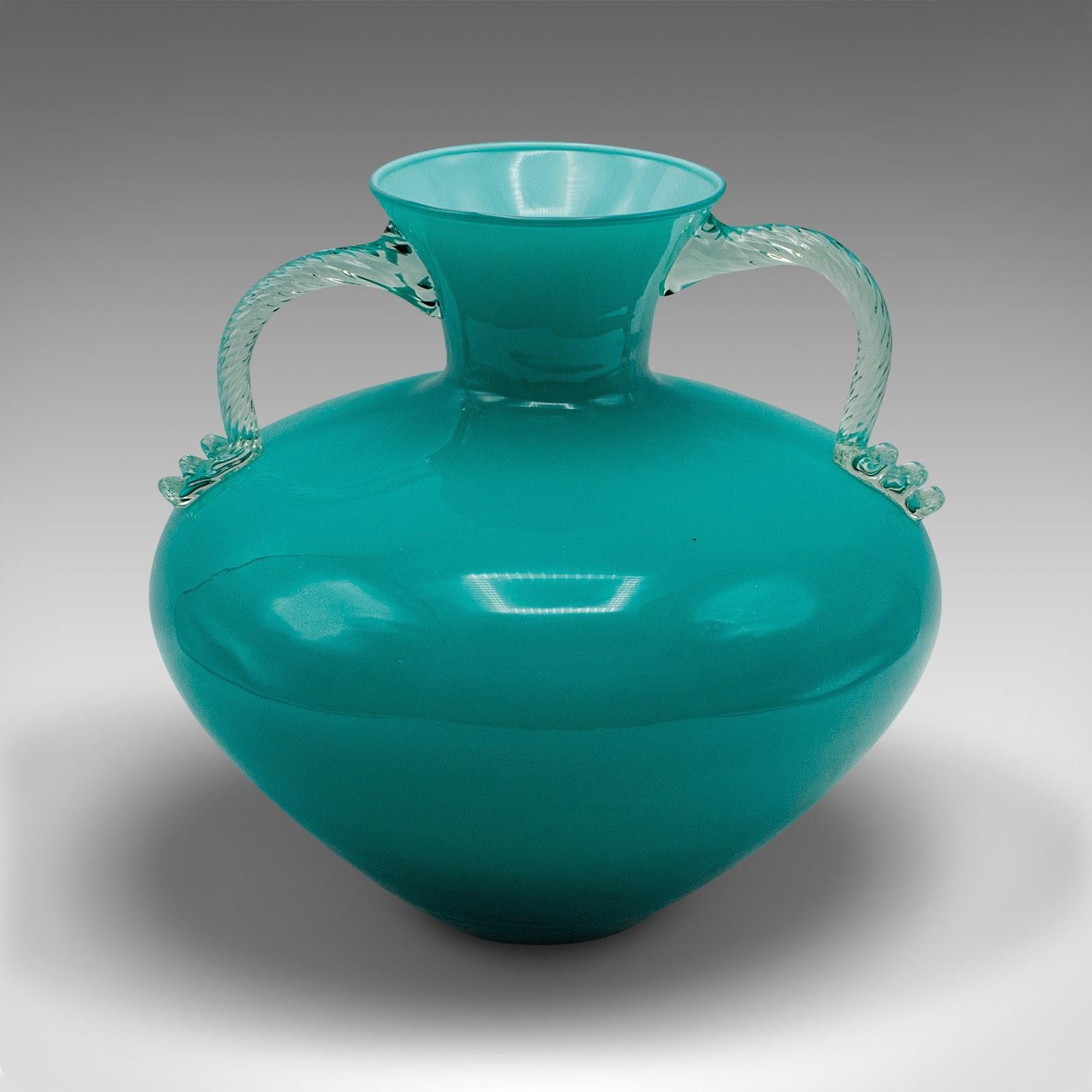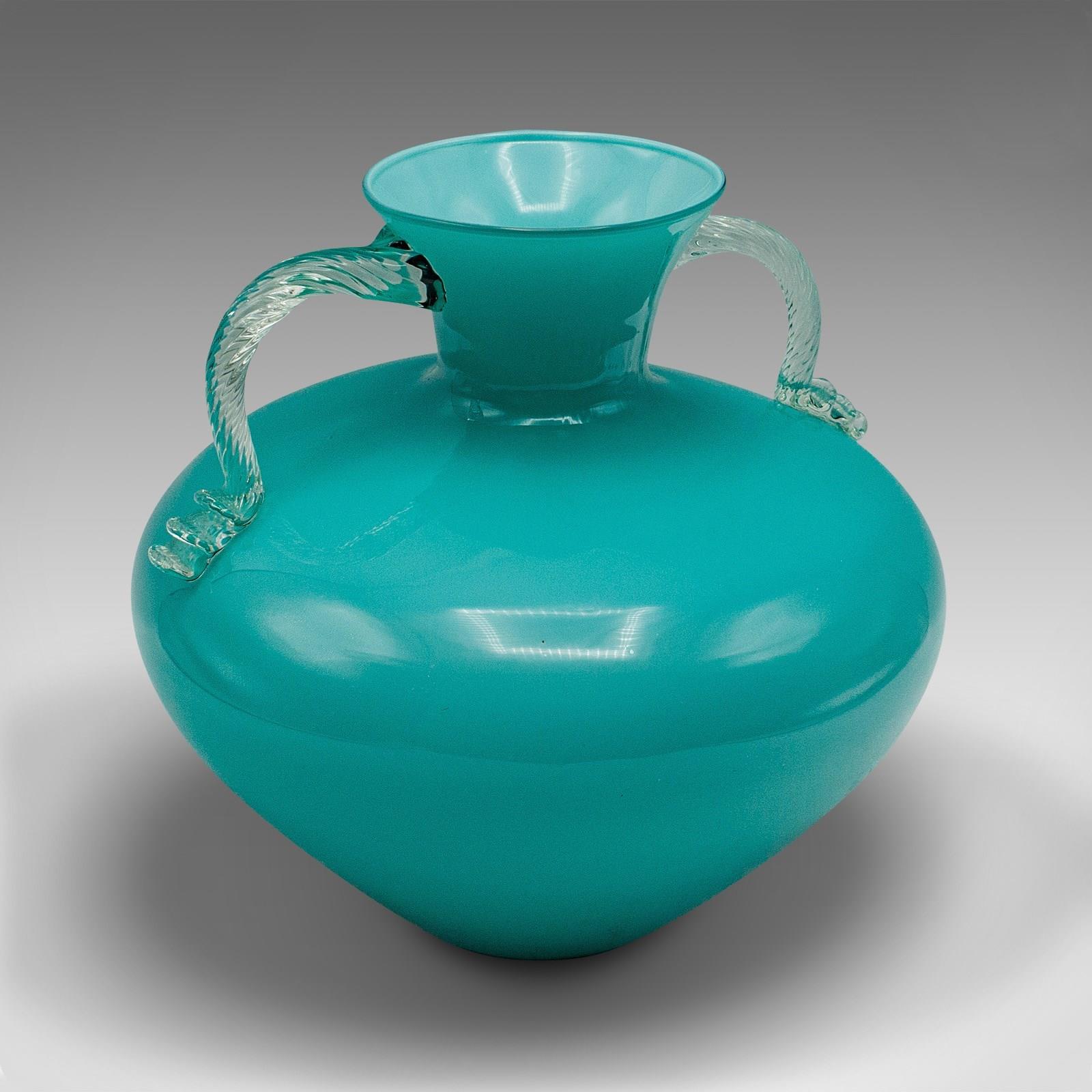 This is a vintage Murano twin handled vase. An Italian, art glass decorative baluster, dating to the mid 20th century, circa 1960.