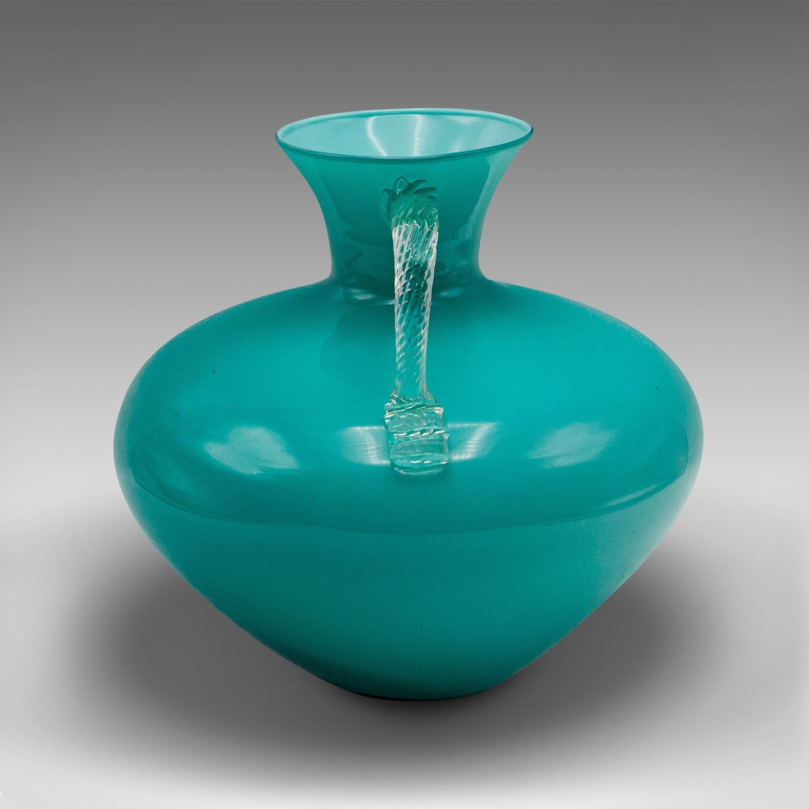 Vintage Murano Twin Handled Vase, Italian, Art Glass, Decorative, Mid Century