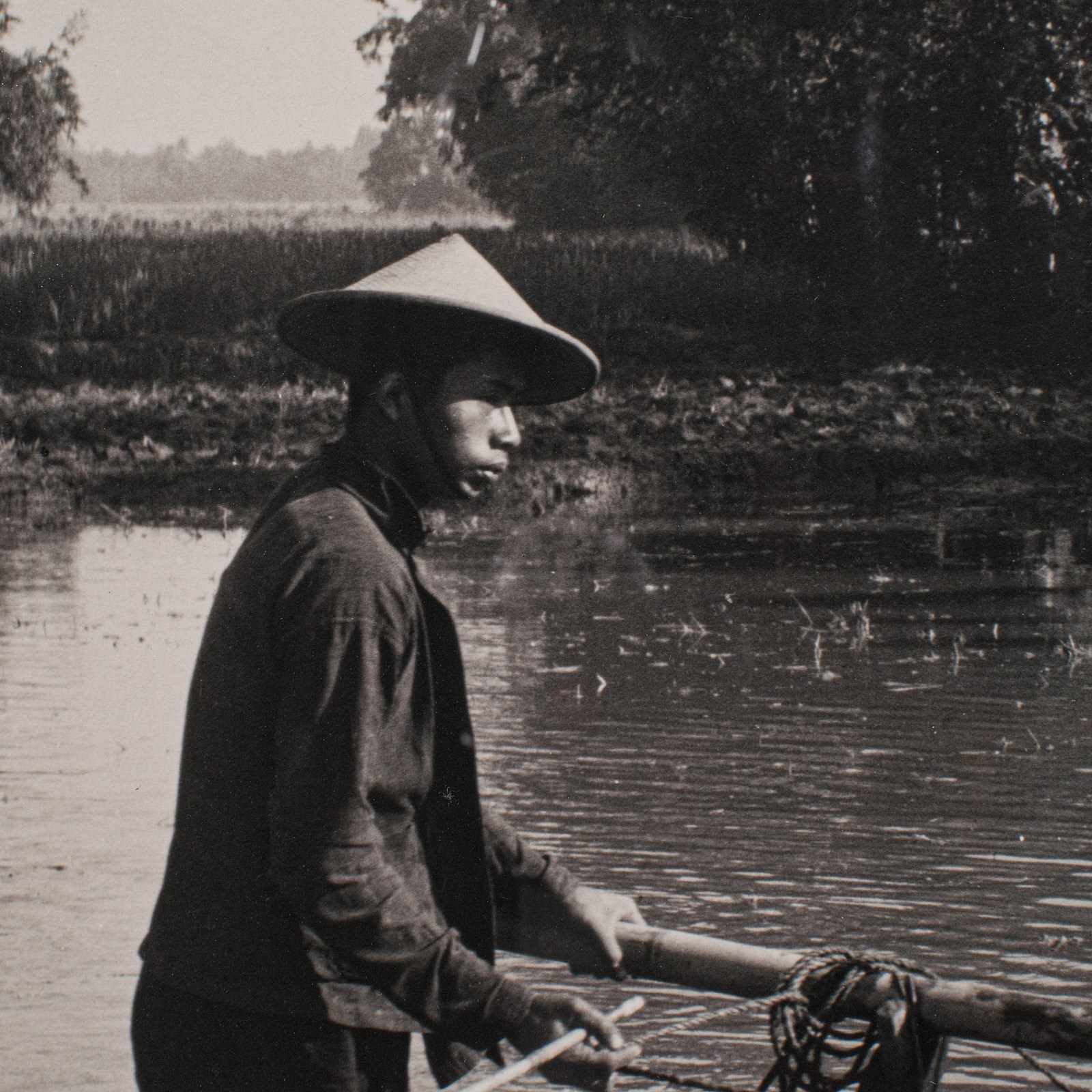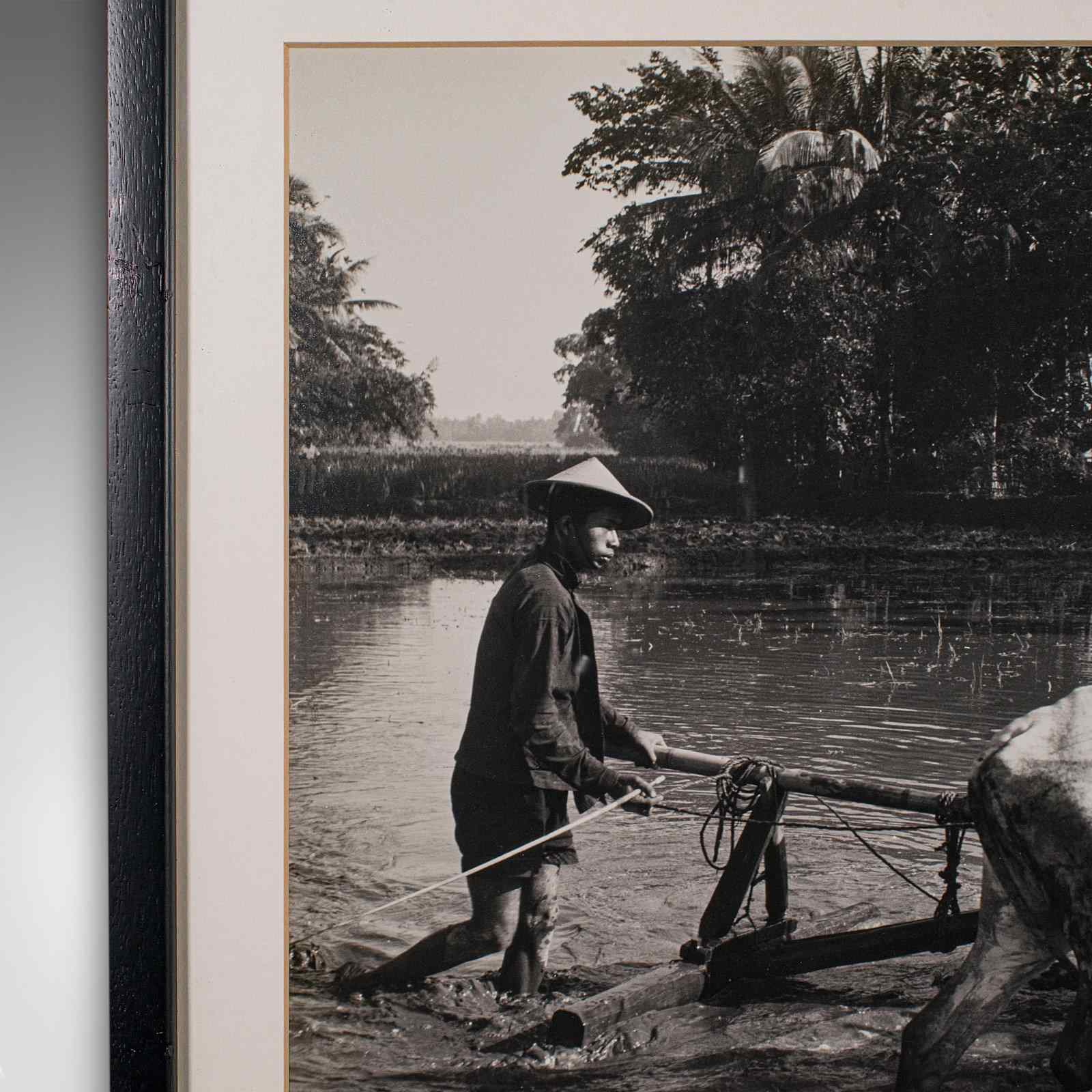 This is a vintage monochrome photograph of rural Indonesia. An Oriental, framed large format black & white print, dating to the mid 20th century, circa 1950.