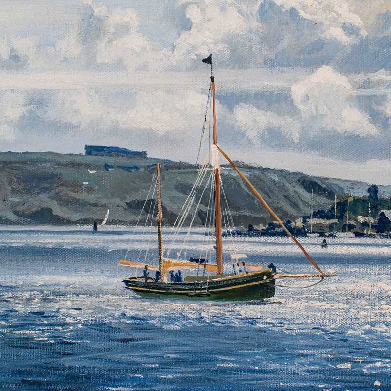 A charming and atmospheric maritime painting, ideal for the drawing room, study or coastal interior, capturing the enduring appeal of Plymouth Sound. Delivered ready to display.