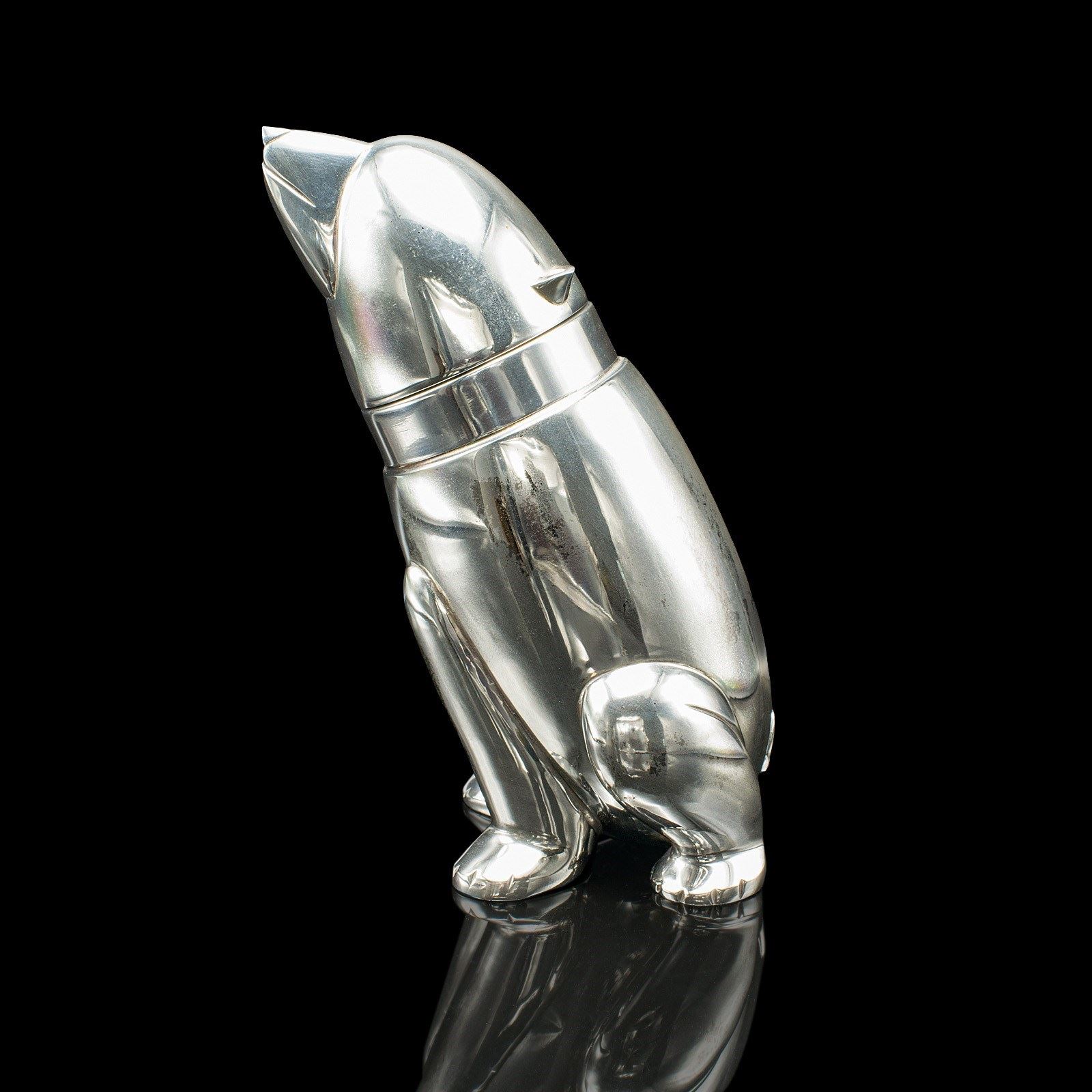 Vintage Polar Bear Cocktail Shaker, American, Silver Plate, Bar Mixer, Art Deco