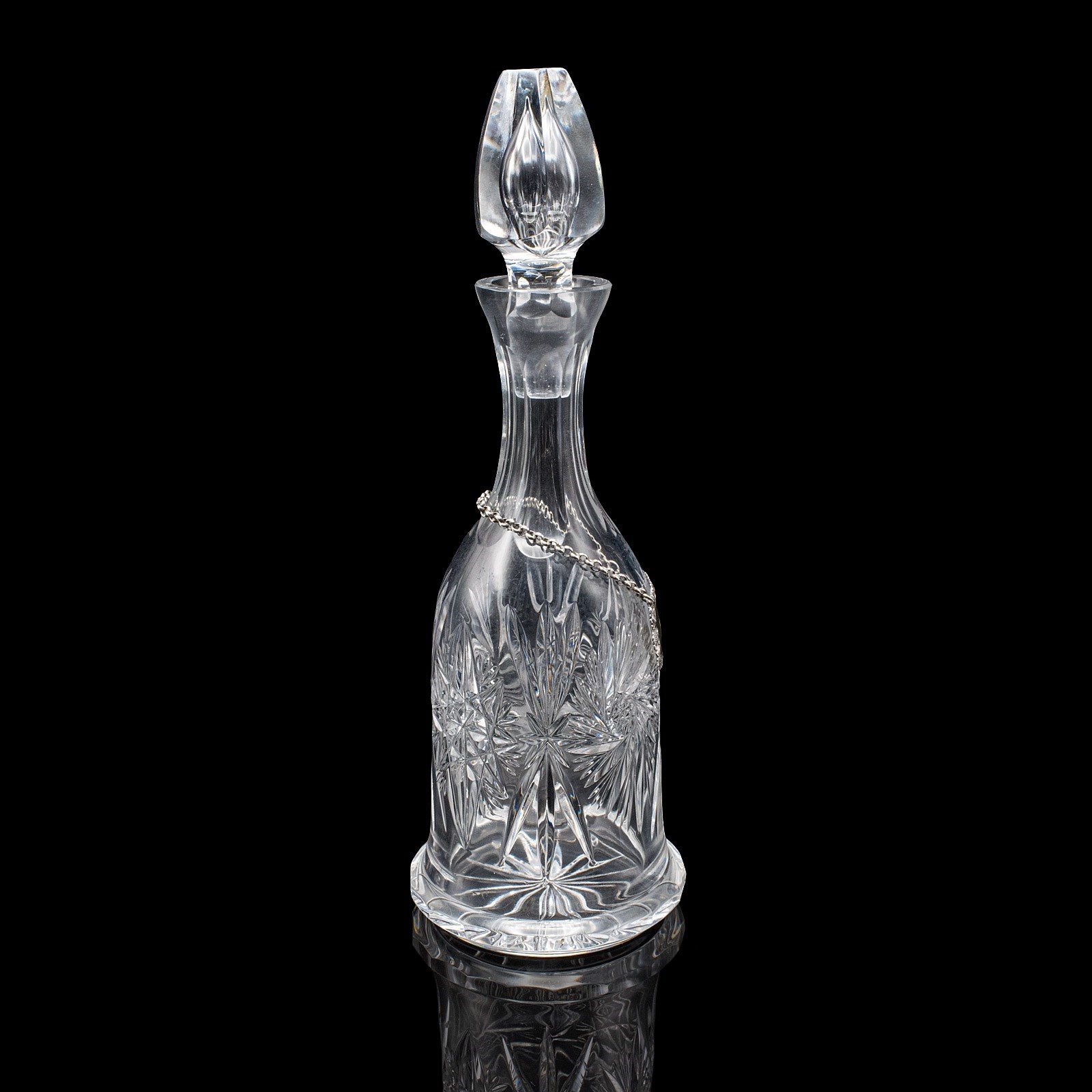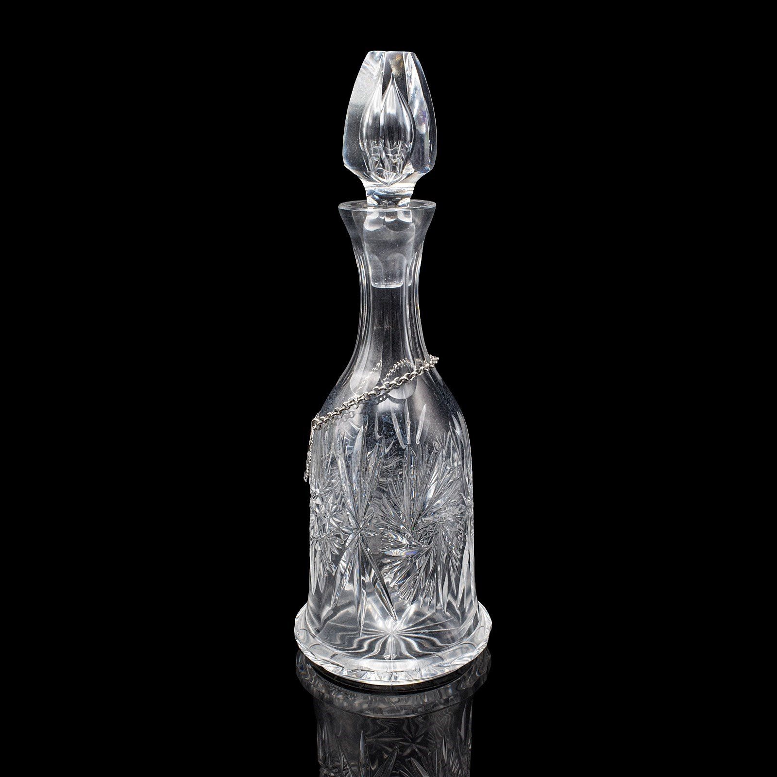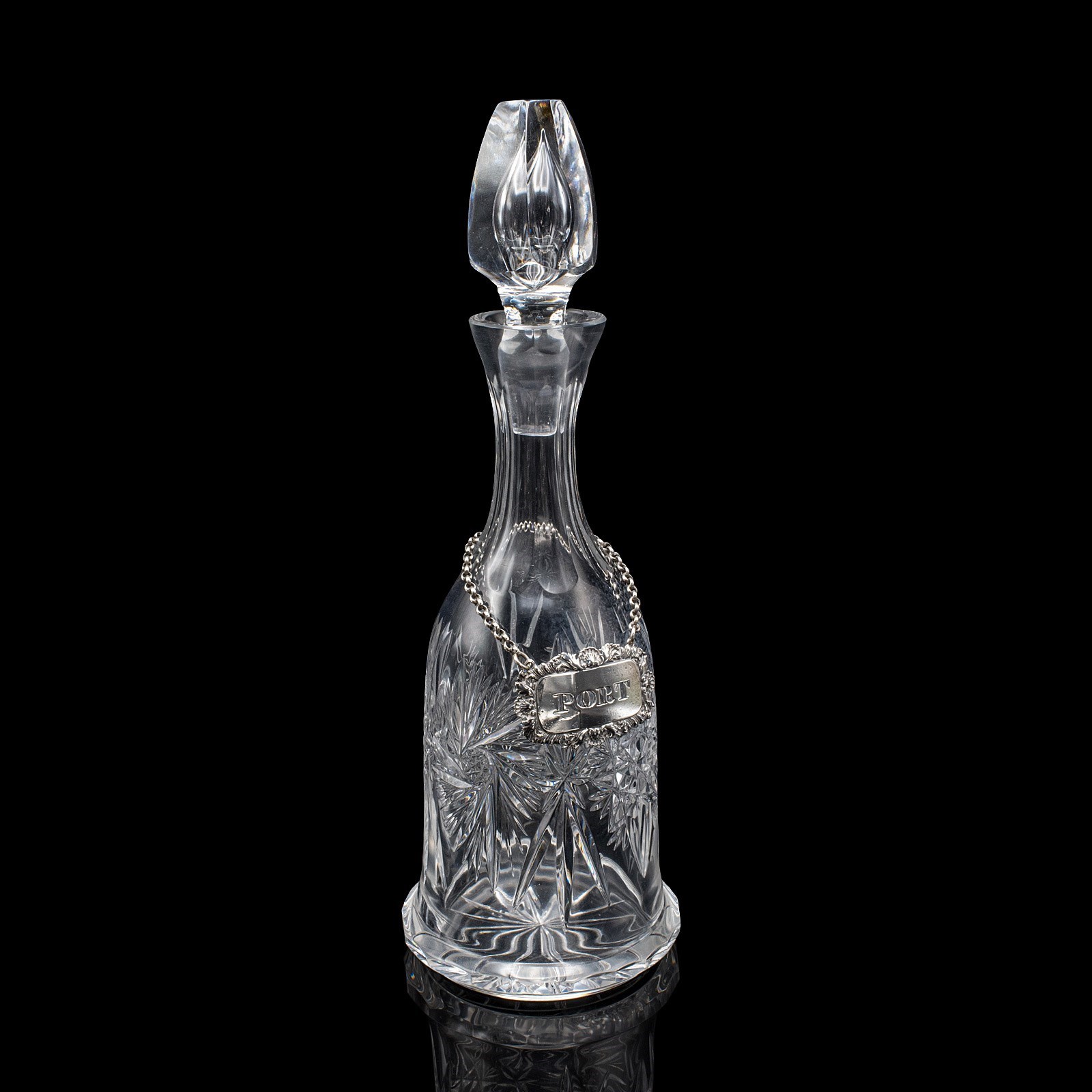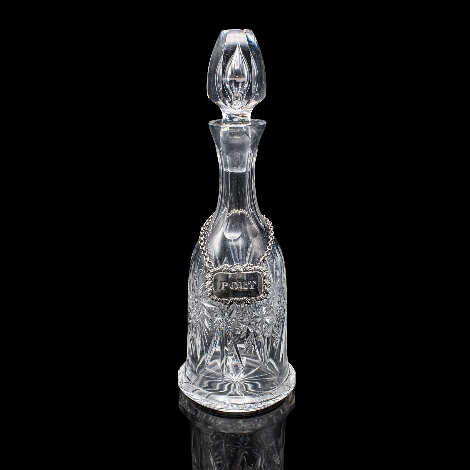 Vintage Port Decanter, English, Glass, Silver Label, Spirit Bottle, Mid Century