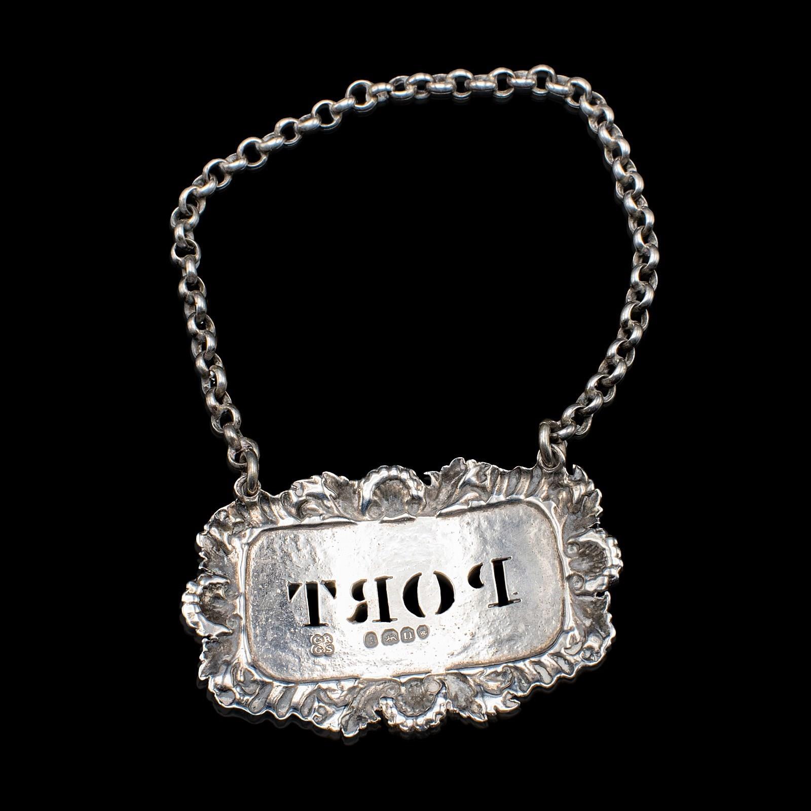 Dressed with a hallmarked silver ‘Port’ label, suspended at the neck
