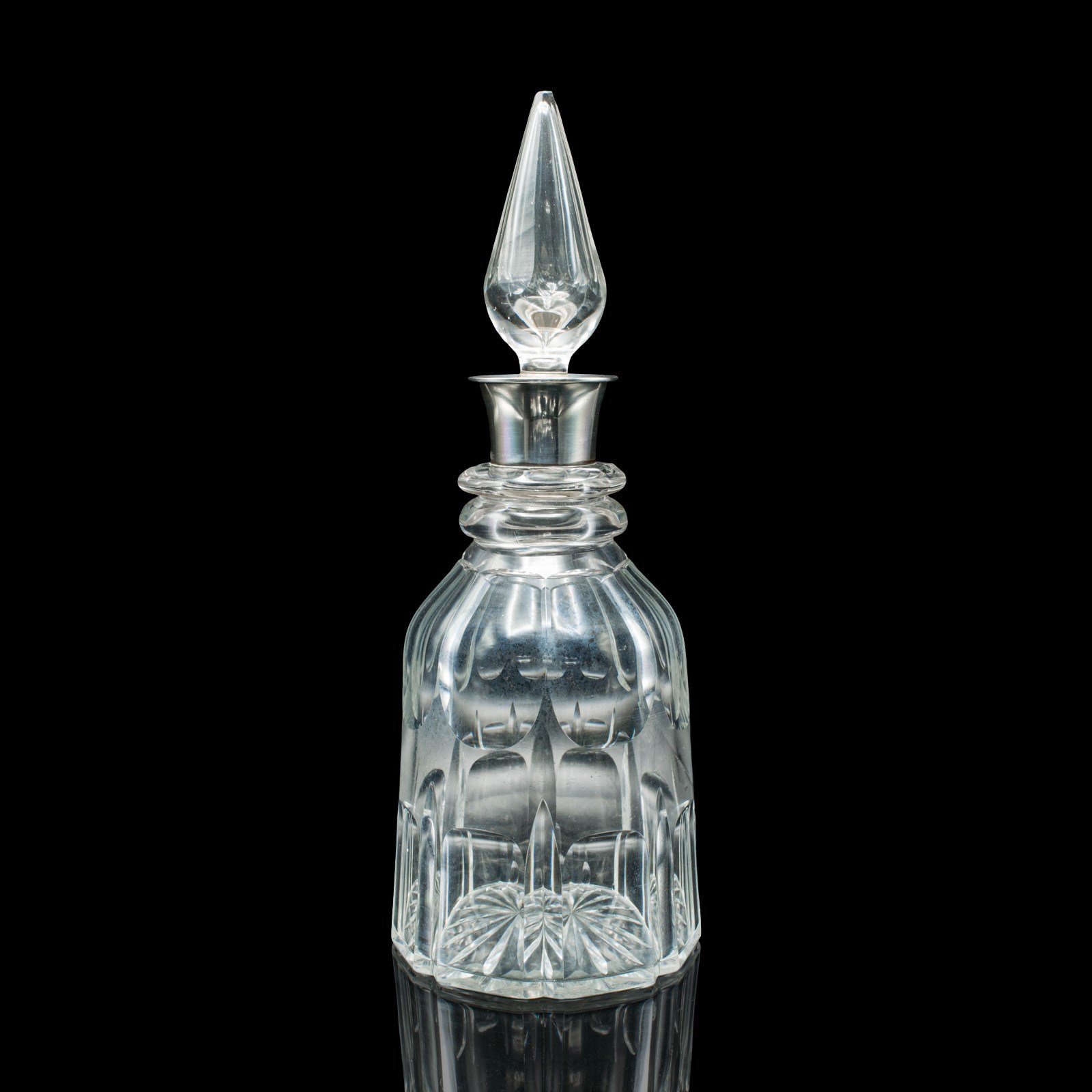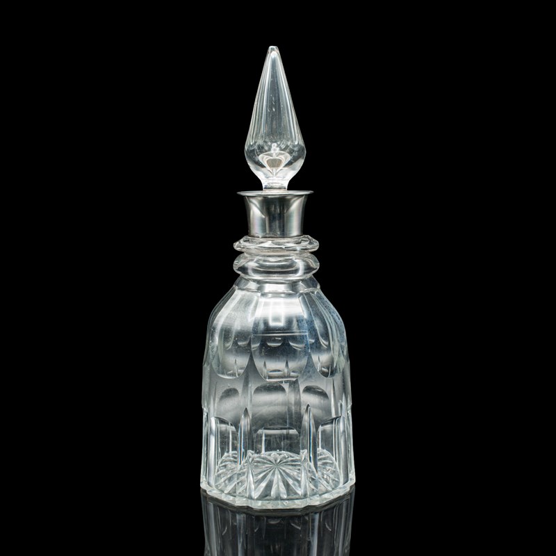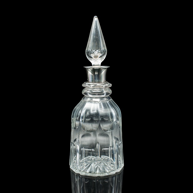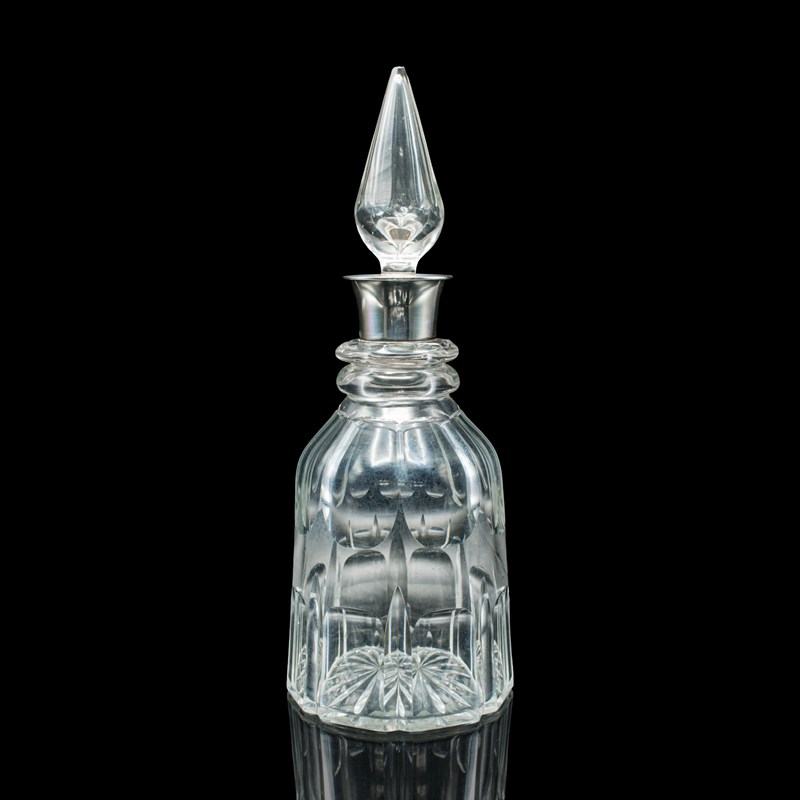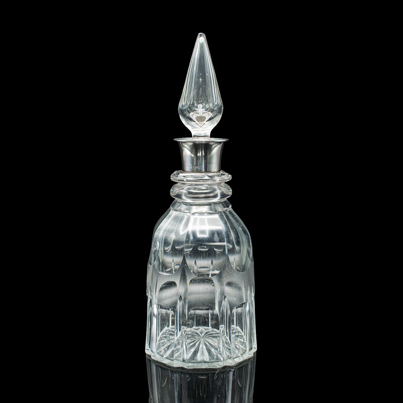 This is a delightful 1920s silver-collared spirit decanter, presenting wonderful clarity and classic period charm. Perfect for the collector or for enhancing a refined drinks cabinet. Delivered ready for the home.