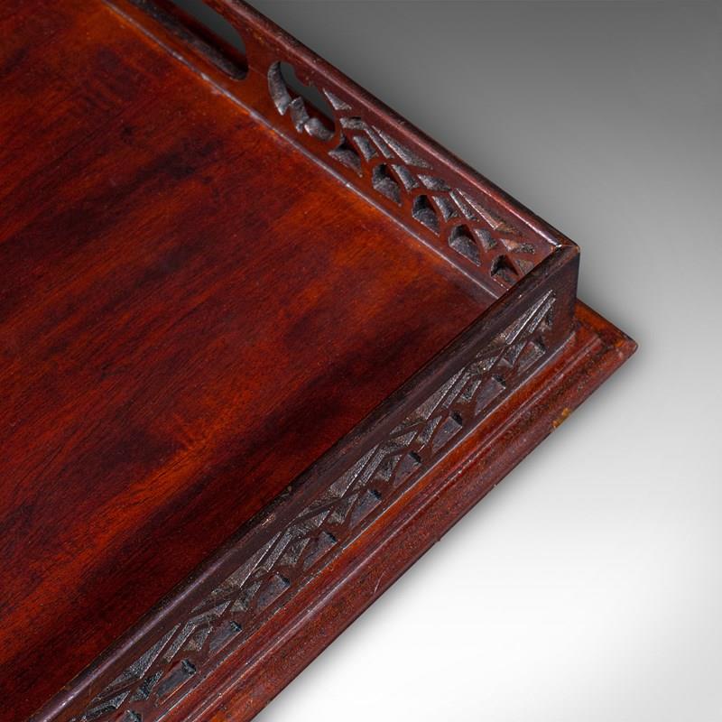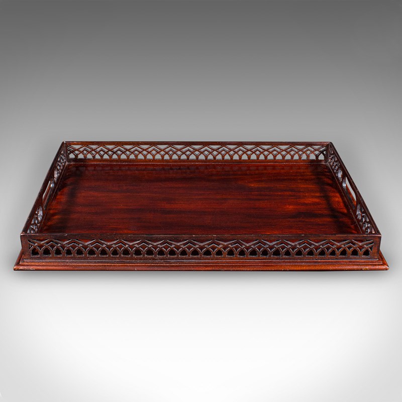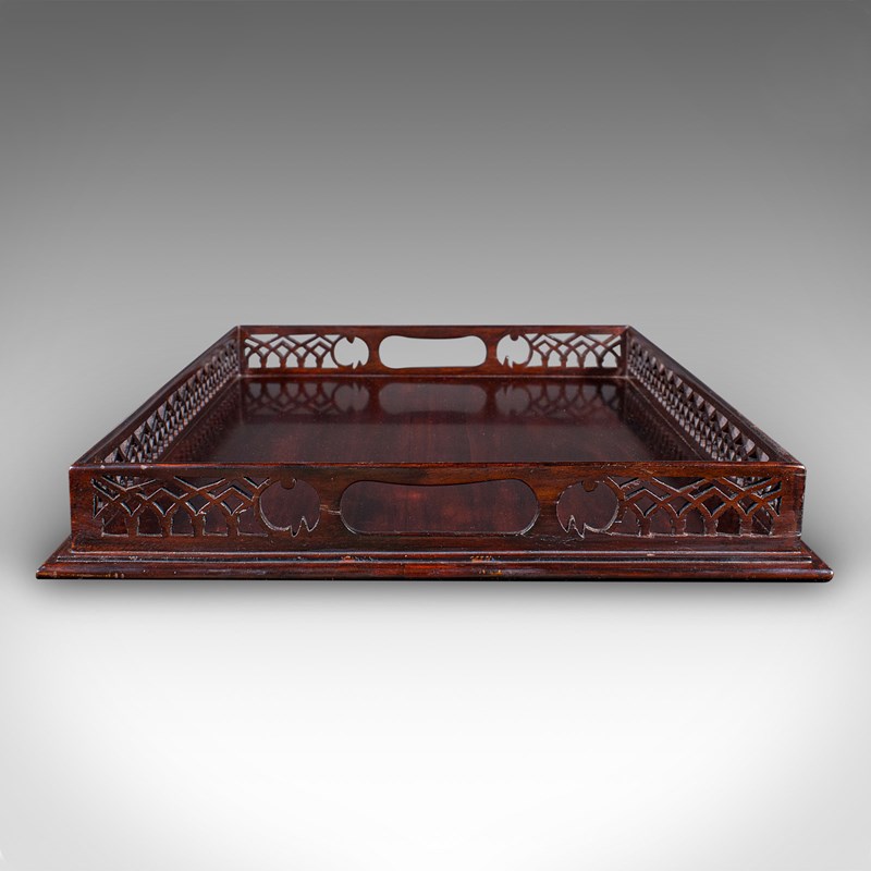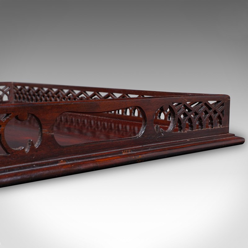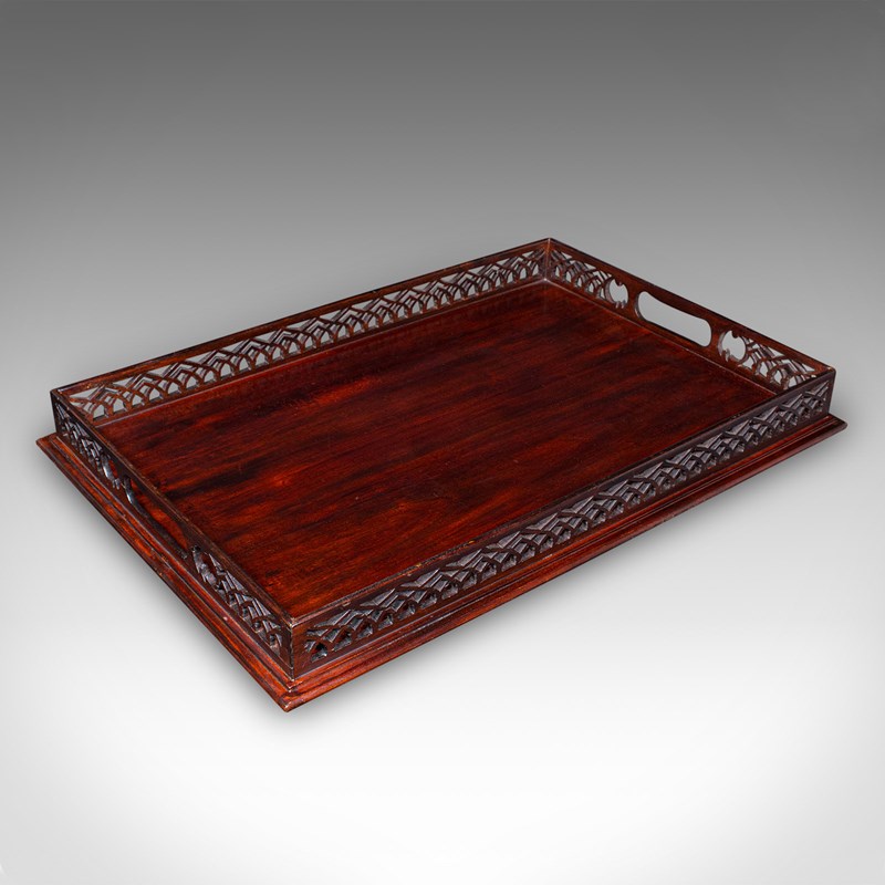 Shaped tray sides with pierced fretwork gallery, adding a refined decorative touch