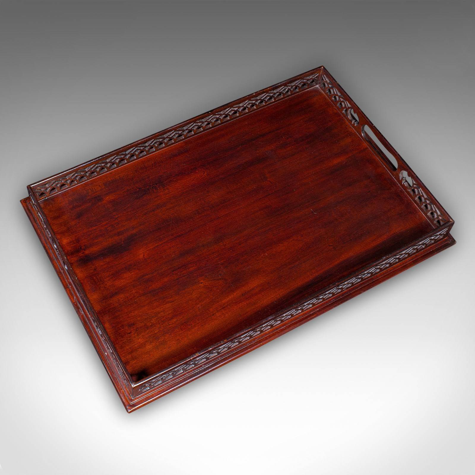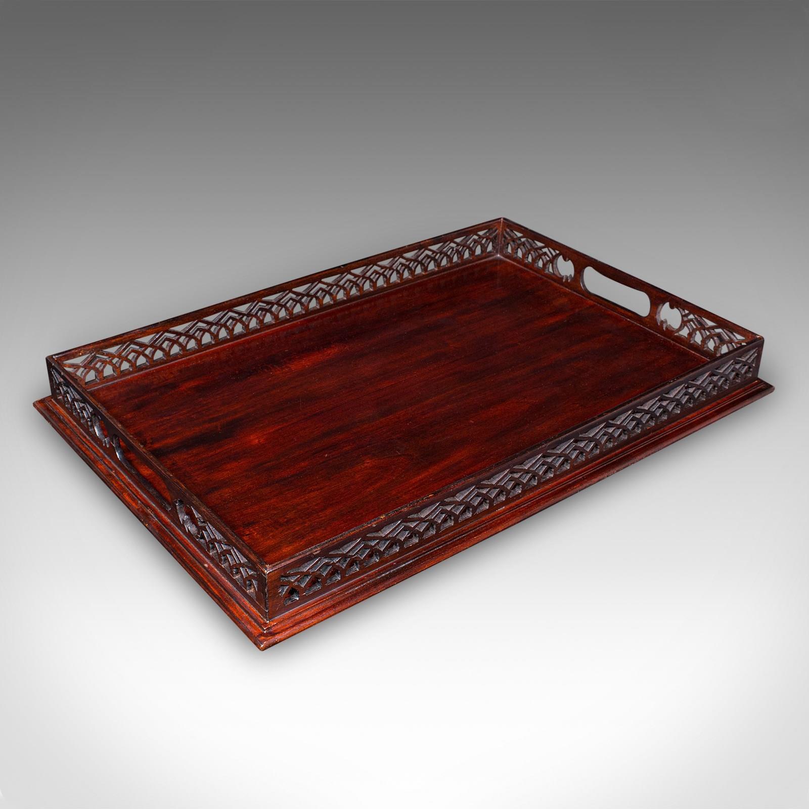 An inviting piece for the traditional or eclectic interior, this mahogany serving tray brings both function and decorative appeal to the dining room, drawing room or sideboard display. Delivered ready for the home.