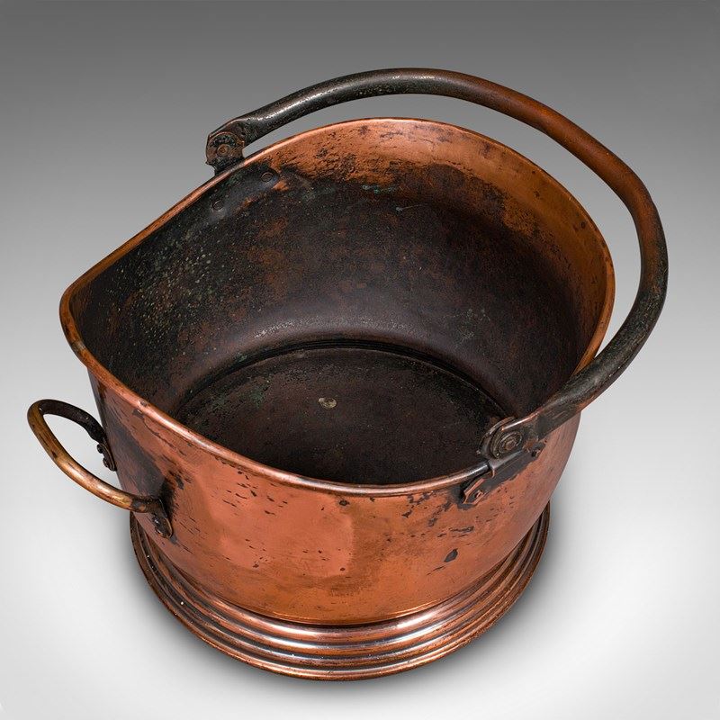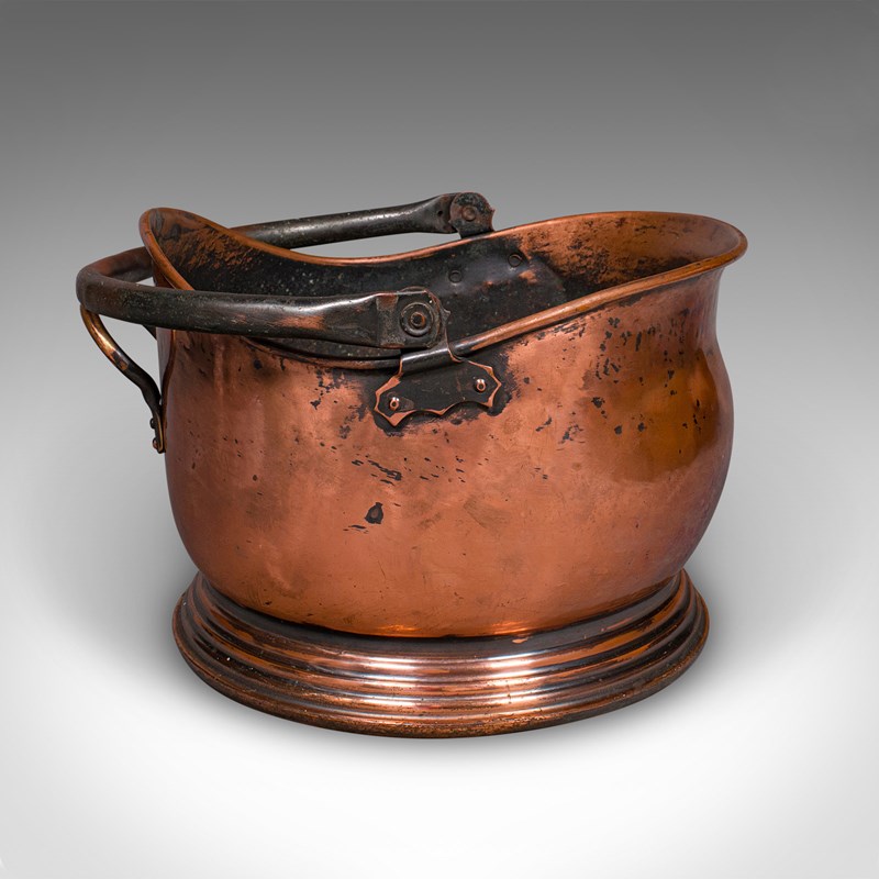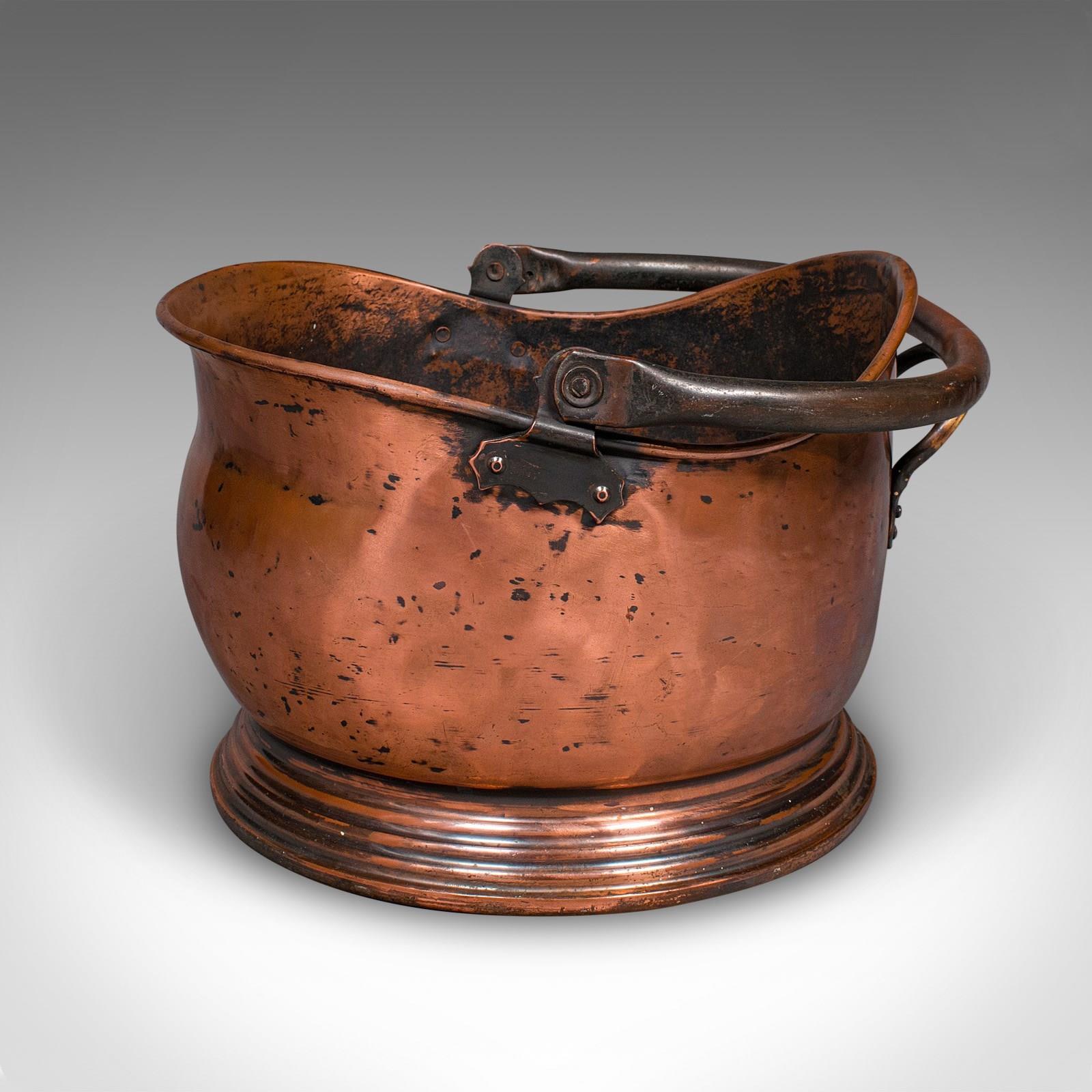 Vintage Regimental Mess Coal Bucket, English, Copper, Fireside Helmet Scuttle