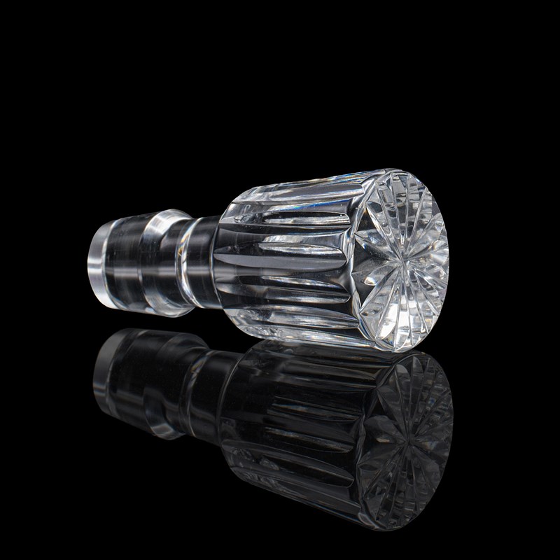 Tapering gadrooned stopper with starburst finish, sitting neatly within the stem
