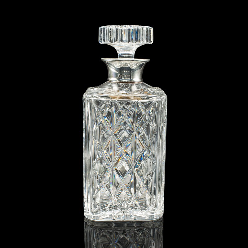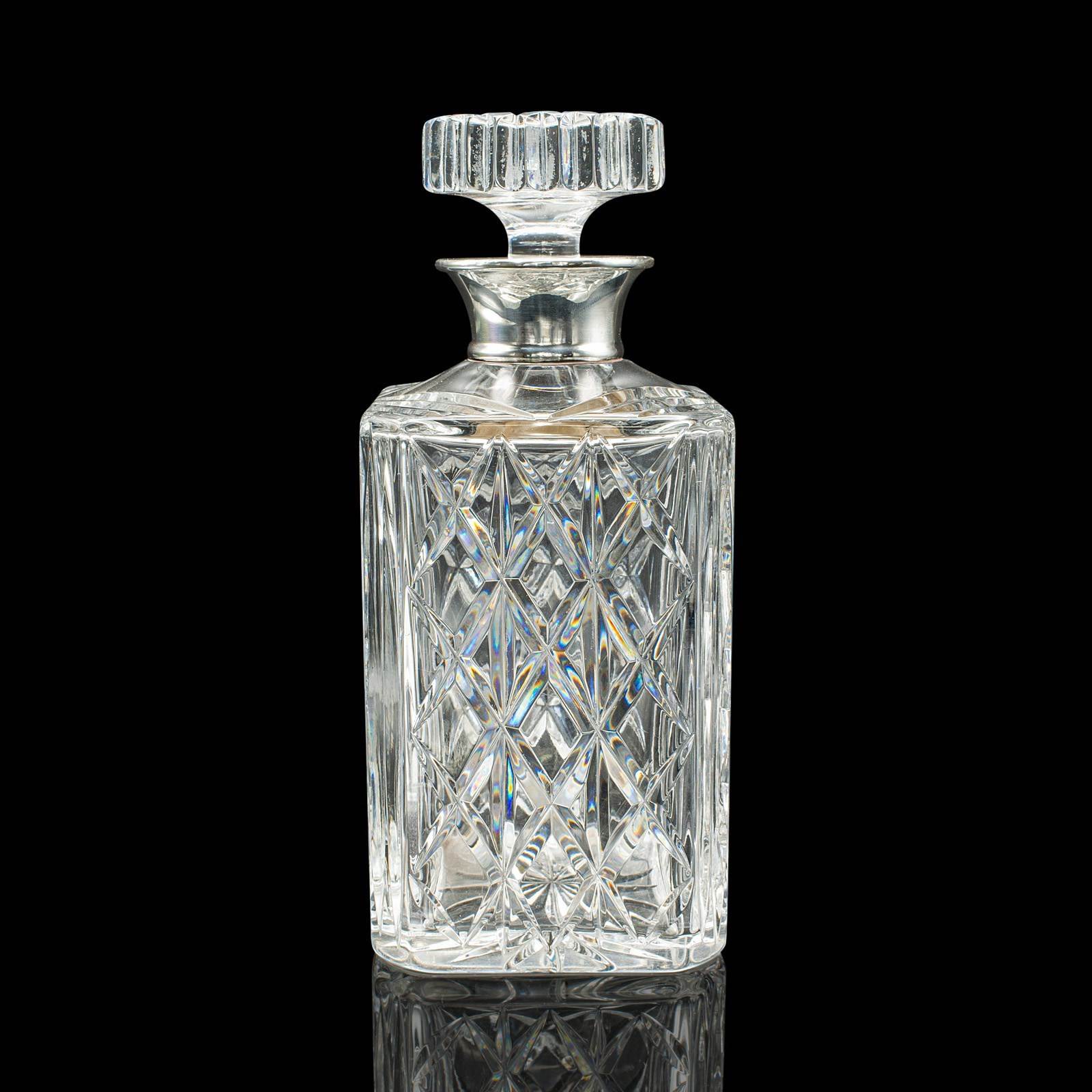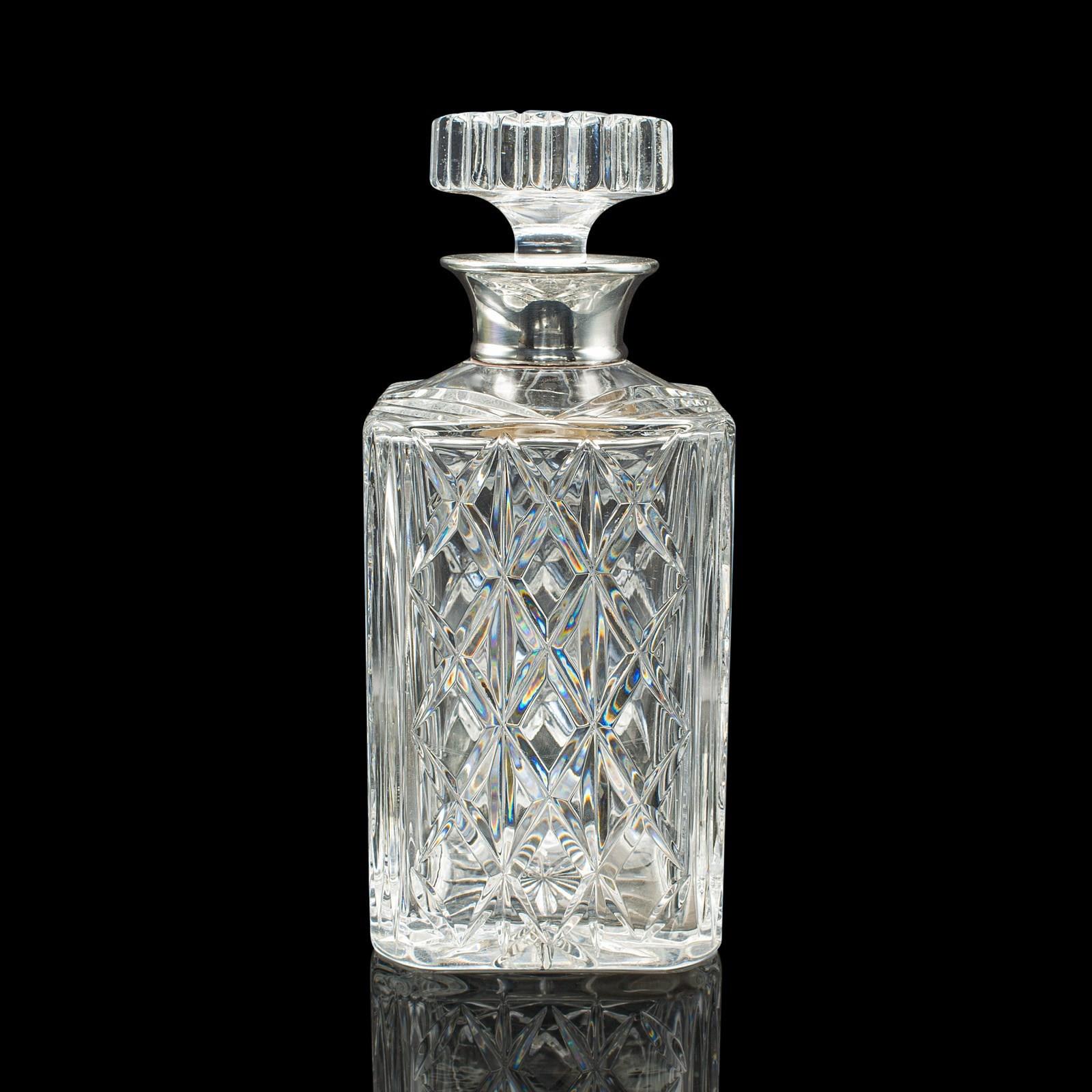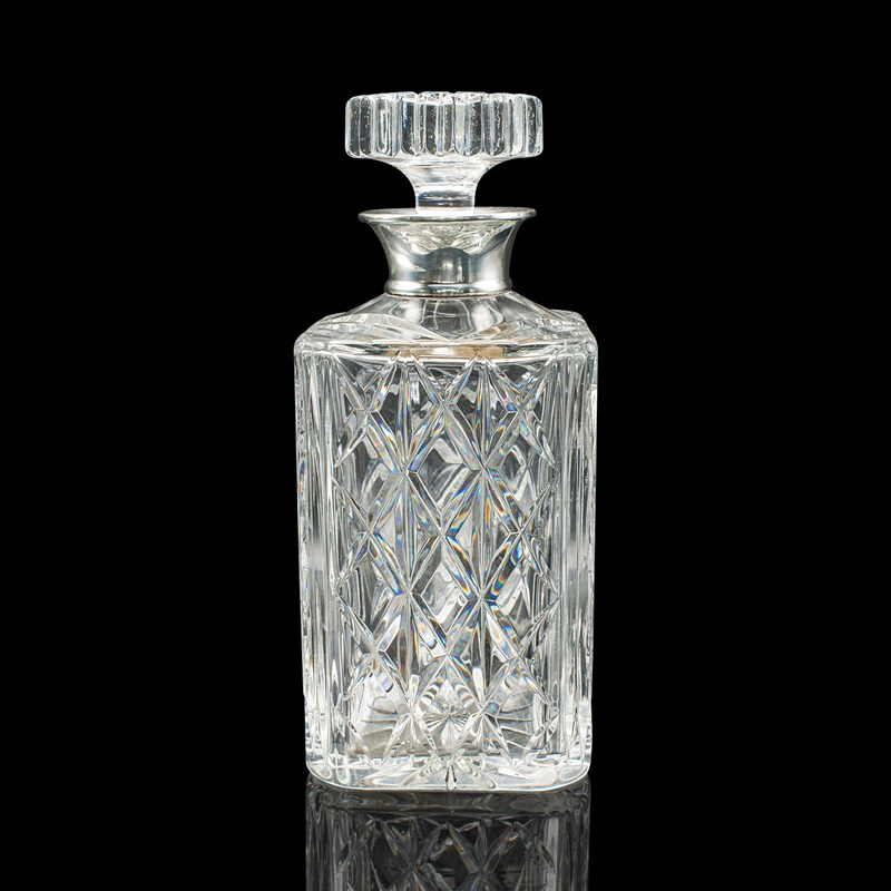 Vintage Silver Collared Spirit Decanter, English, Crystal, Whiskey, Hallmarked
