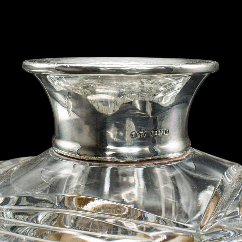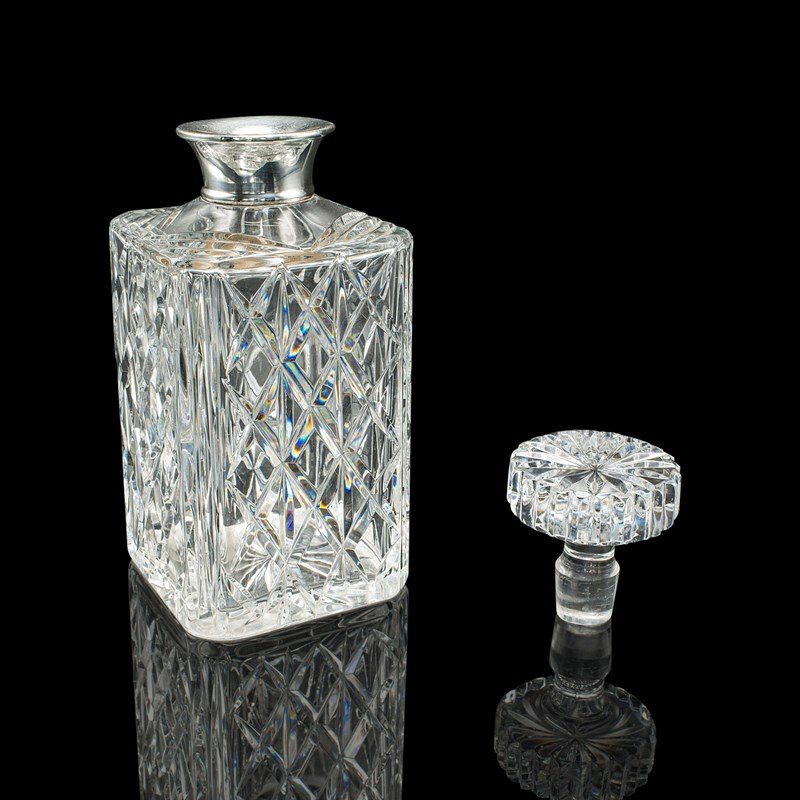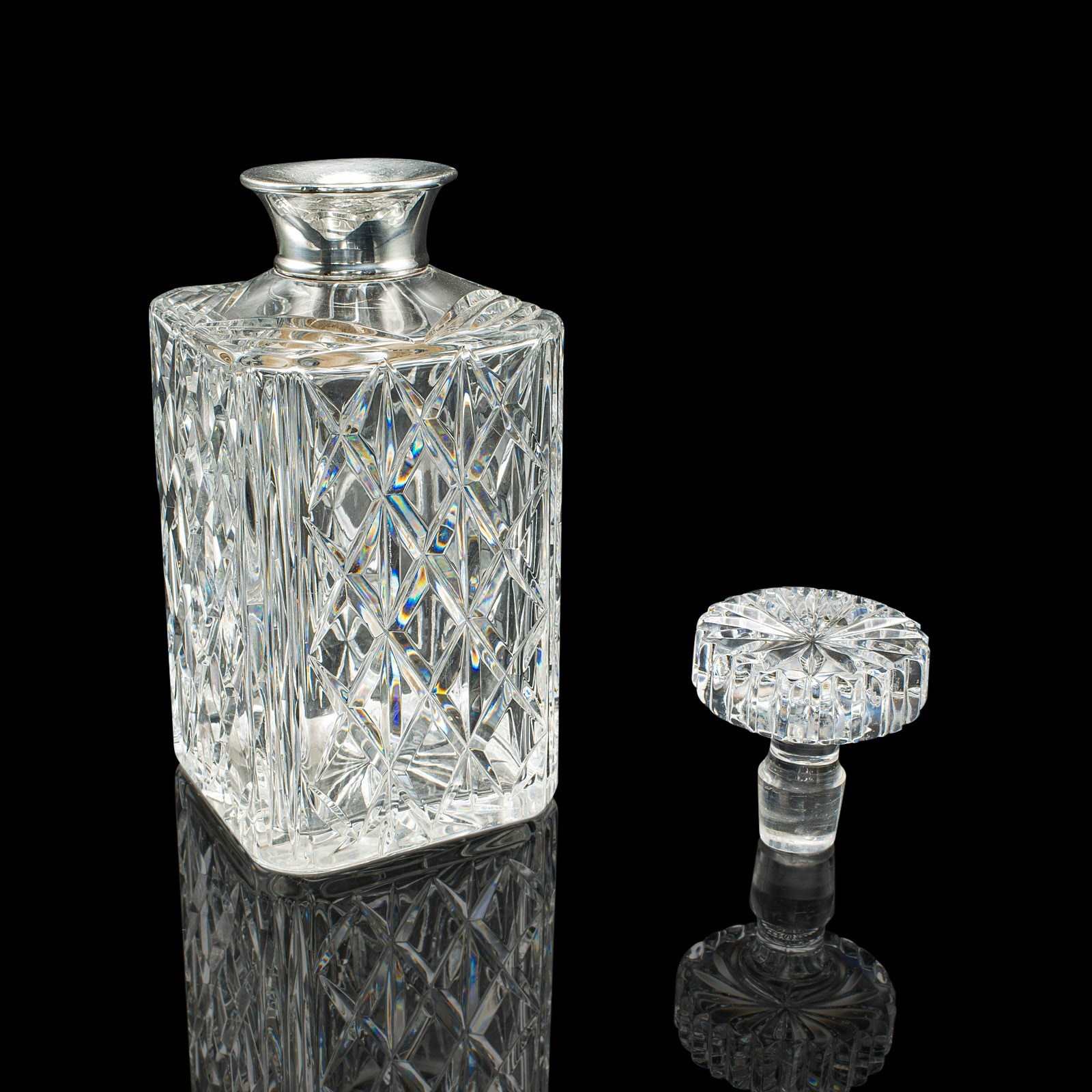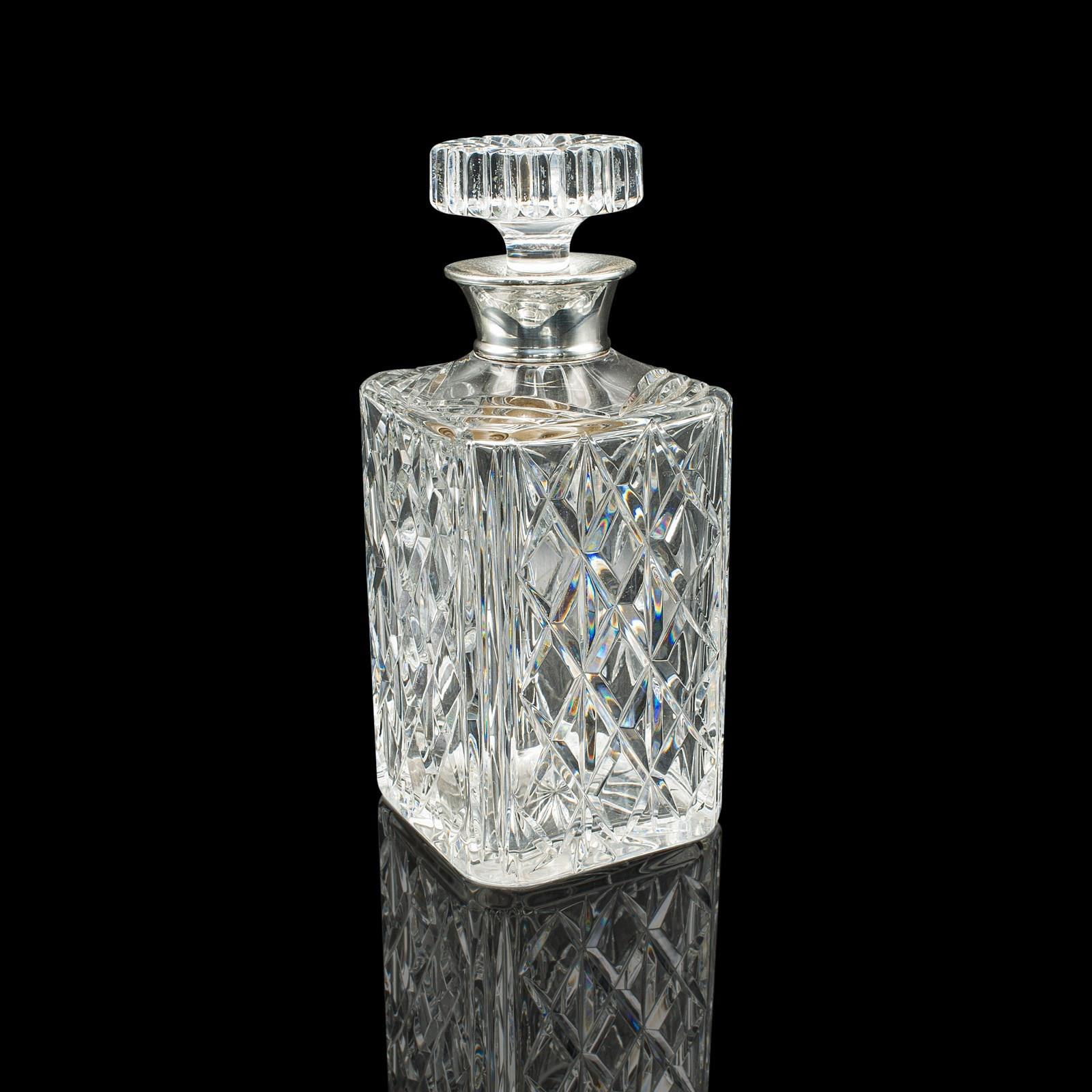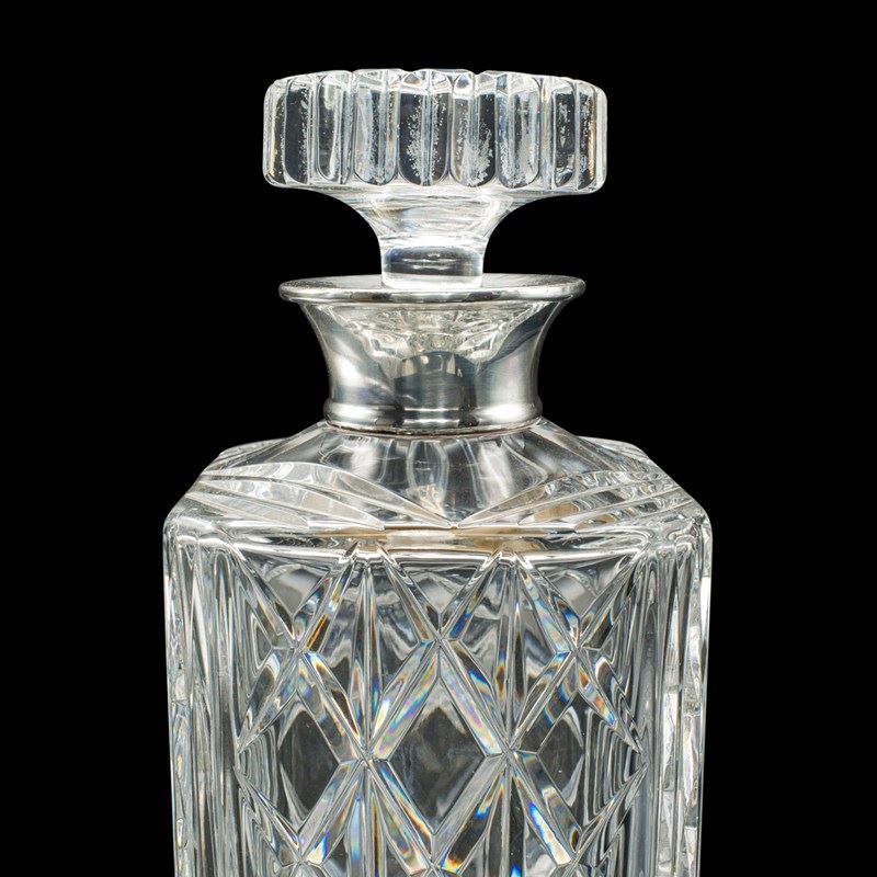 Vintage Silver Collared Spirit Decanter, English, Crystal, Whiskey, Hallmarked