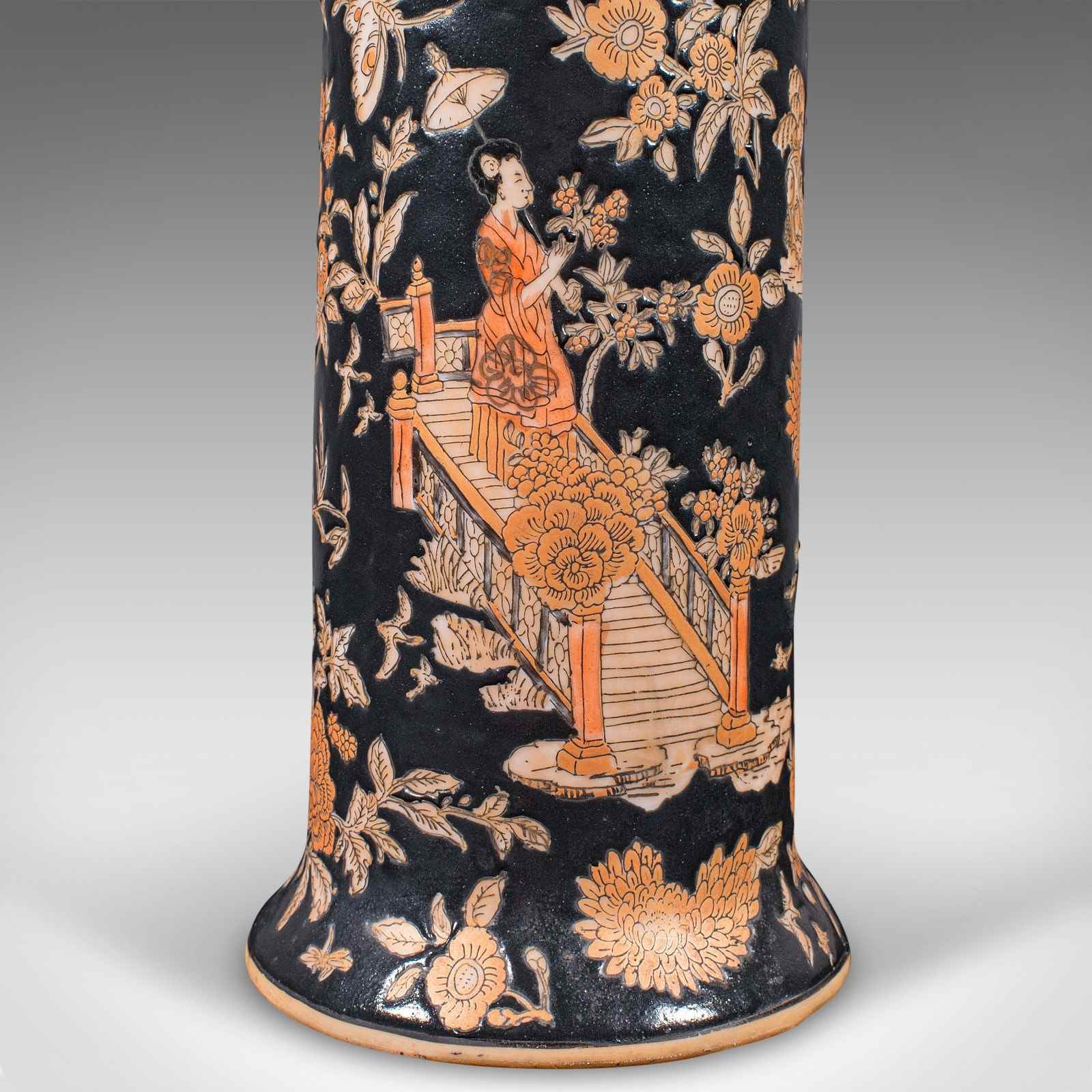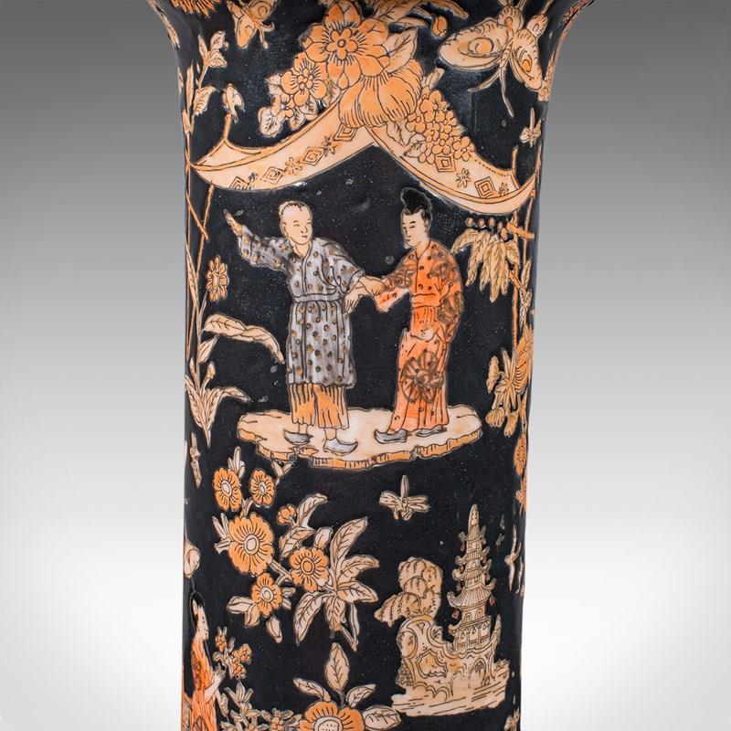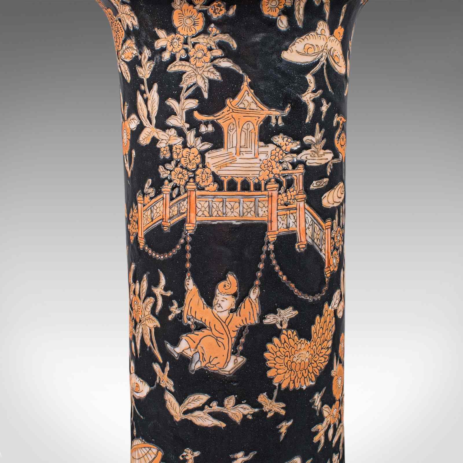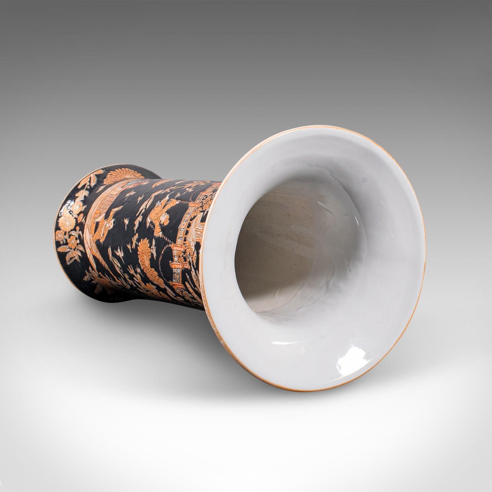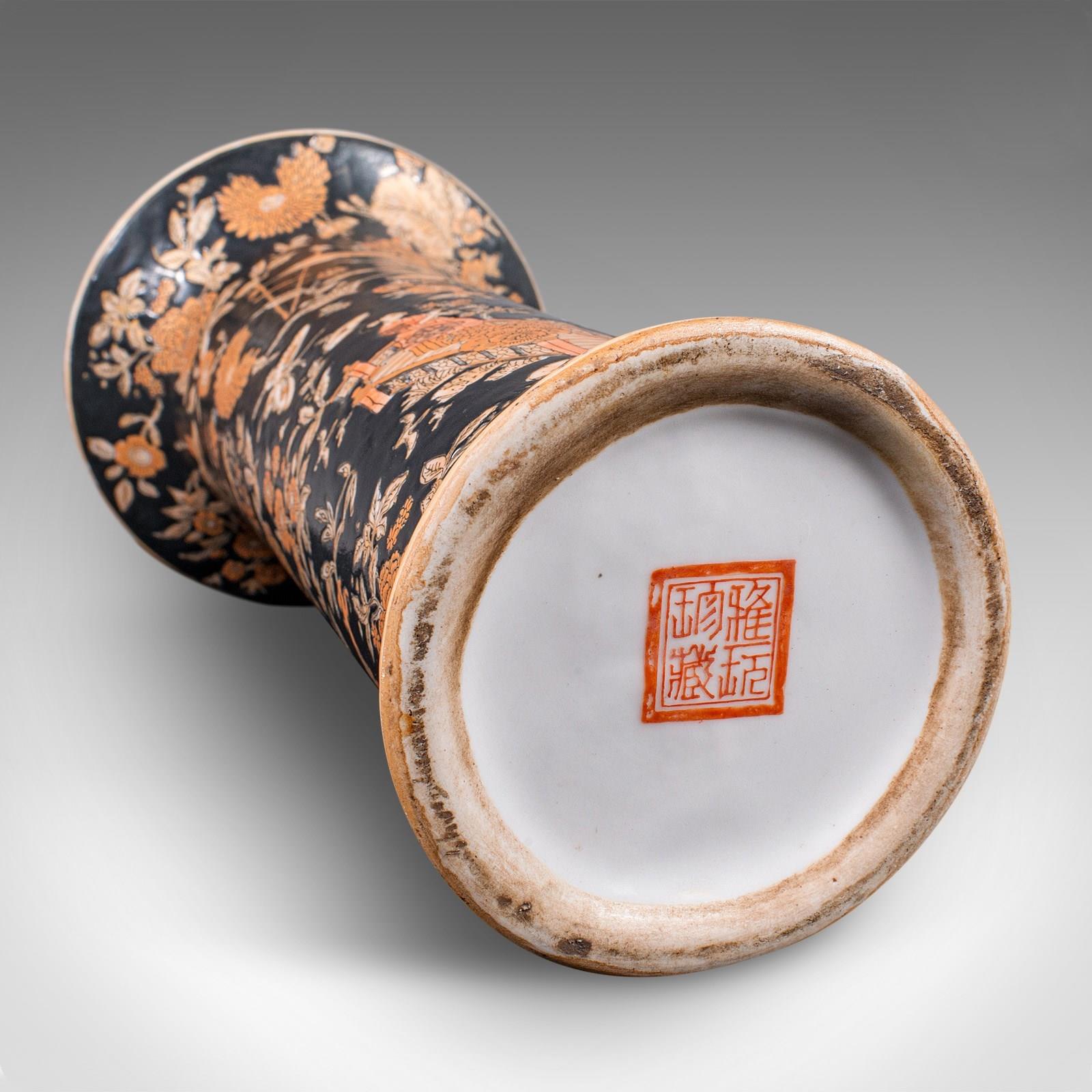 This is an attractive vintage trumpet vase, with a distinctive slimline form and eye-catching Chinese decor. Delivered ready to display.