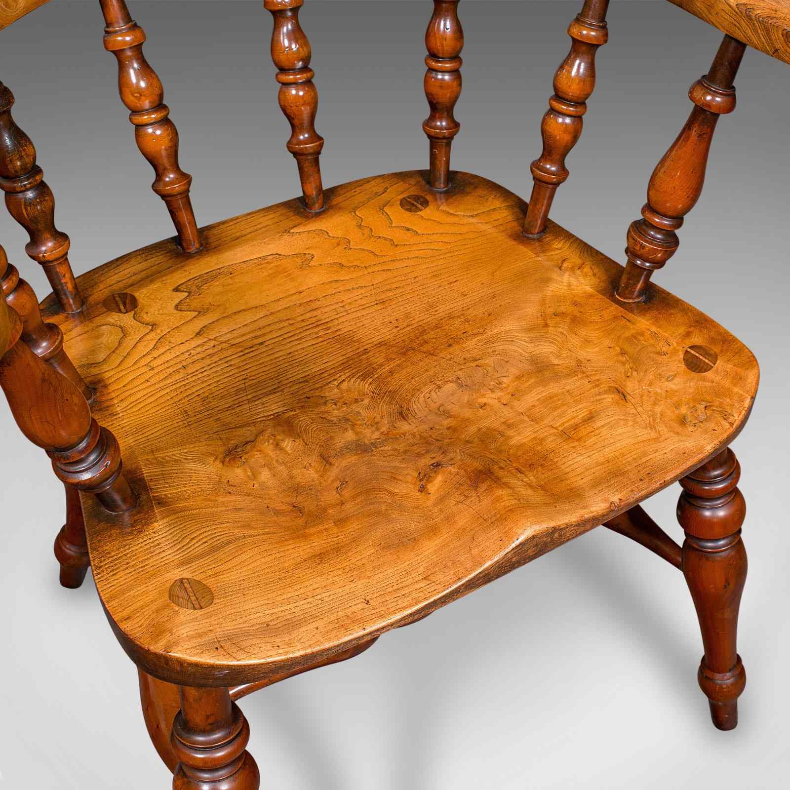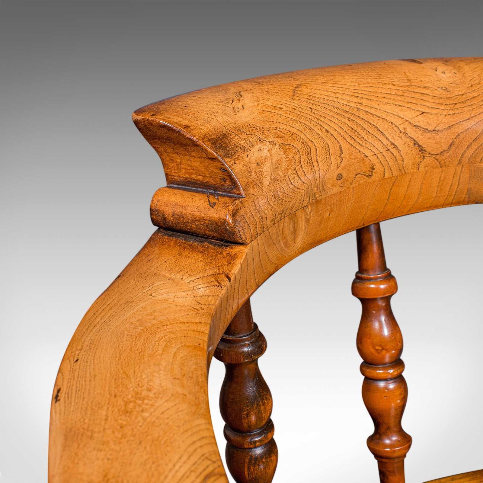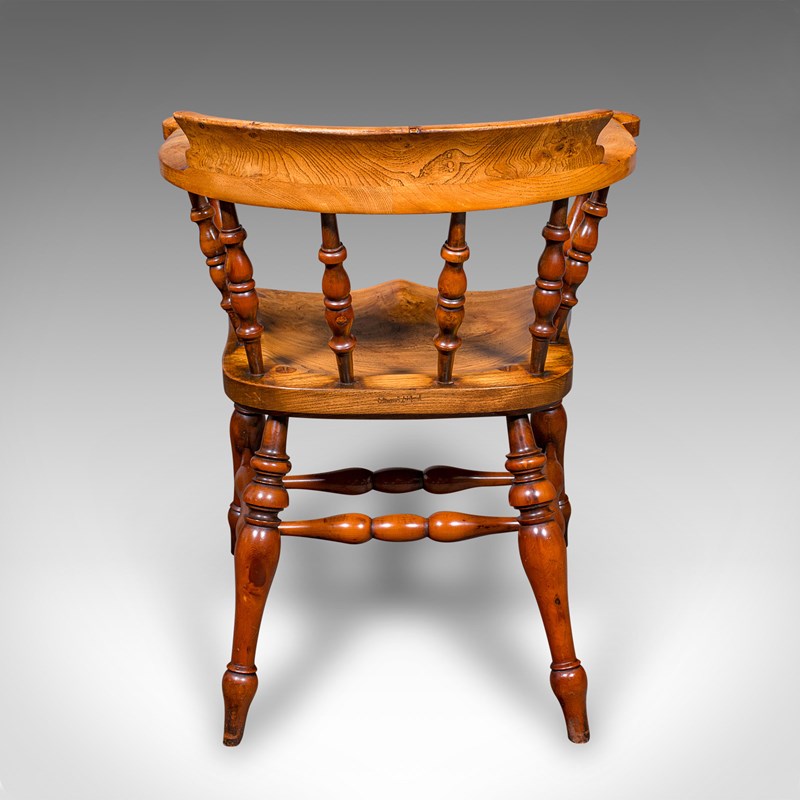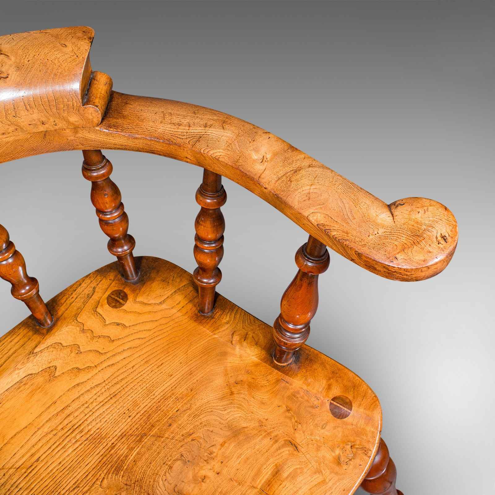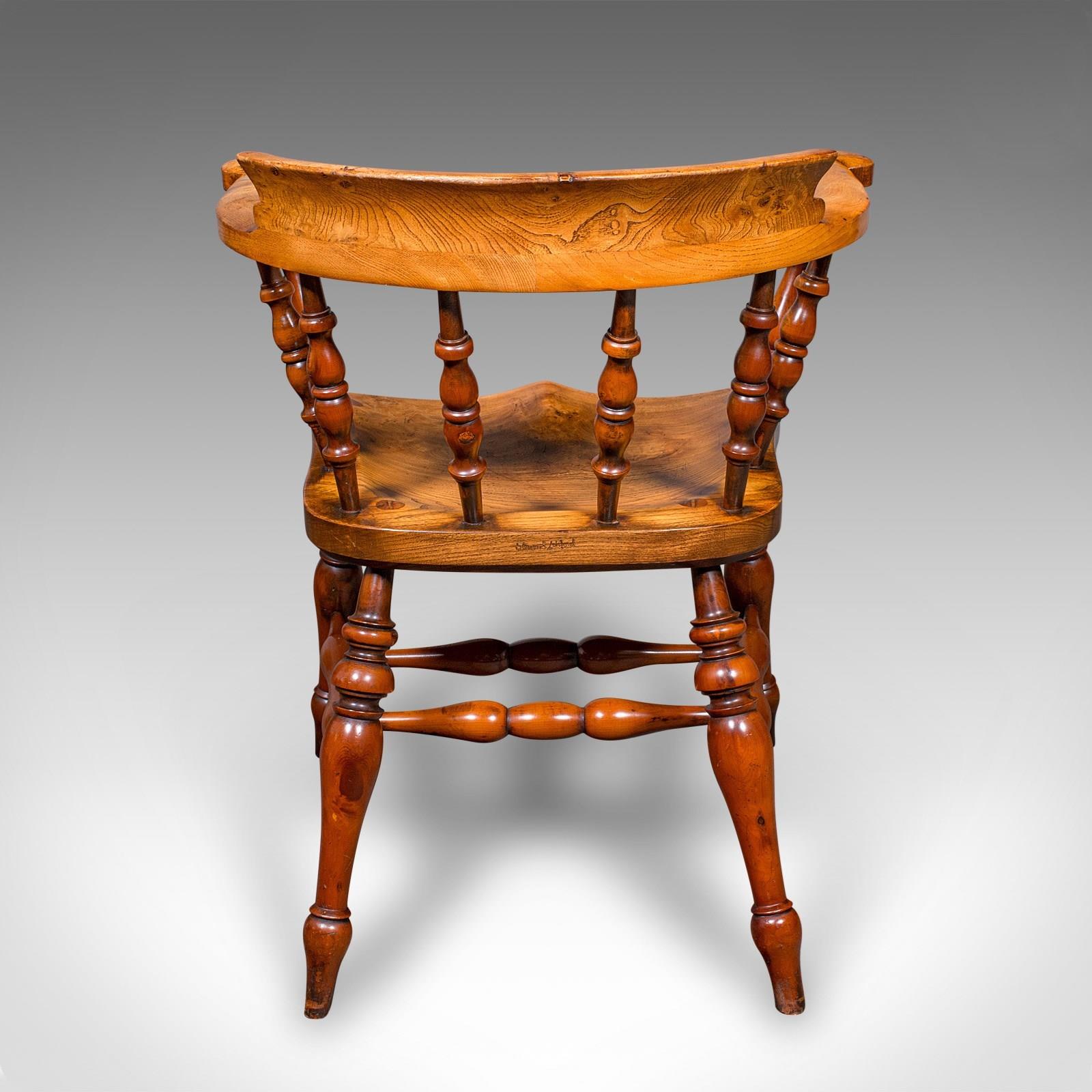 Vintage Smoker’S Bow Chair, English Ash, Captain’S Elbow Seat, Victorian Revival