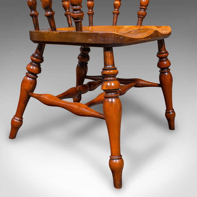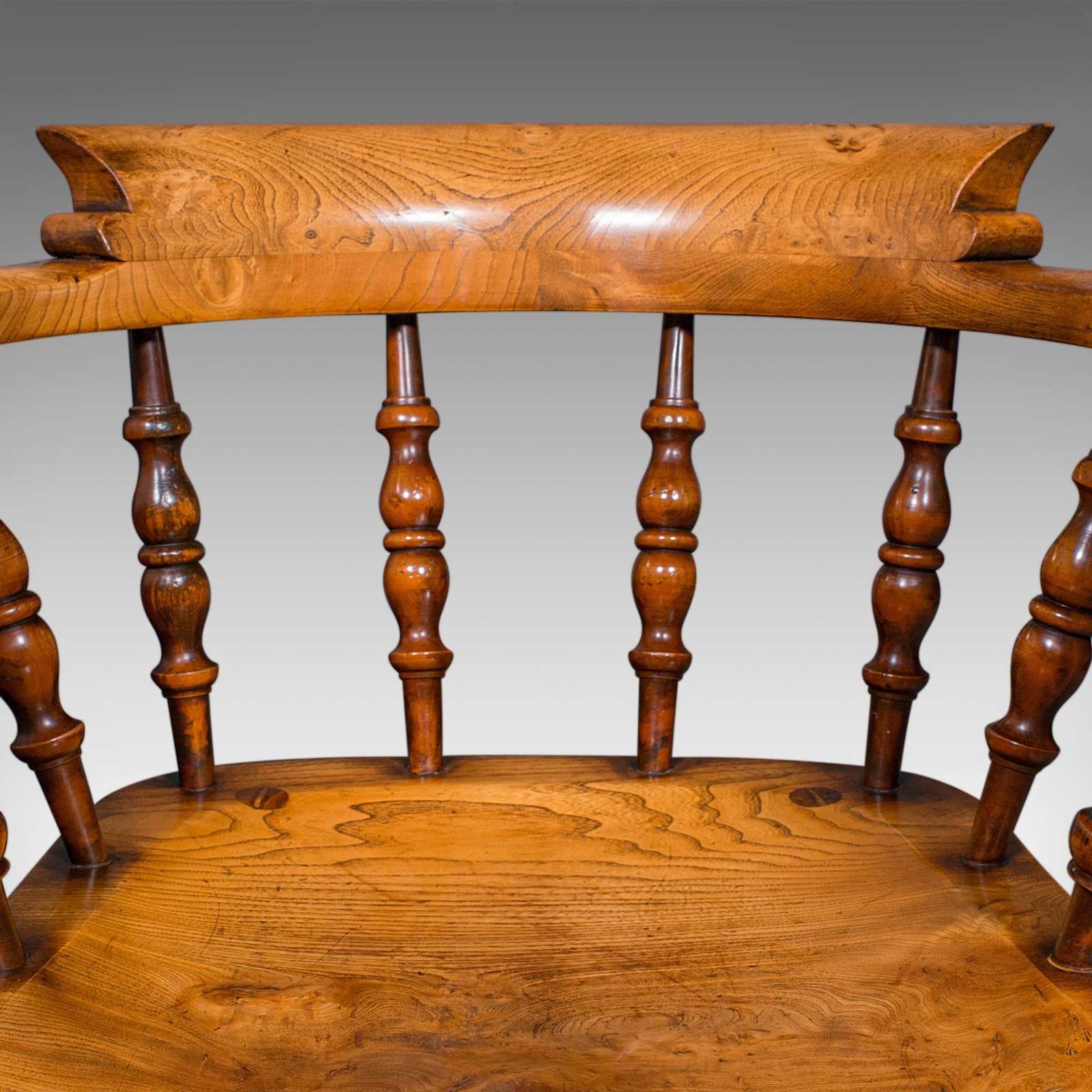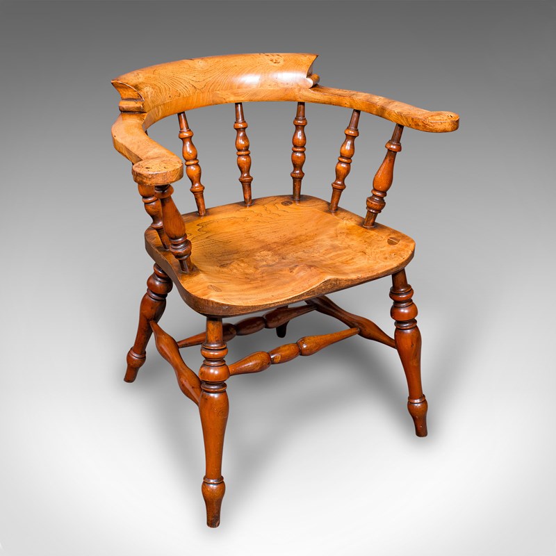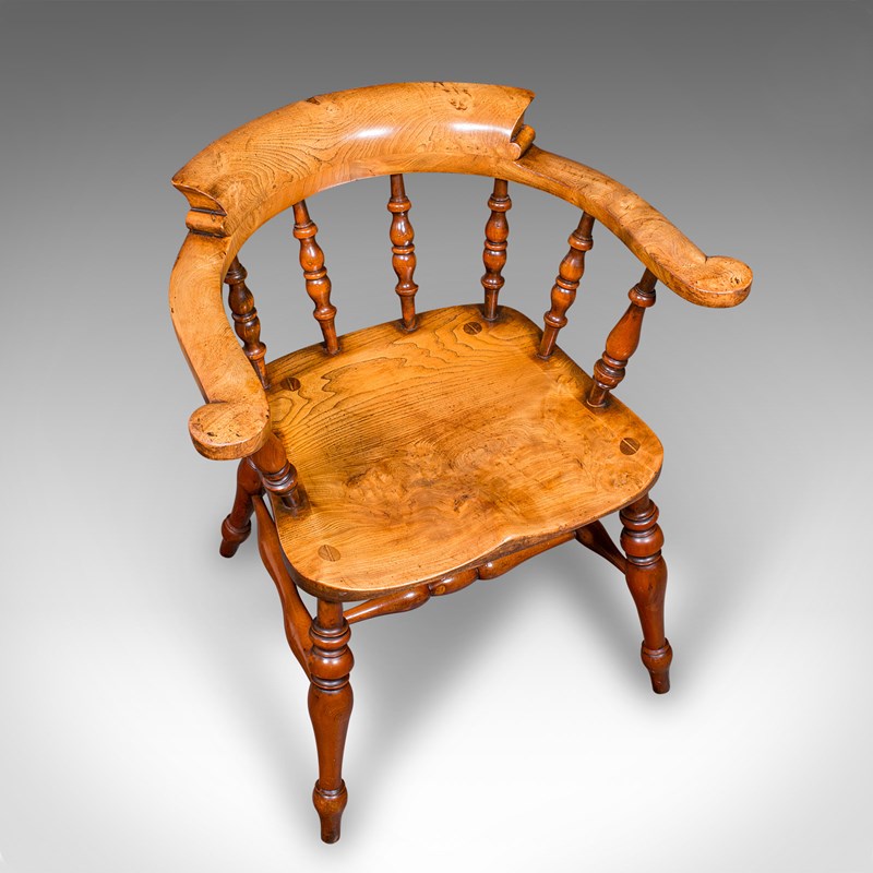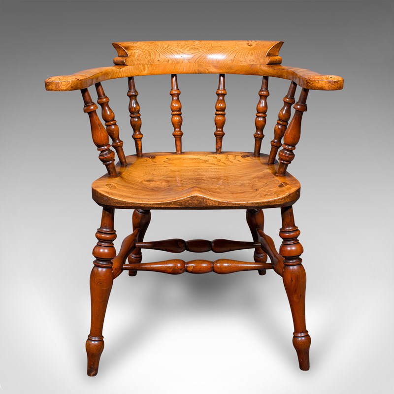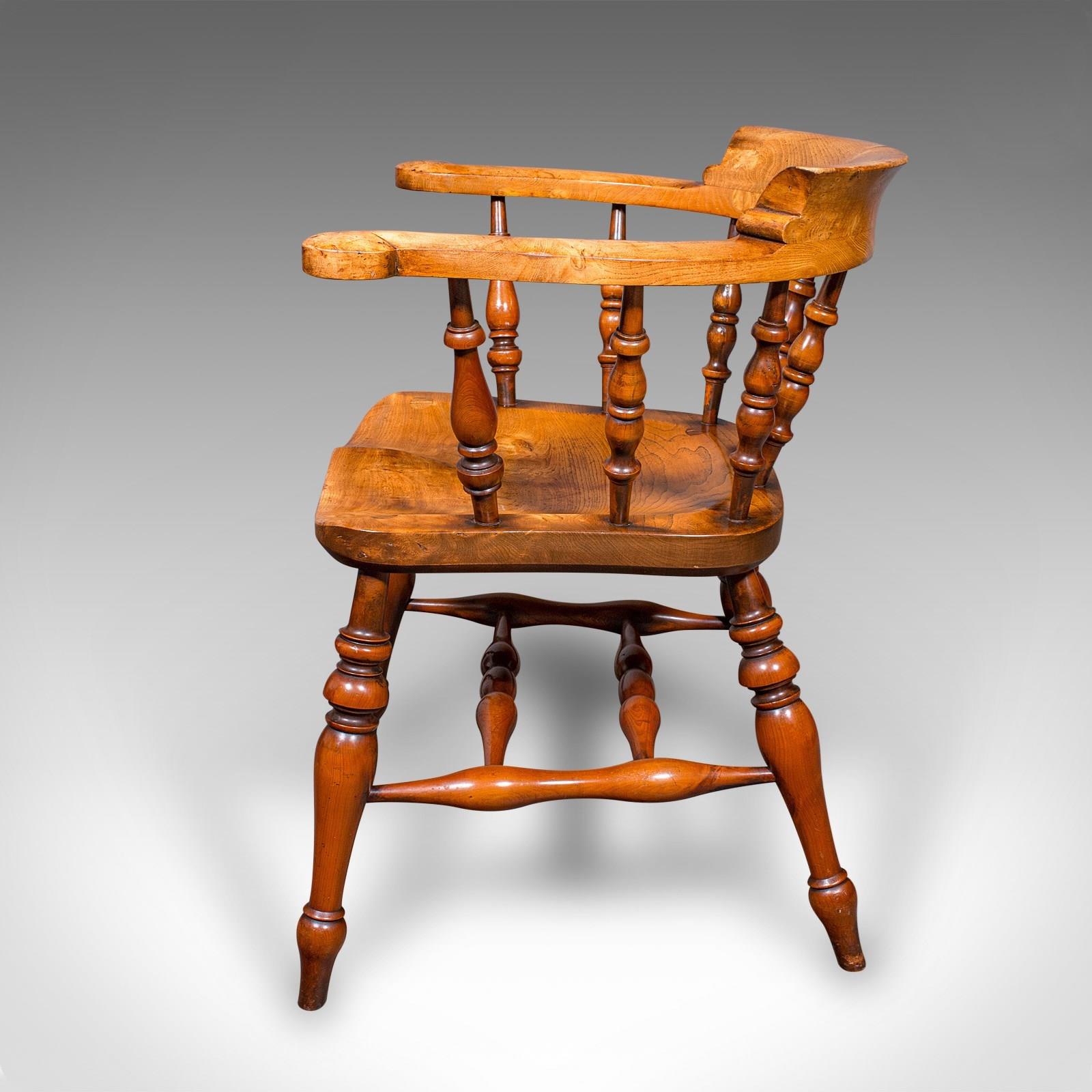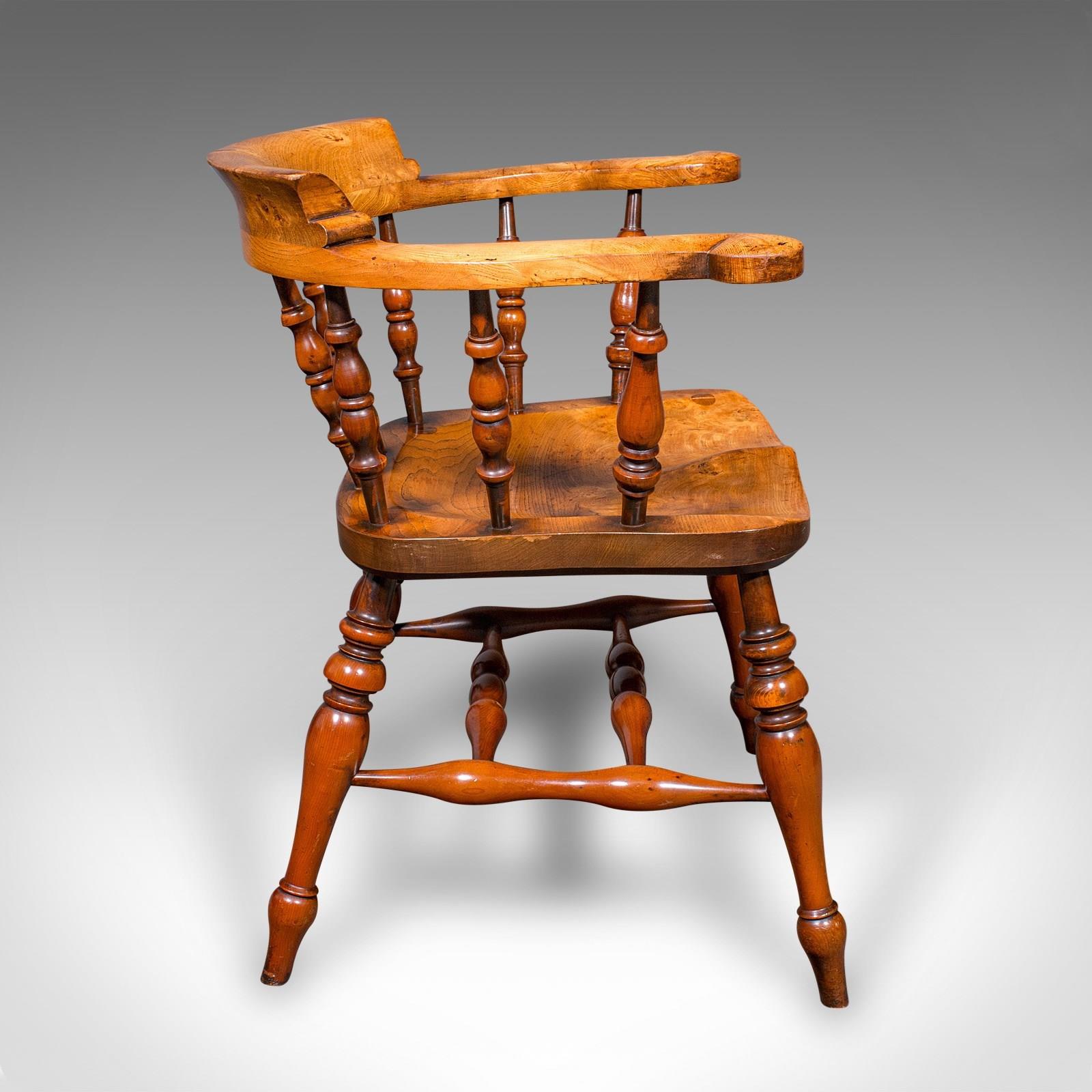 Vintage Smoker’S Bow Chair, English Ash, Captain’S Elbow Seat, Victorian Revival