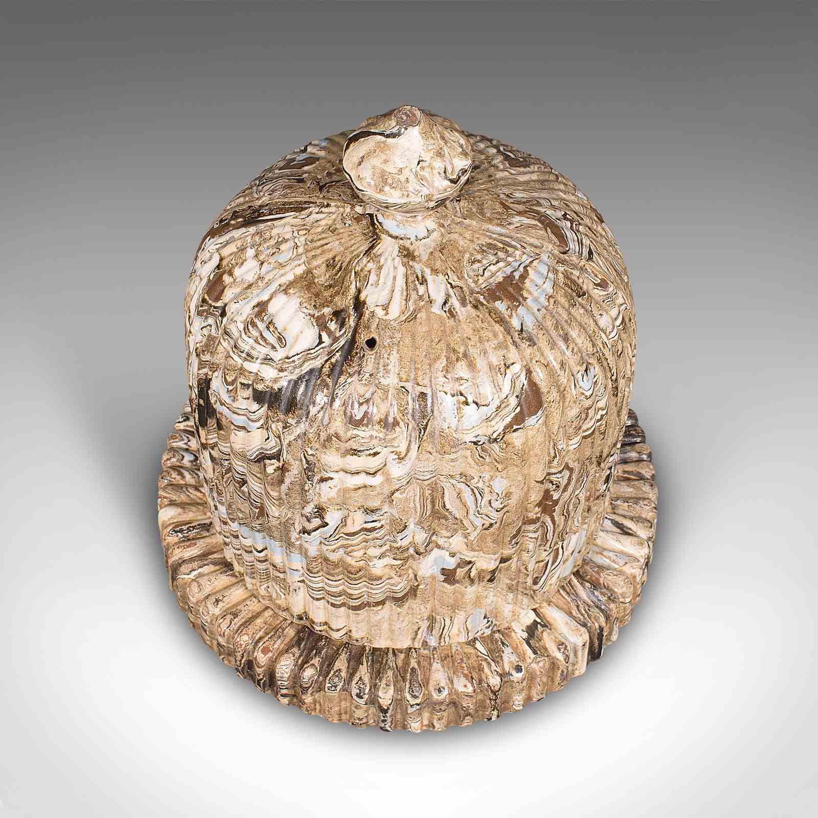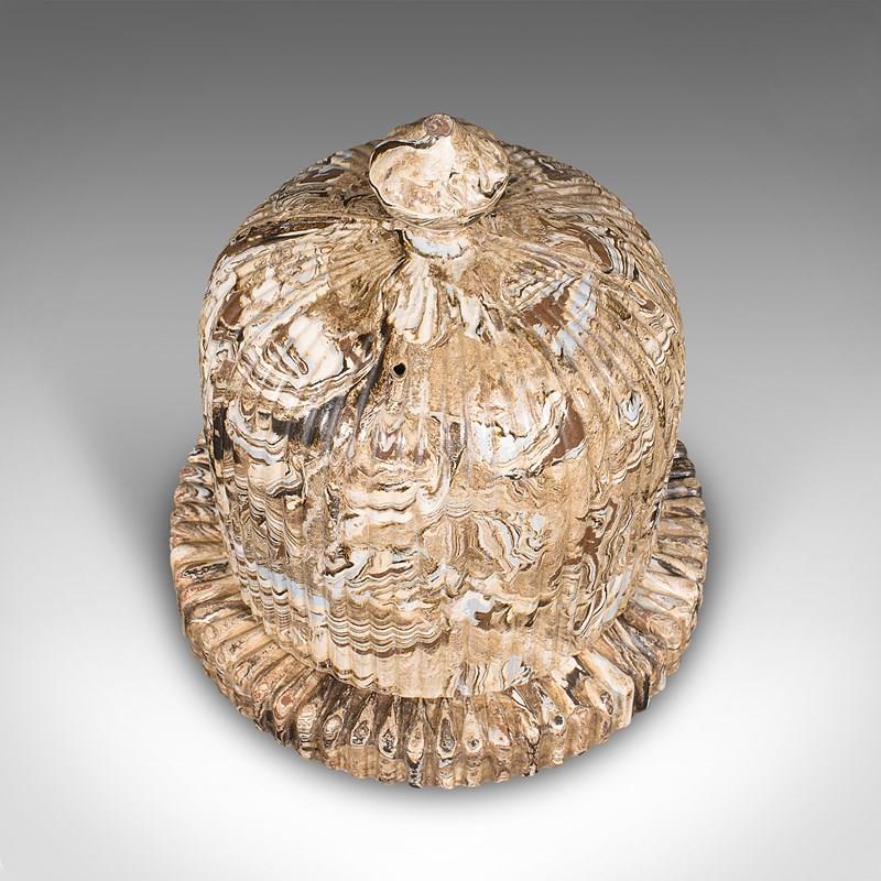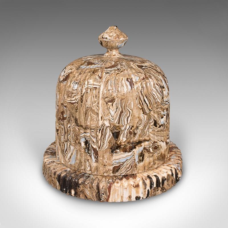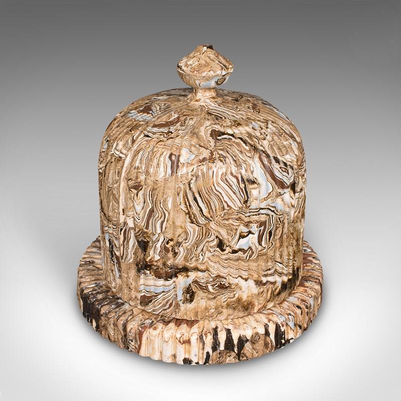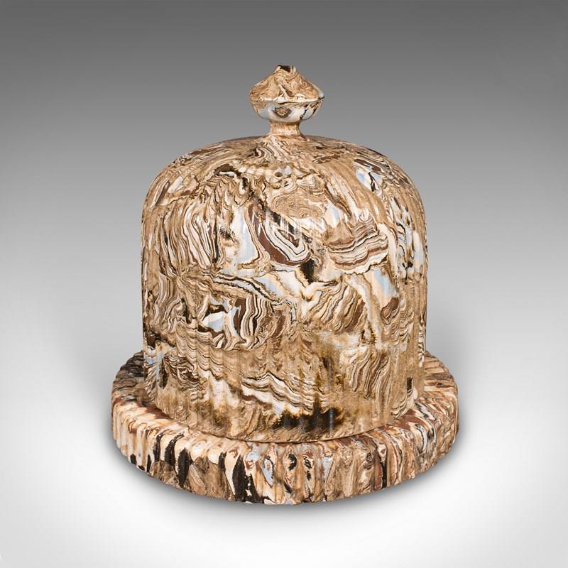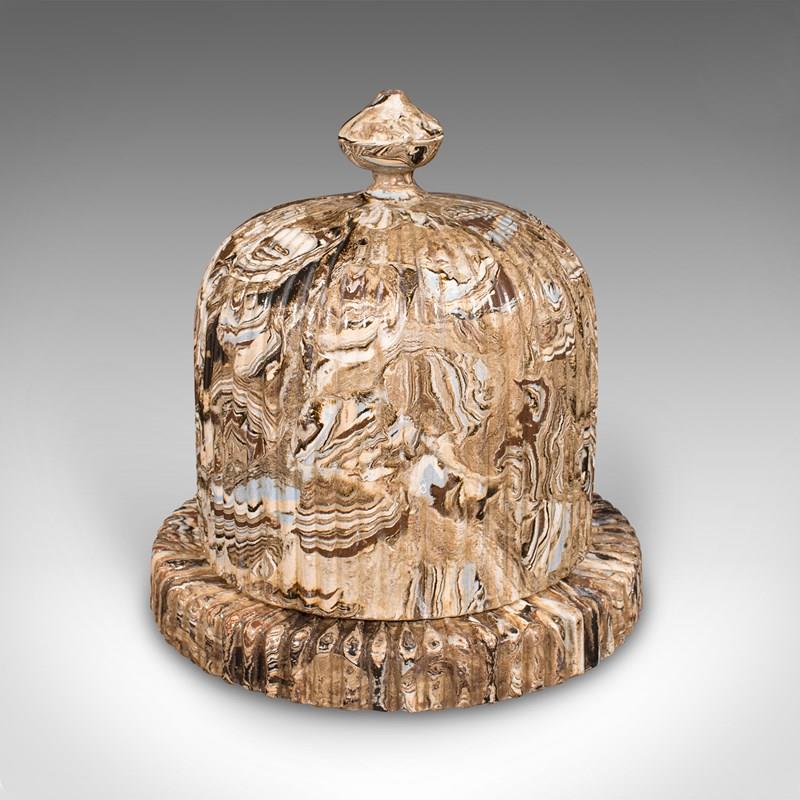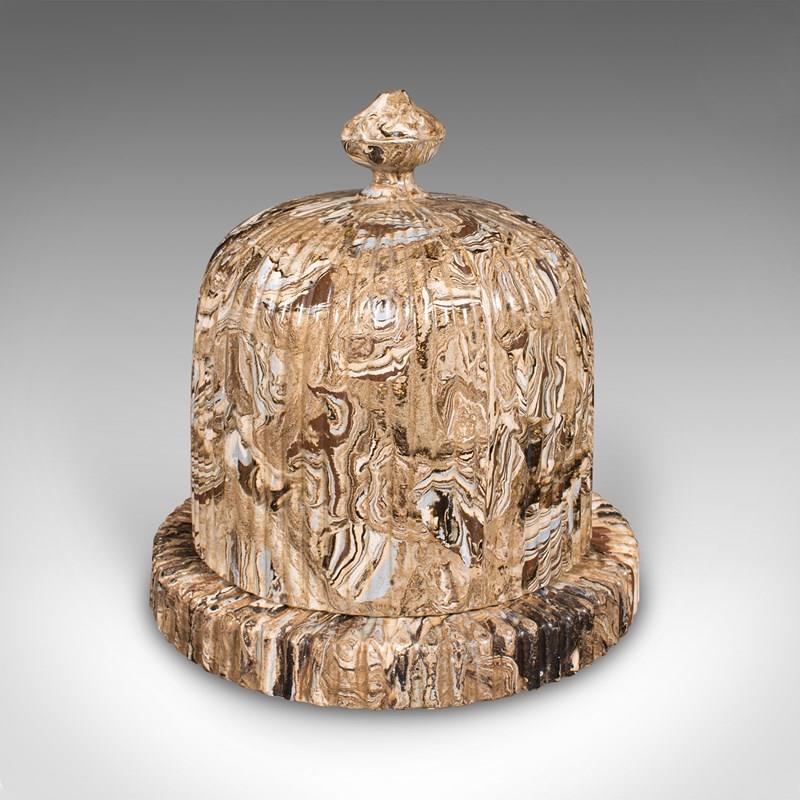 This is a superb mid 20th century Georgian Revival Stilton cheese keeper, exquisitely crafted with a marbled ceramic finish in the manner of Copeland's Agateware. This vintage truckle dome, dating to circa 1950, embodies the refined artistry of traditional English tableware.