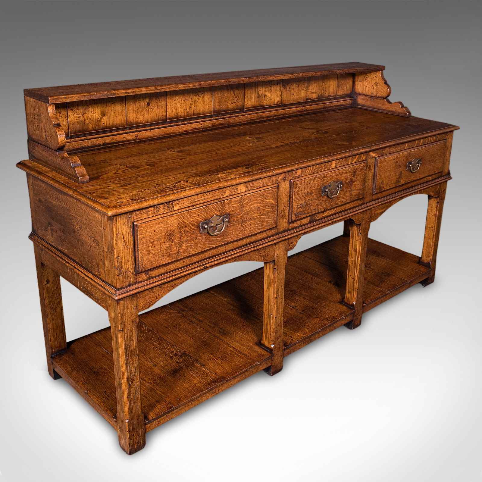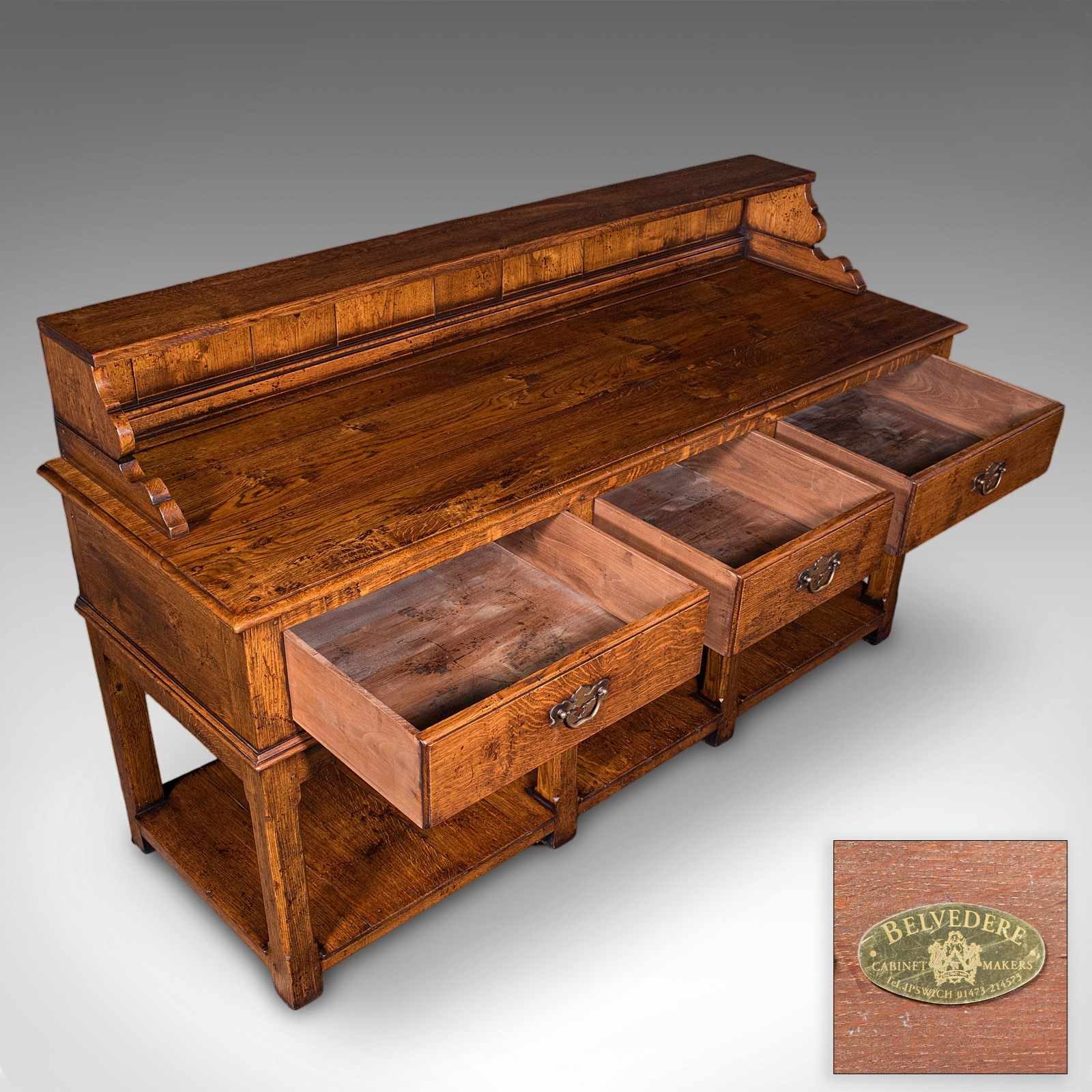 Vintage Suffolk Dresser Base, English, Oak, Victorian Revival, Kitchen Sideboard
