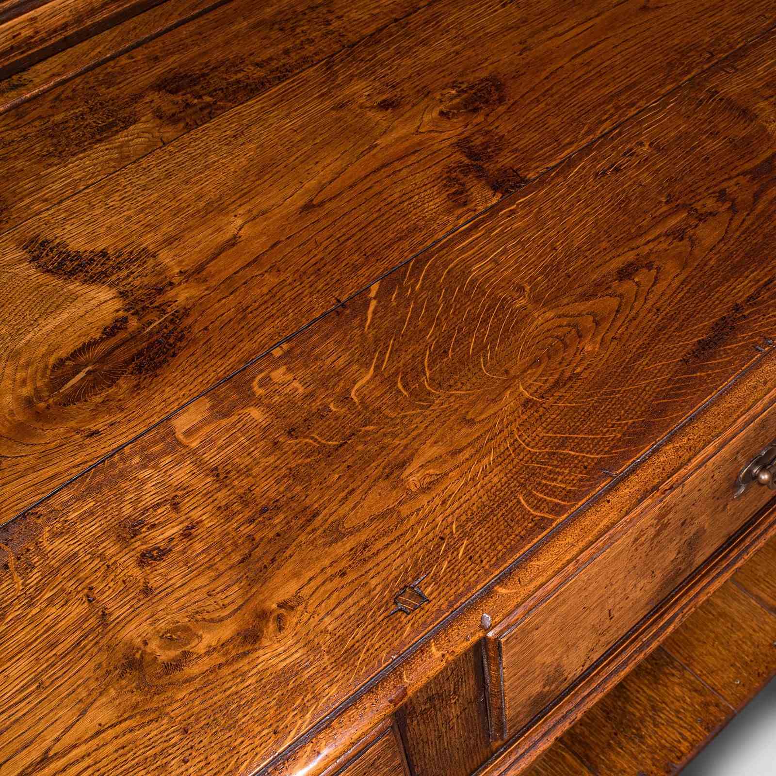 A superb revival example of an oak dresser base, combining practical storage with fine decorative appeal. Suited to the larger home or establishment, being perfect for those seeking a statement piece with authentic country house character. Solid joints and construction, delivered ready for the home or institution.