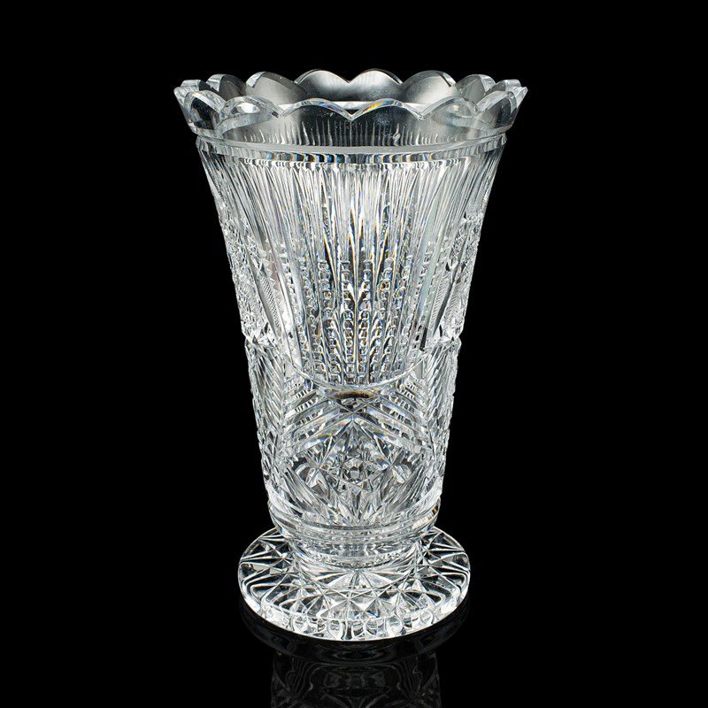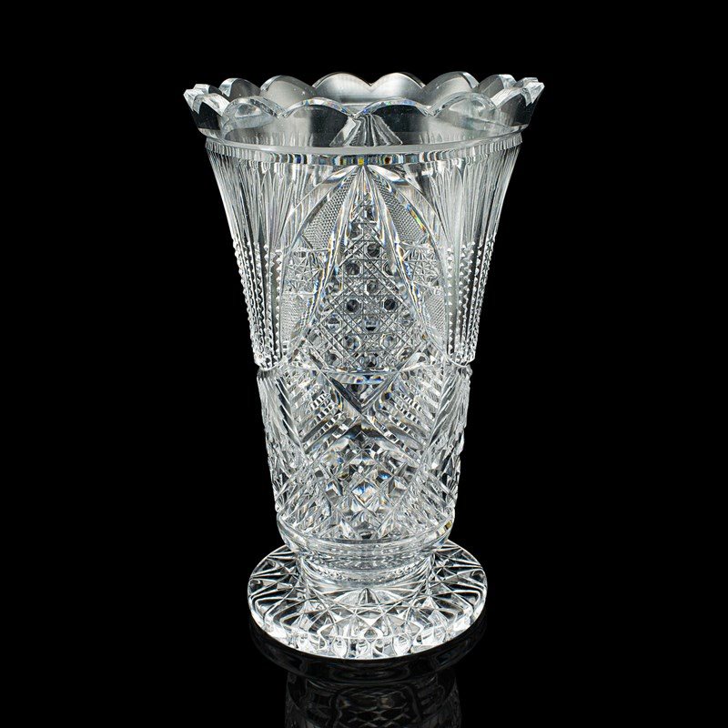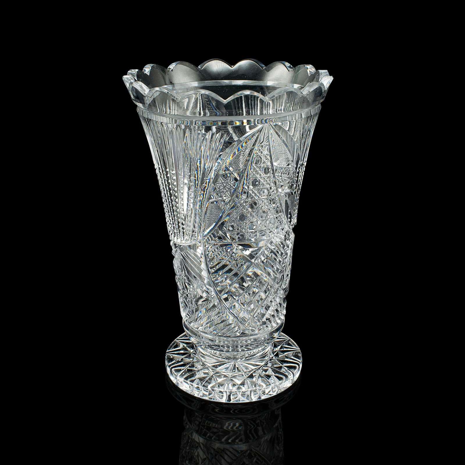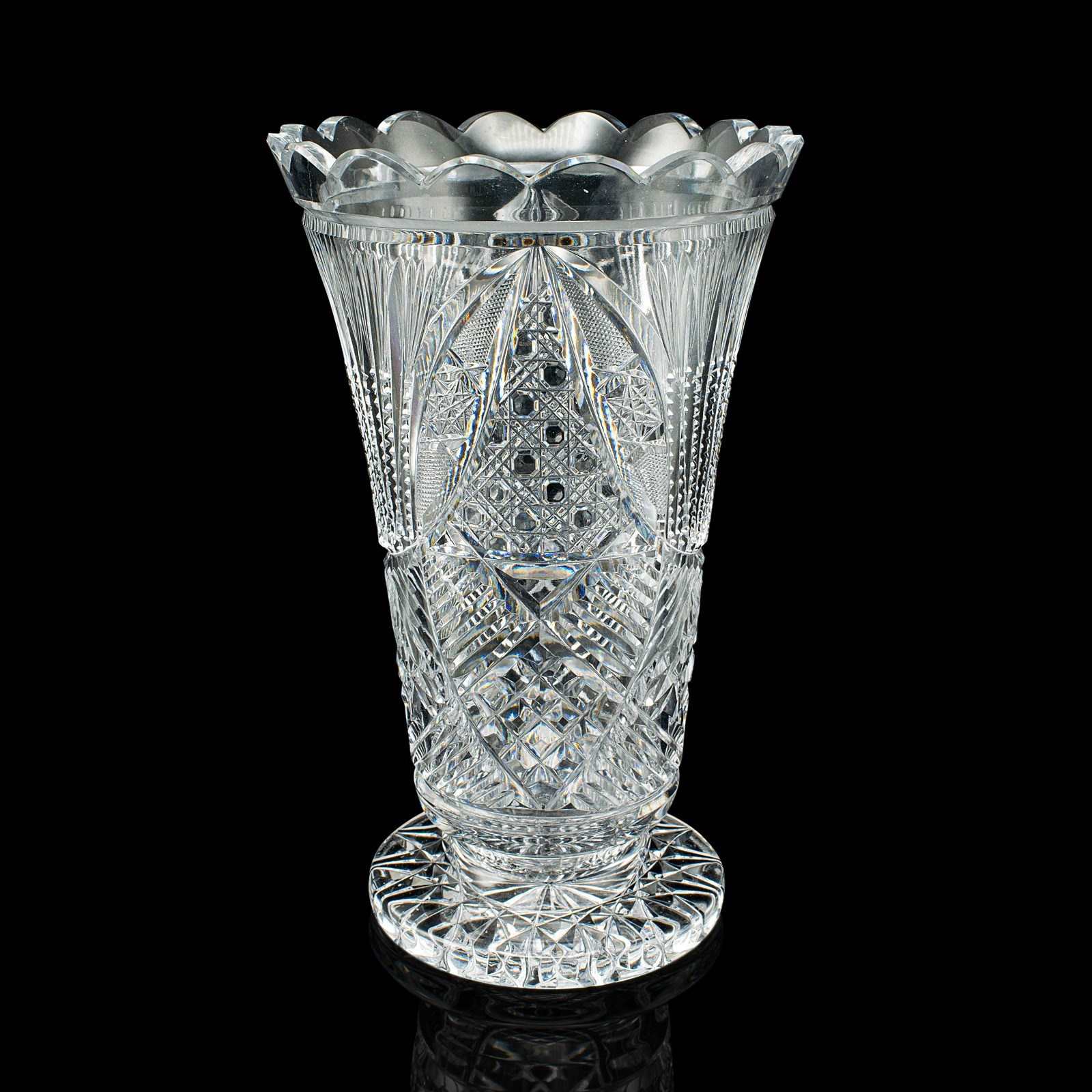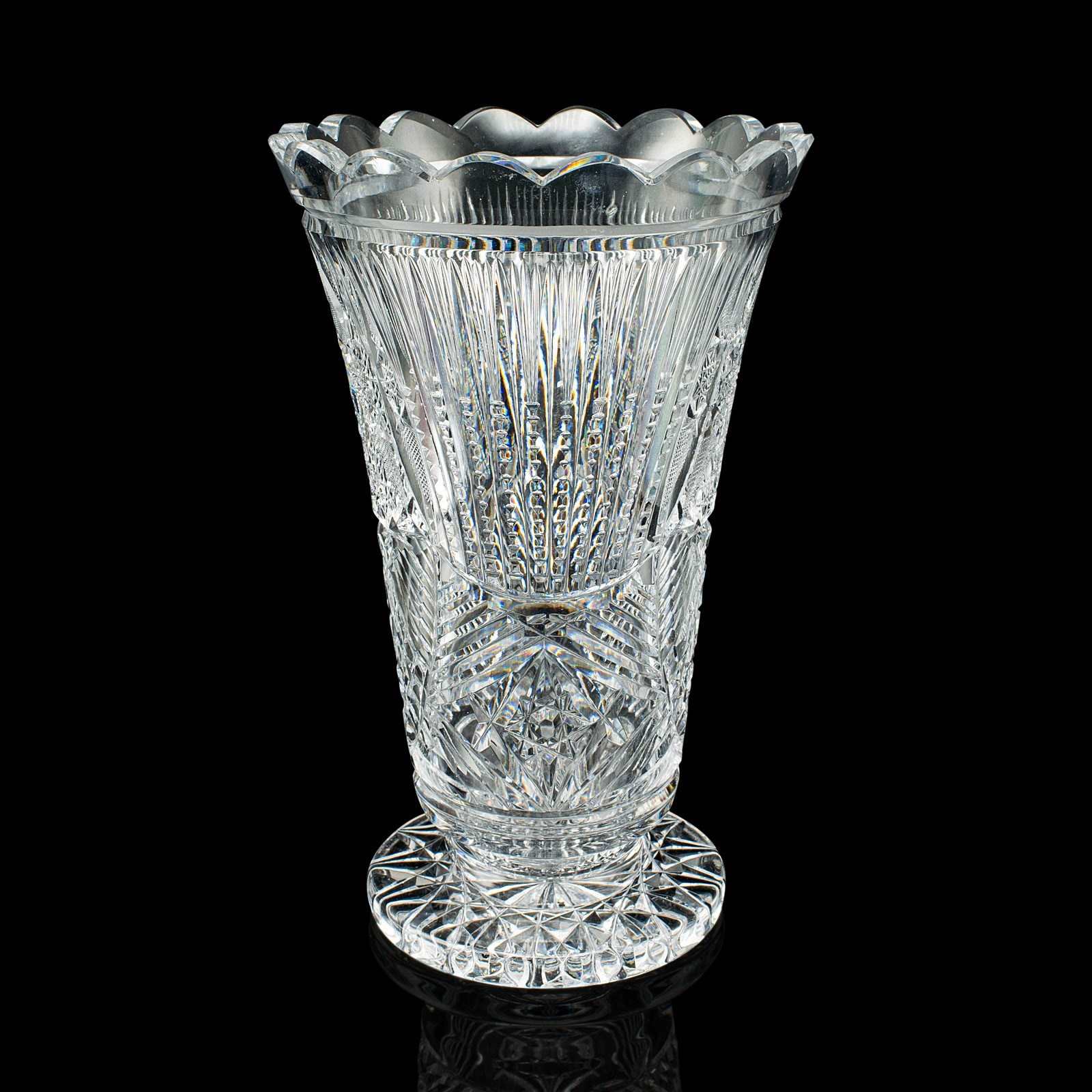 This is a vintage trumpet vase. An English, cut glass decorative flower pot, dating to the mid 20th century, circa 1960.