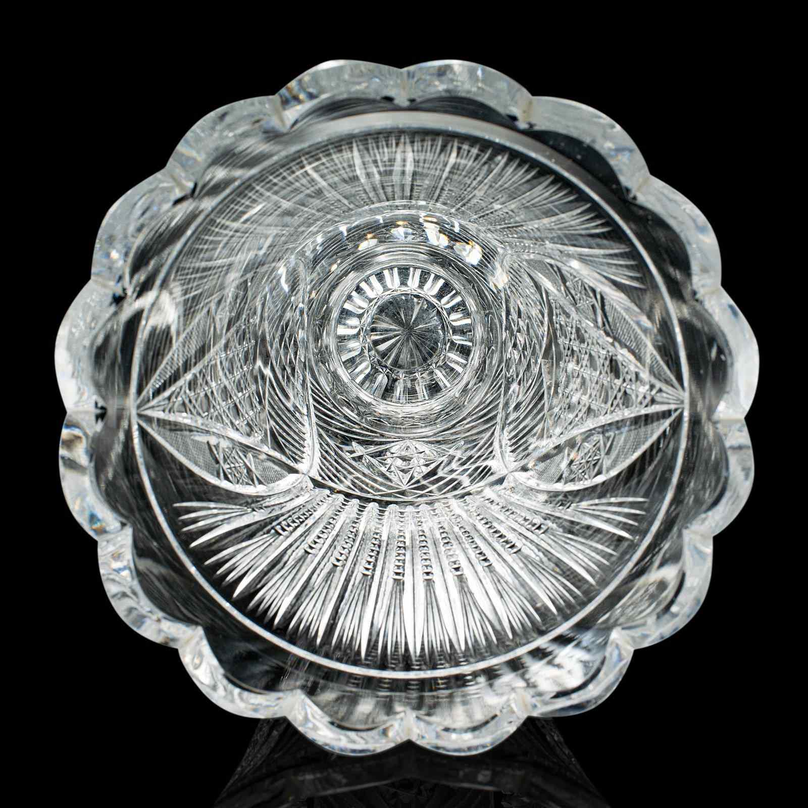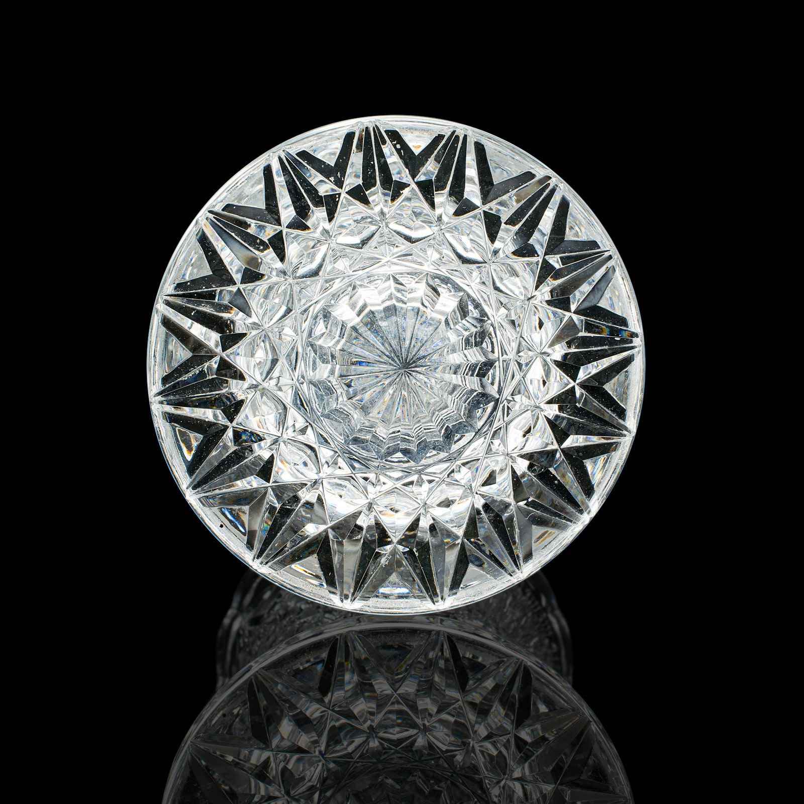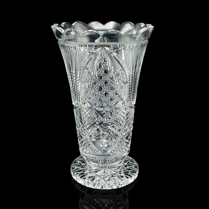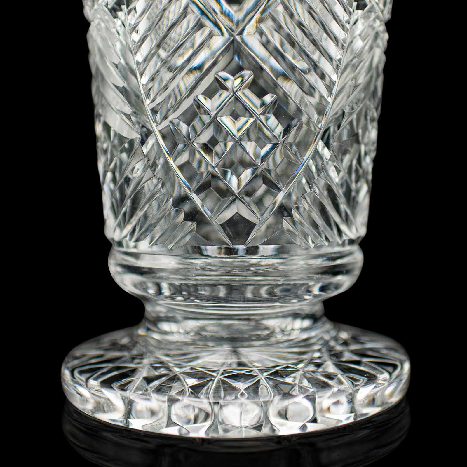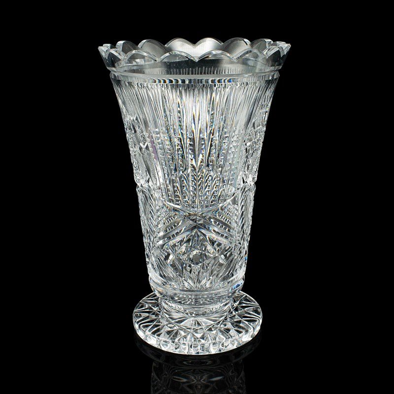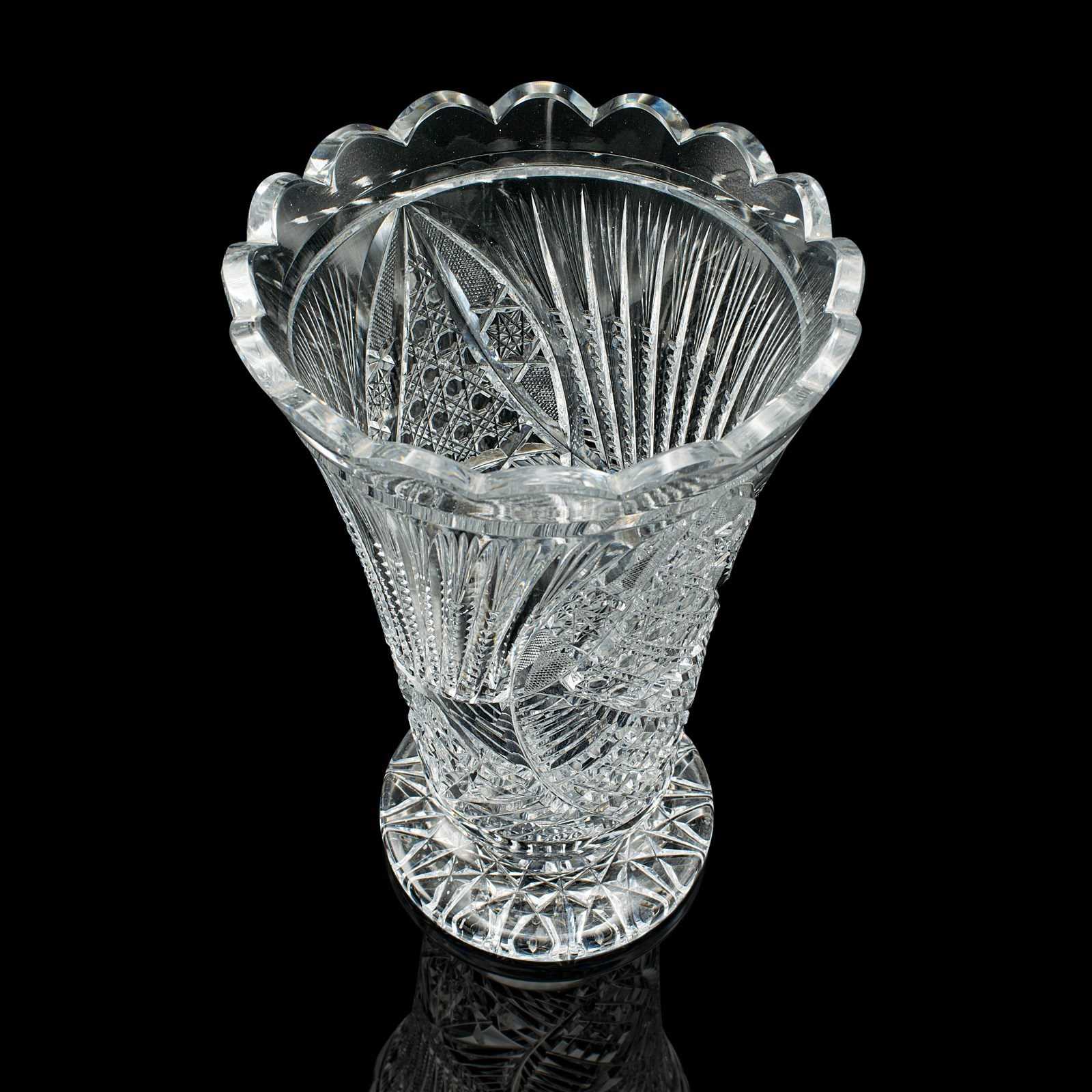This is a vintage trumpet vase. An English, cut glass decorative flower pot, dating to the mid 20th century, circa 1960.