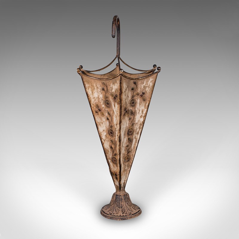 This is a delightful vintage umbrella stand, offering Art Nouveau grace and everyday practicality. Delivered ready for use.