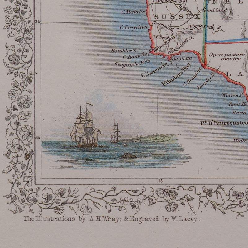 Originally engraved by John Tallis, circa 1850, renowned for his decorative cartography
