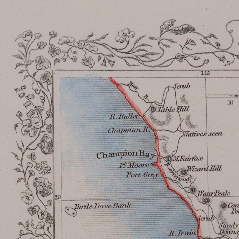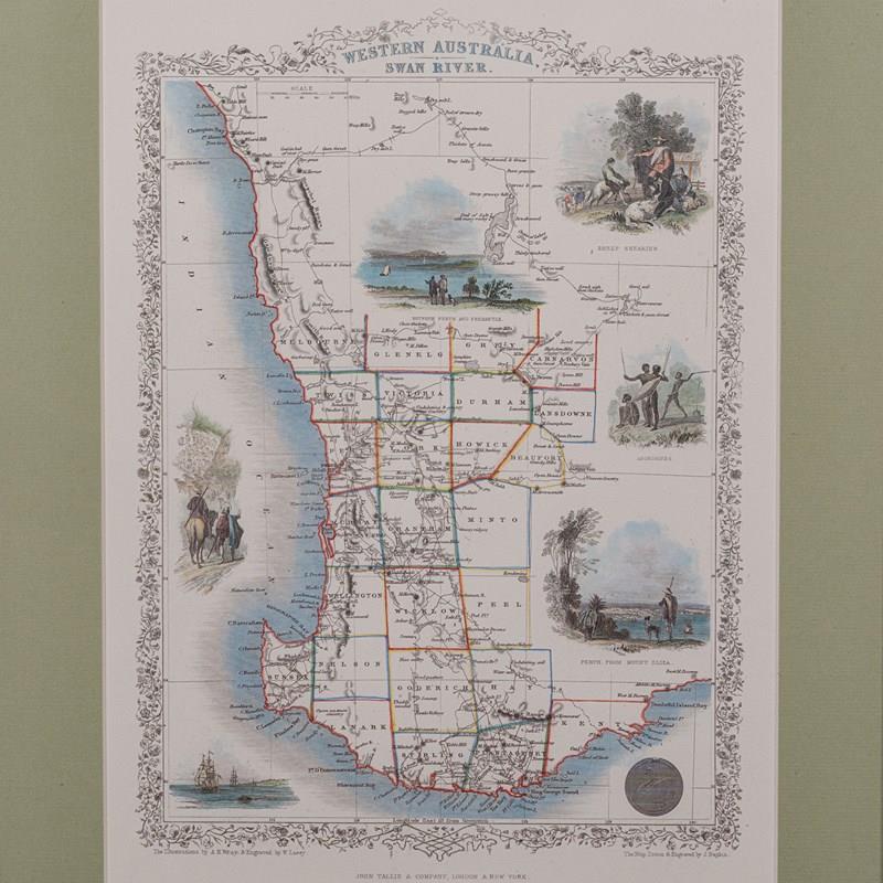 Vintage Western Australia Map, Framed Print, Swan River, John Tallis Cartography