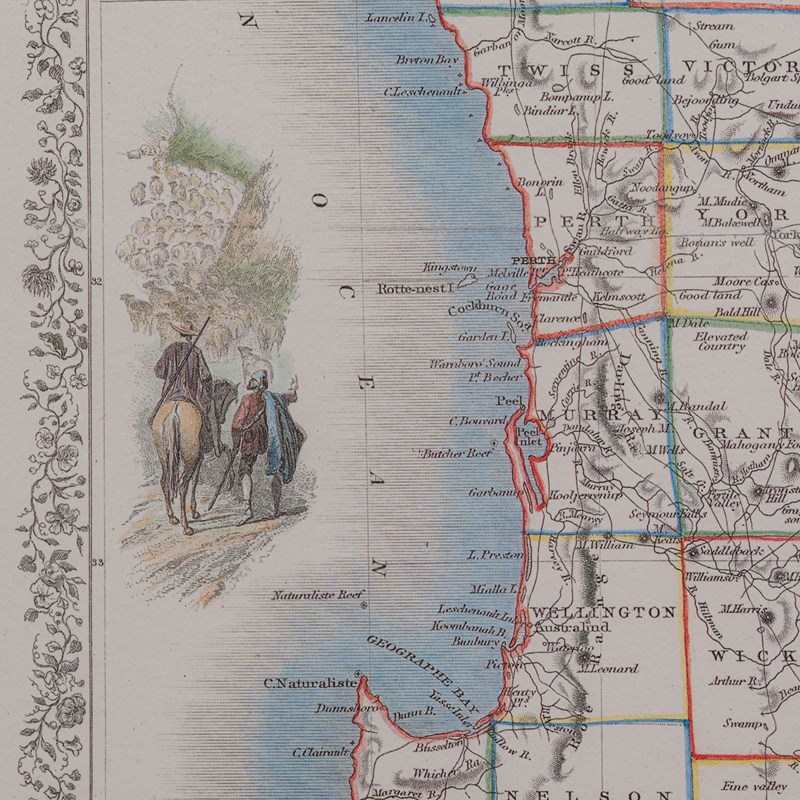 Fascinating reproduction map of Western Australia's Swan River region, honouring Tallis’ celebrated 19th century work