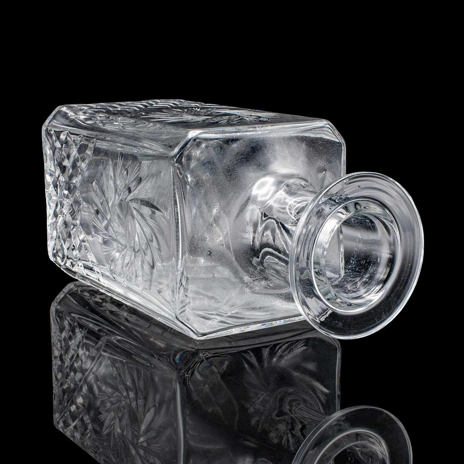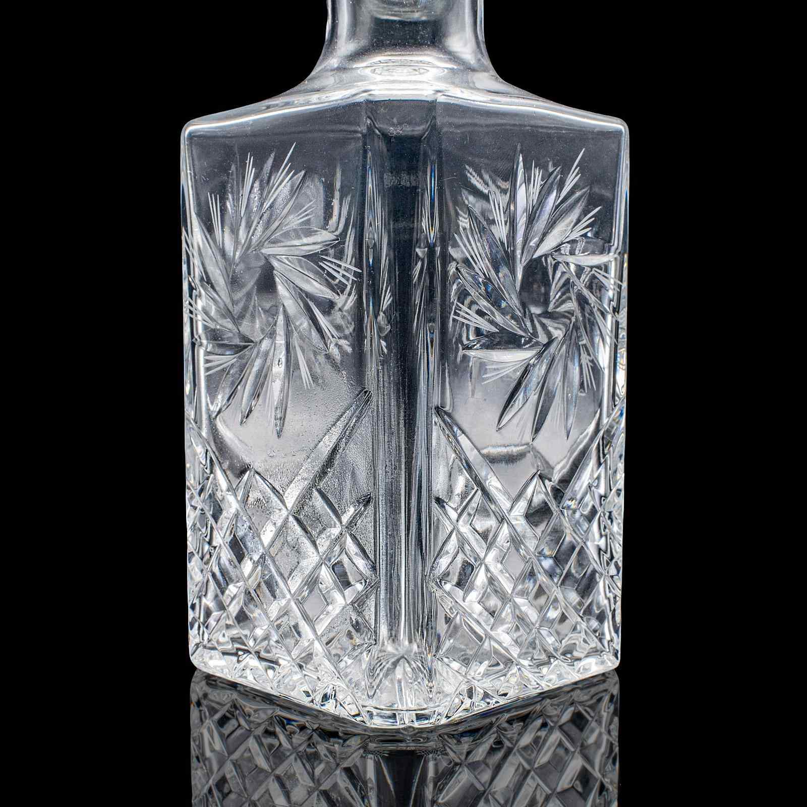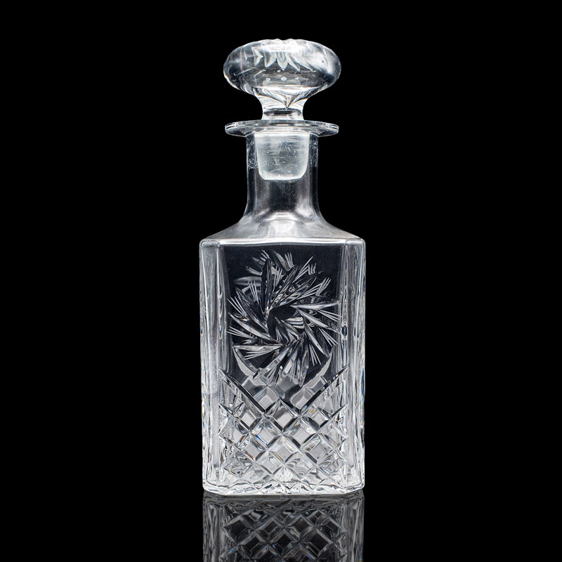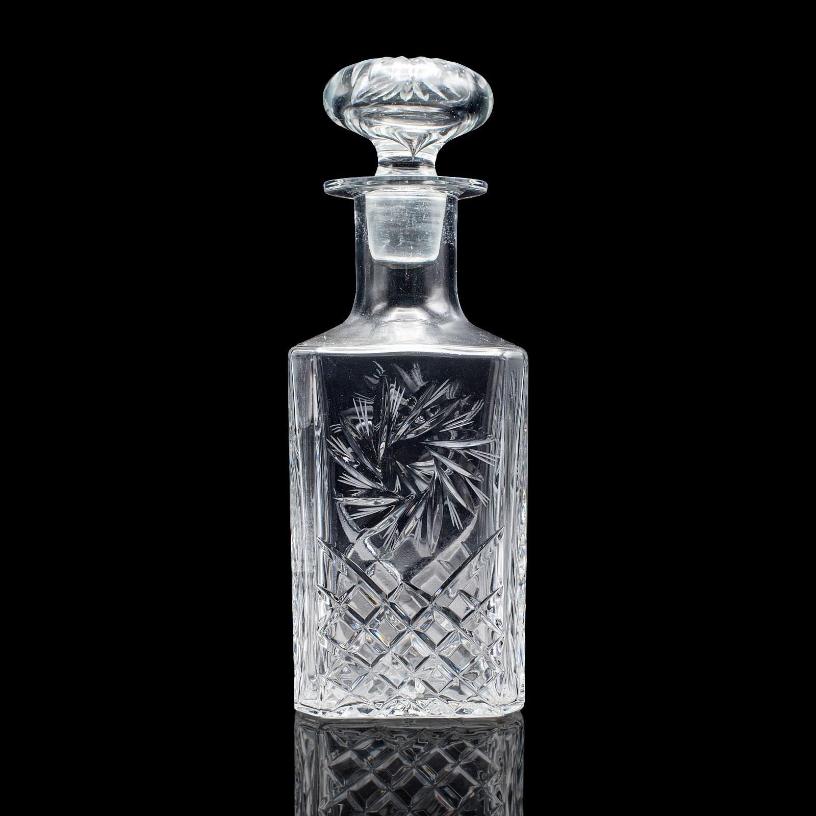 This is a vintage whiskey decanter. An English, cut glass brandy or spirit vessel, dating to the late 20th century, circa 1975.