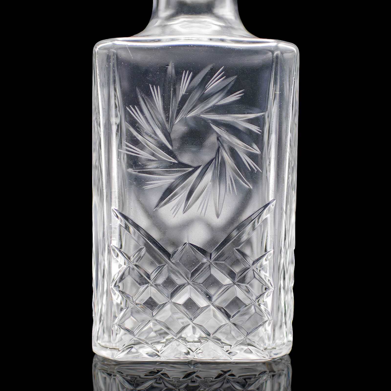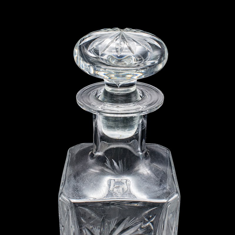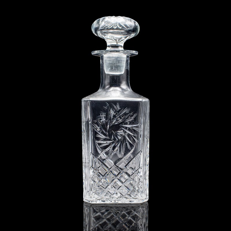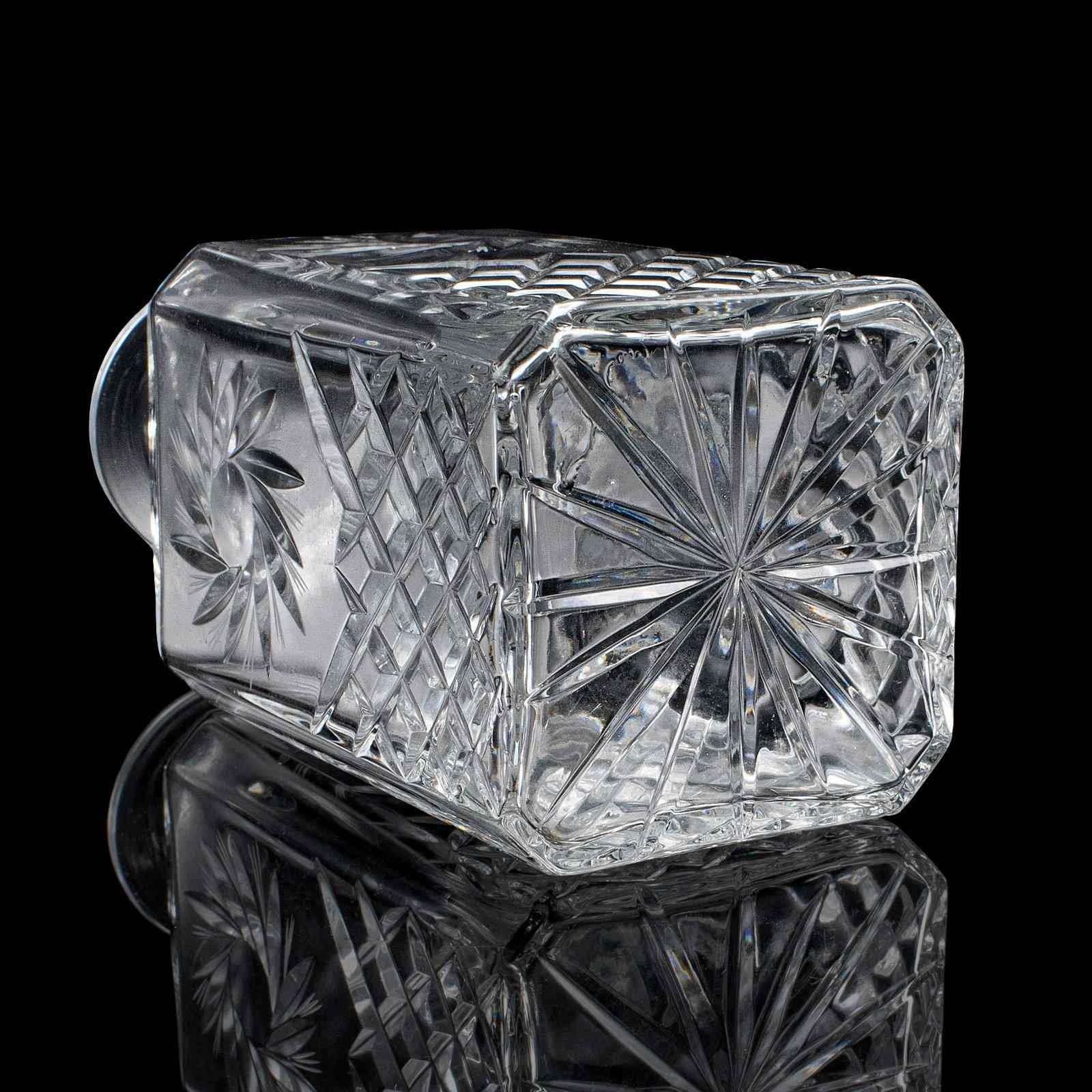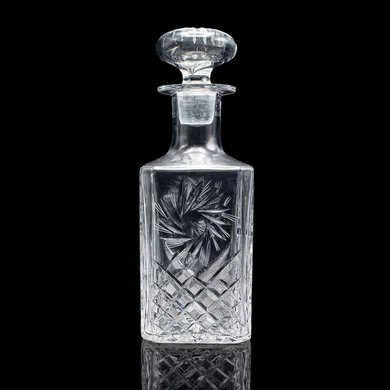 This is a vintage whiskey decanter. An English, cut glass brandy or spirit vessel, dating to the late 20th century, circa 1975.
