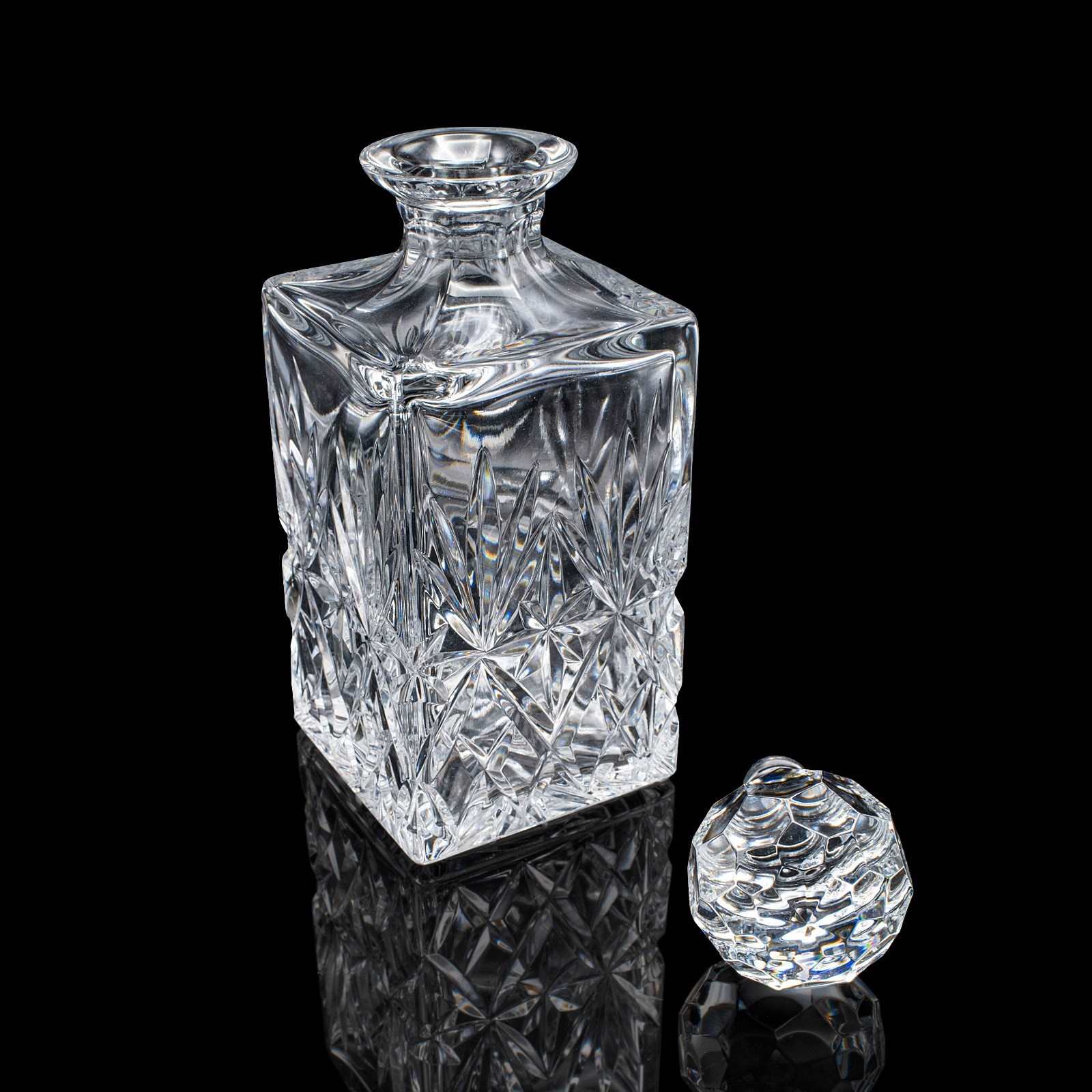 This is a vintage whisky decanter. An English, cut glass Scotch bottle, dating to the late 20th century, circa 1970. A substantial and tactile example, with bright finish and classic cut detail.