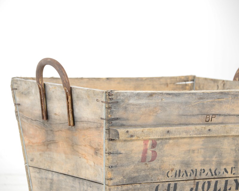 Wooden Champagne harvesting boxes (4 available, all identical). Great as a large log store or could be lined to store linens or cushions.