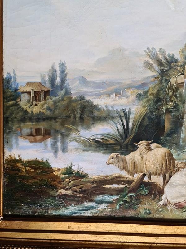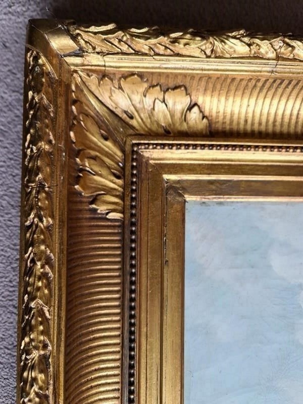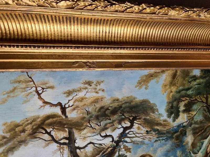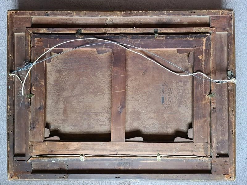 In it's original late 18th, early 19th Century French frame. French canvas stamped to verso.