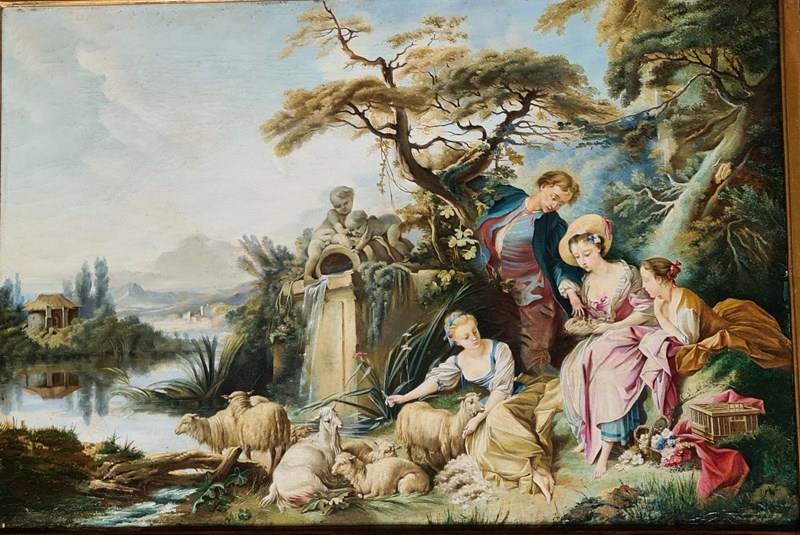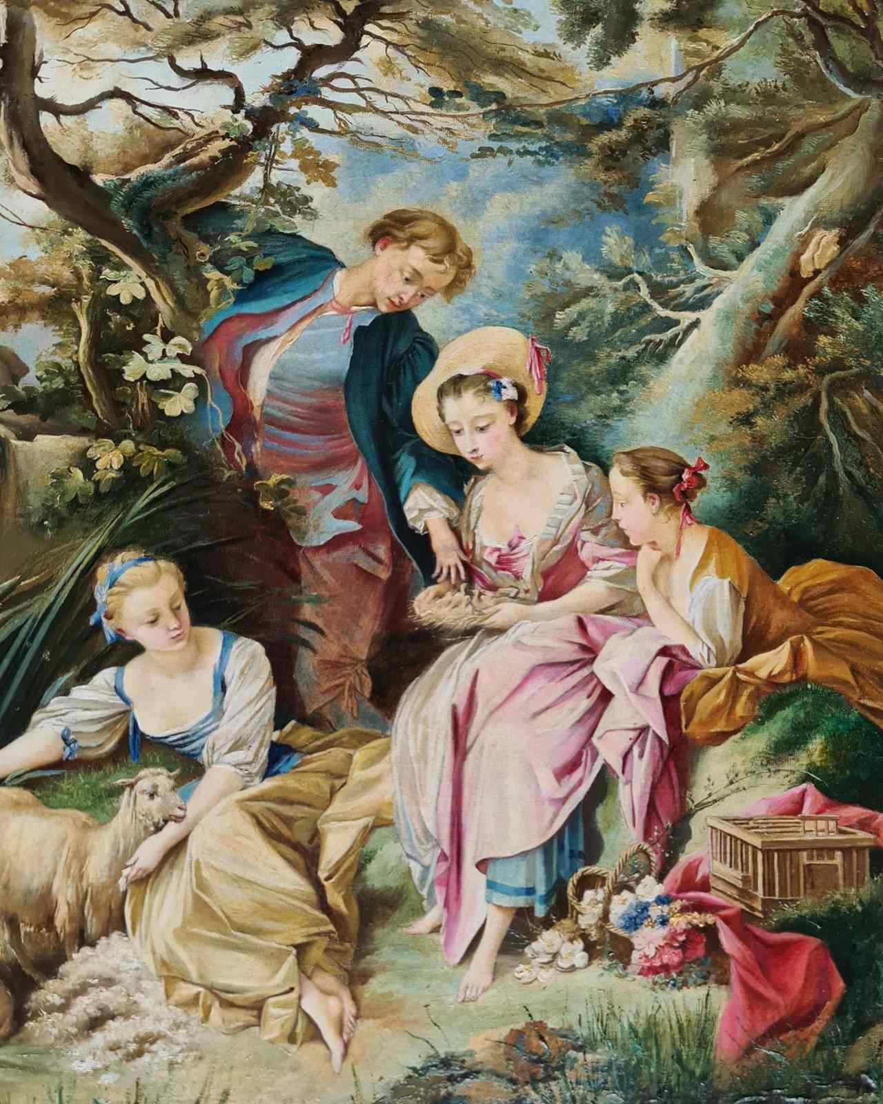 The Nest, The Shepherd's Gifts, Oil Painting In The Manner Of Francois Boucher