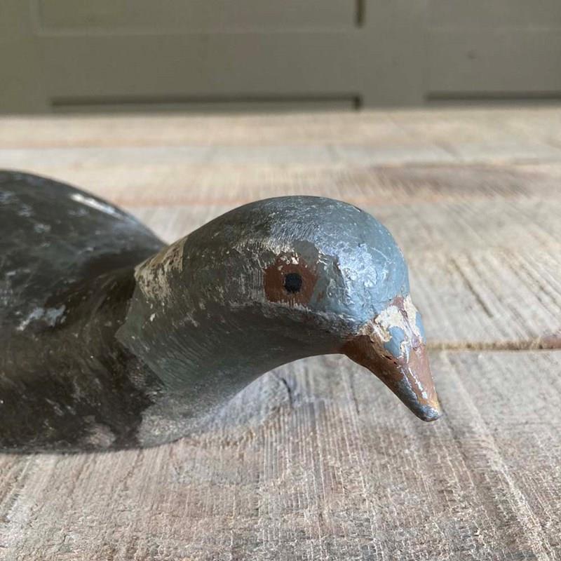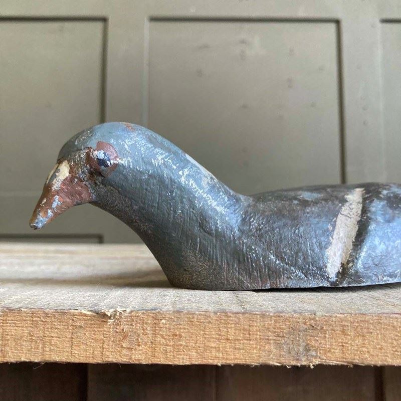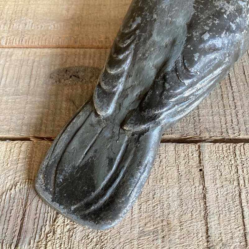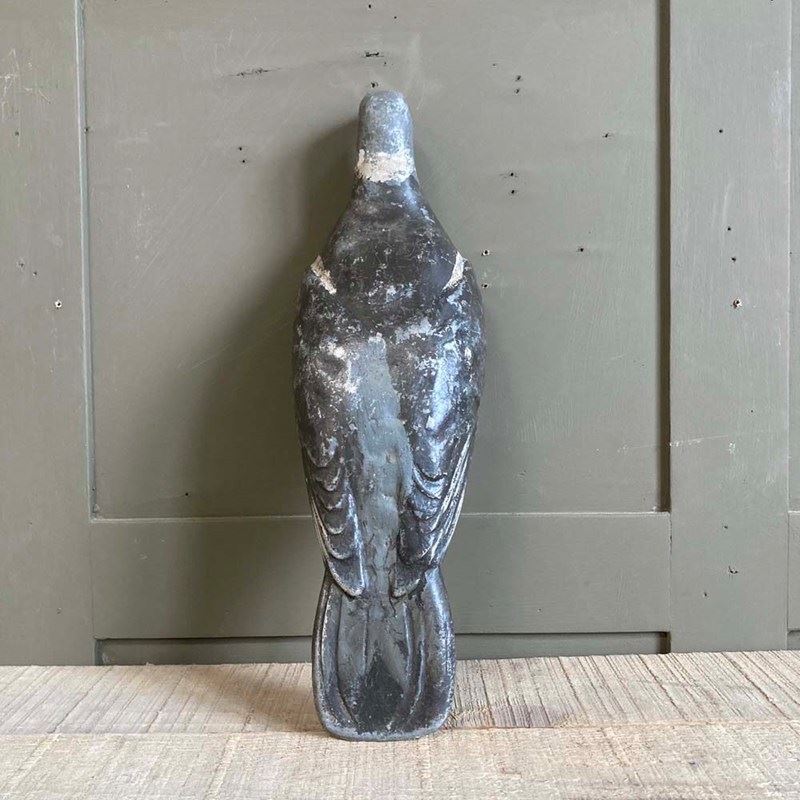 An original cast aluminium pigeon decoy patented by John Peskett in 1946. Lovely relief detail, particularly on the wings and tail feathers. It has the majority of its original paintwork, and where it has worn off, the alloy has been revealed.