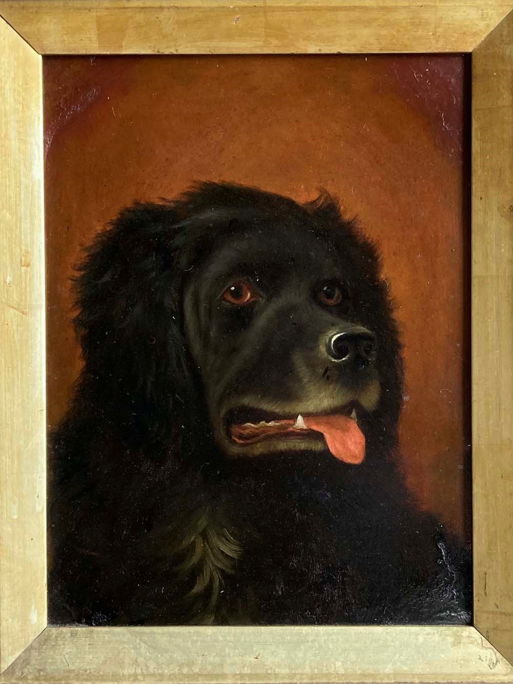 An engaging Victorian portrait of a Newfoundland water dog by the Cornish artist G. Noble. This beautifully observed study captures the animal's fur and soft muzzle remarkably well. Oil on board, in its original oak frame. A striking painting.
