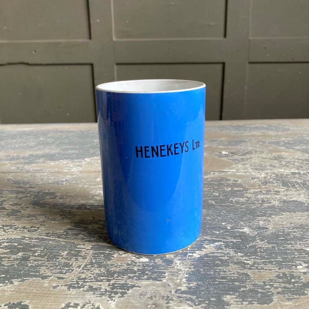 An early 20th century glazed pottery mug for serving beer. This particular one is branded with the name 'Henekeys Ltd'. The mug is in very good condition, with no chips or cracks.