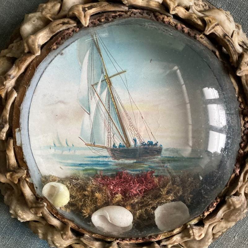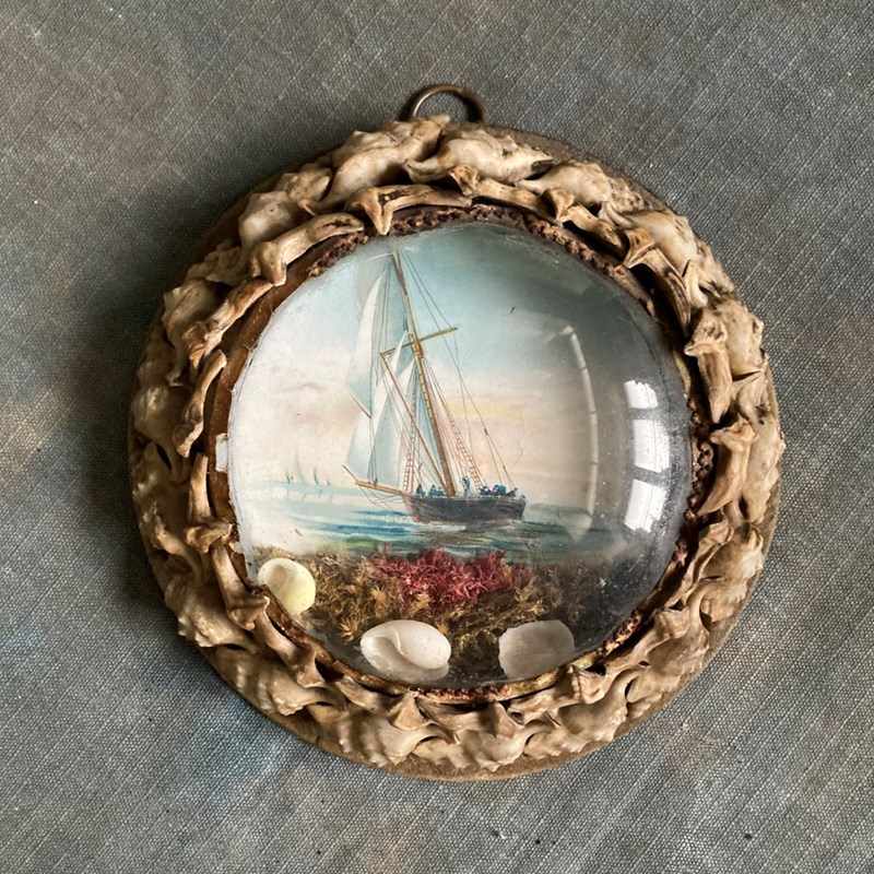 These shellwork dioramas were produced in the late Victorian/early Edwardian period as souvenirs of coastal towns and seaside locations, often bought by sailors to take home as presents for their sweethearts.