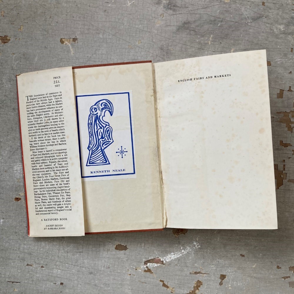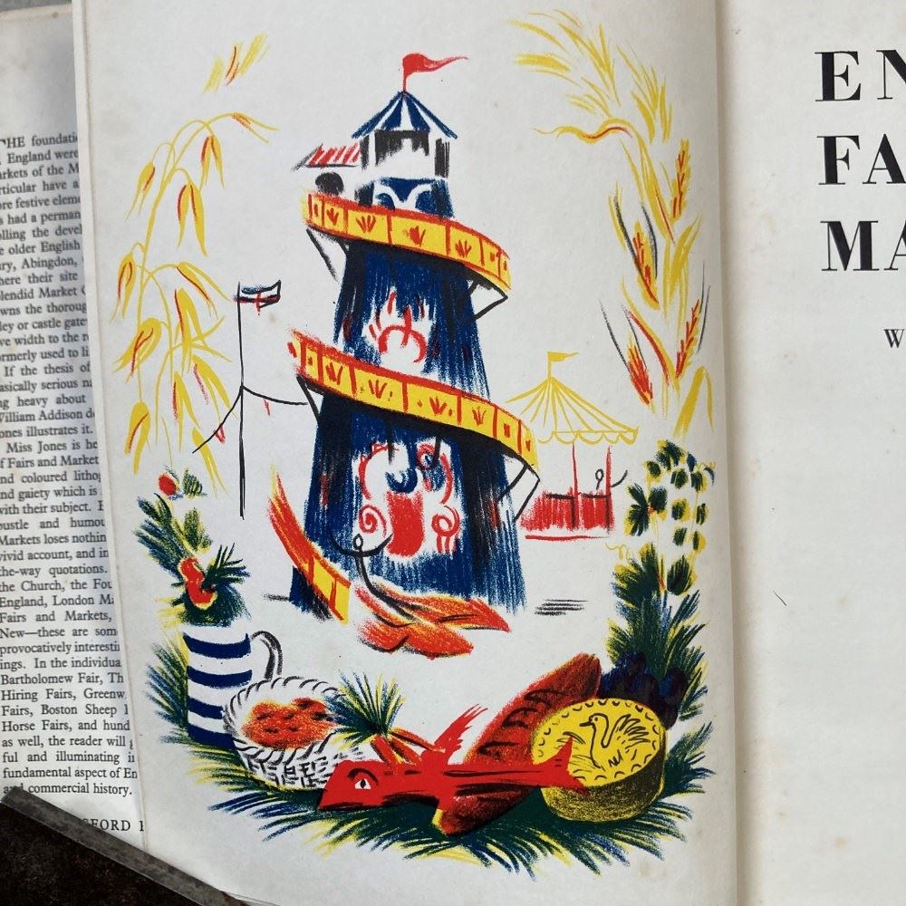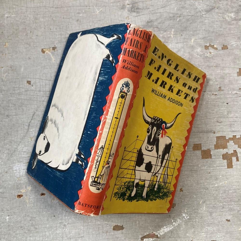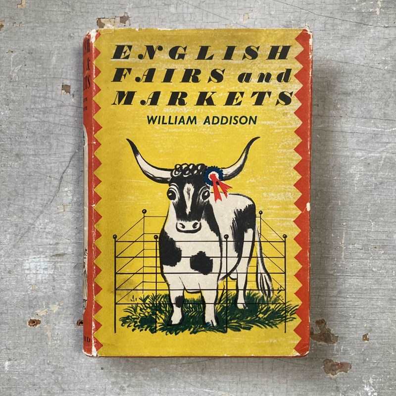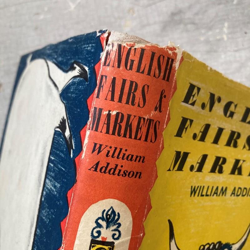 A 1953 first edition of 'English Fairs and Markets' by William Addison, with dust jacket design and internal illustrations by Barbara Jones. A good sound copy with original dust jacket. Some foxing to endpapers.