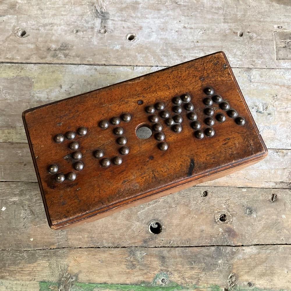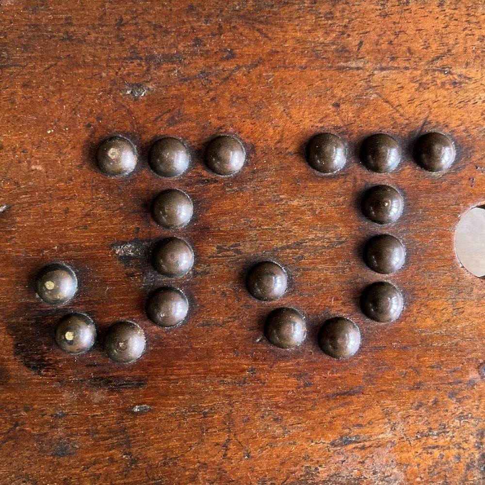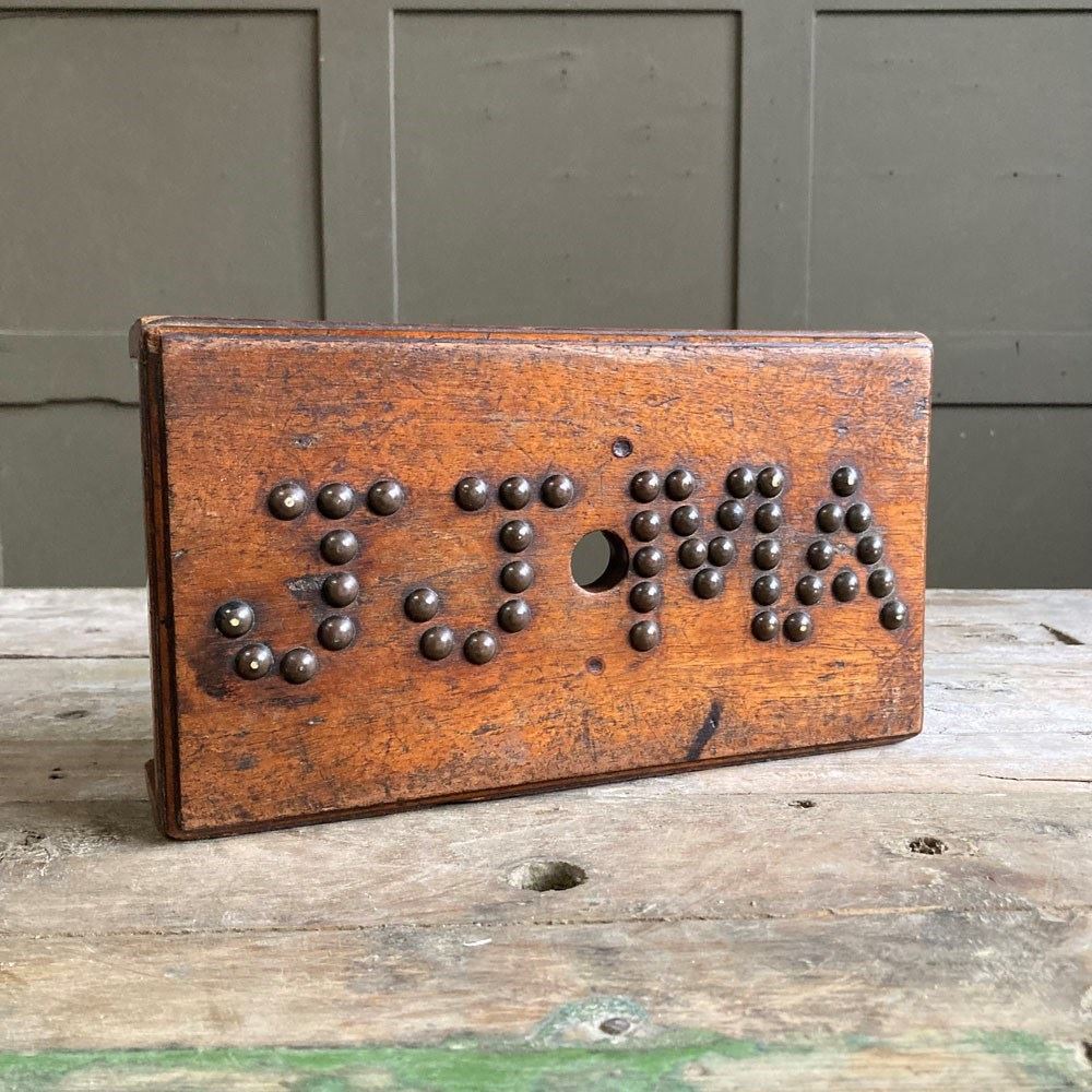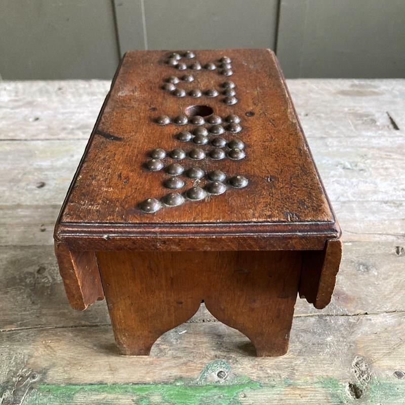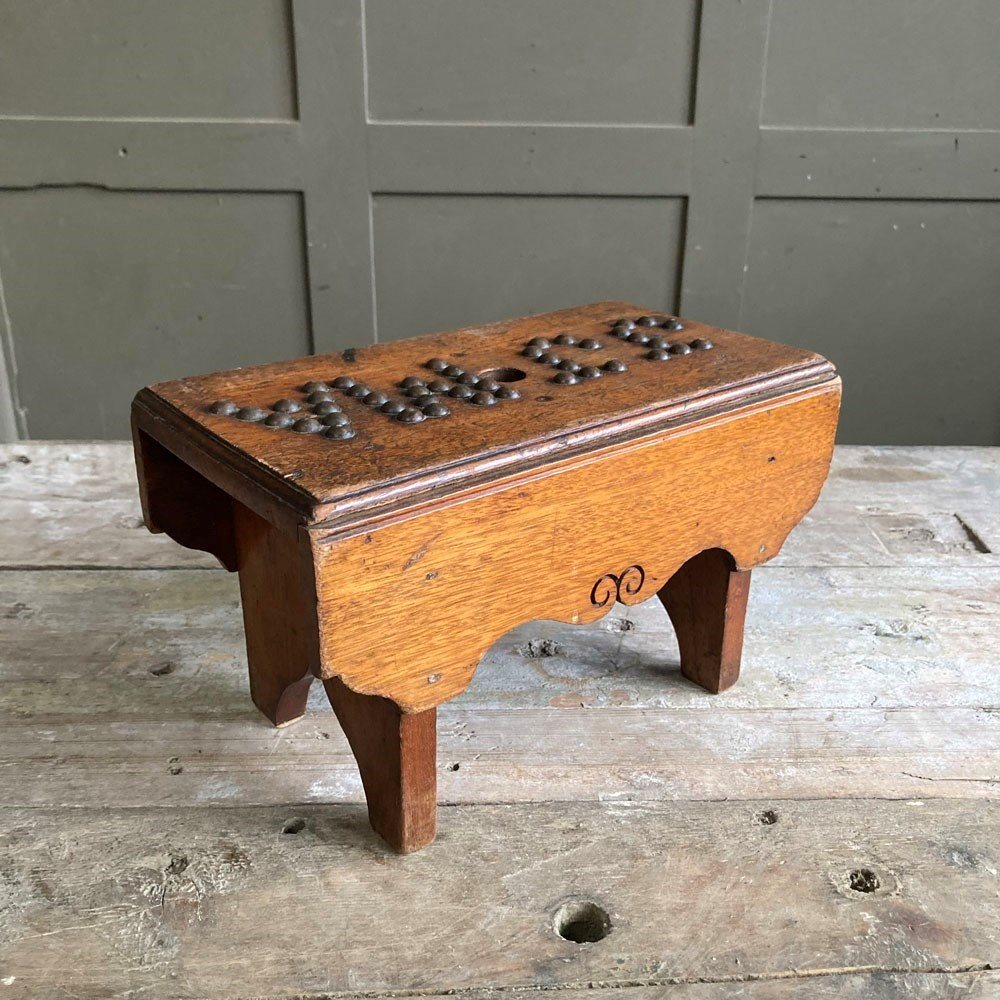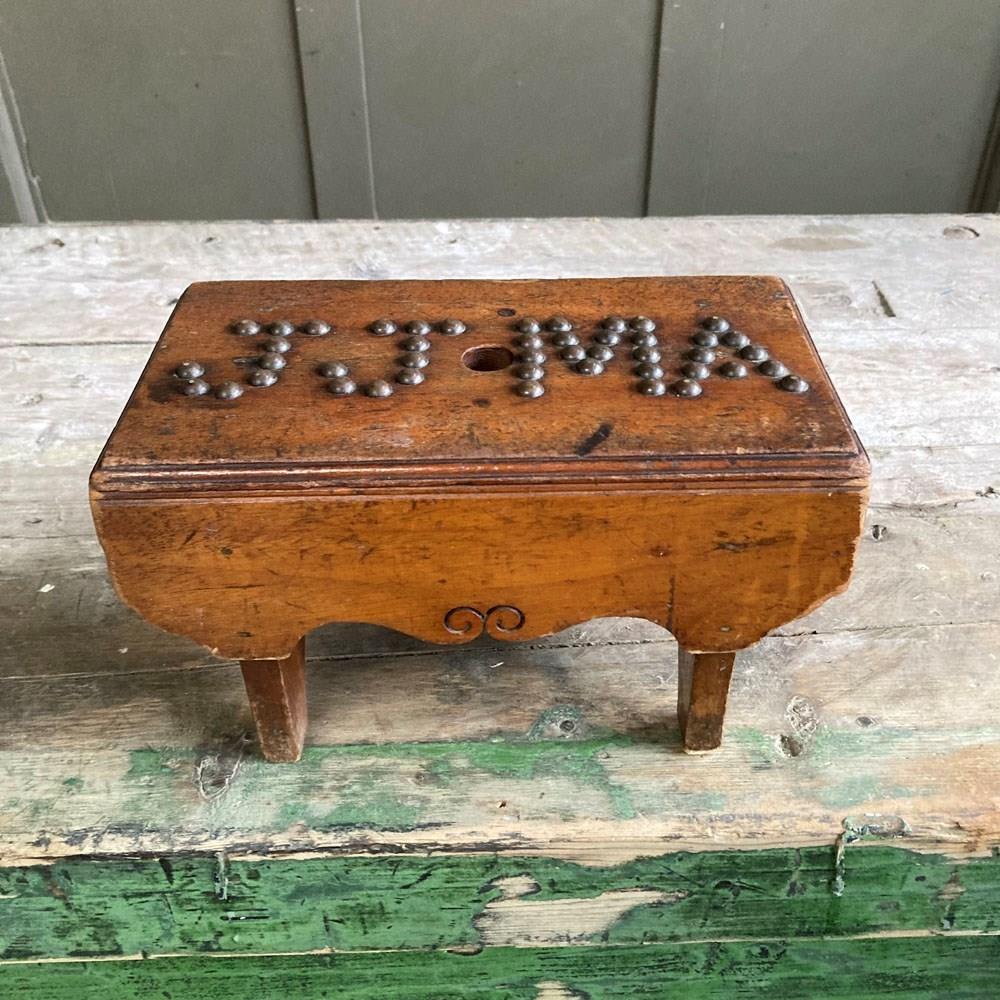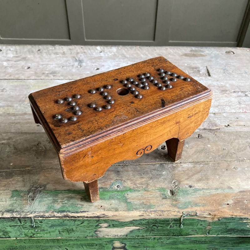 A delightful small child's stool, with incised detail and 'studded' initials to the top.