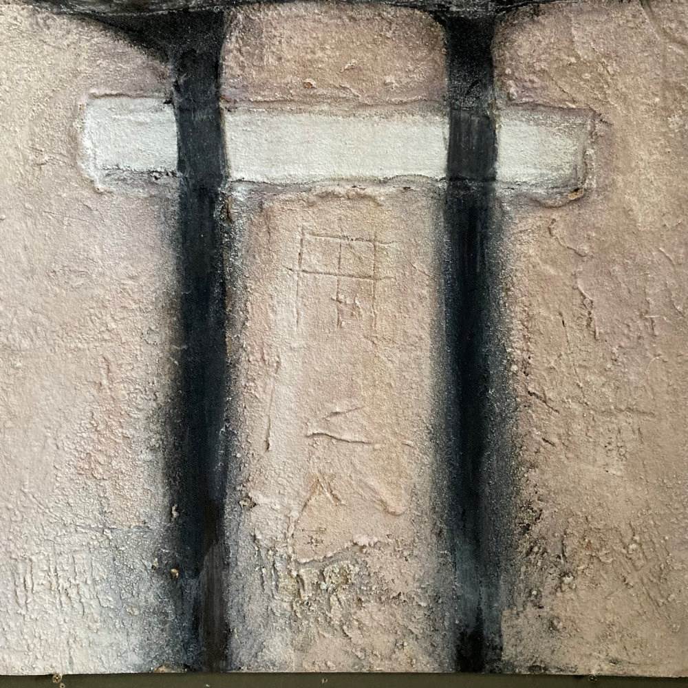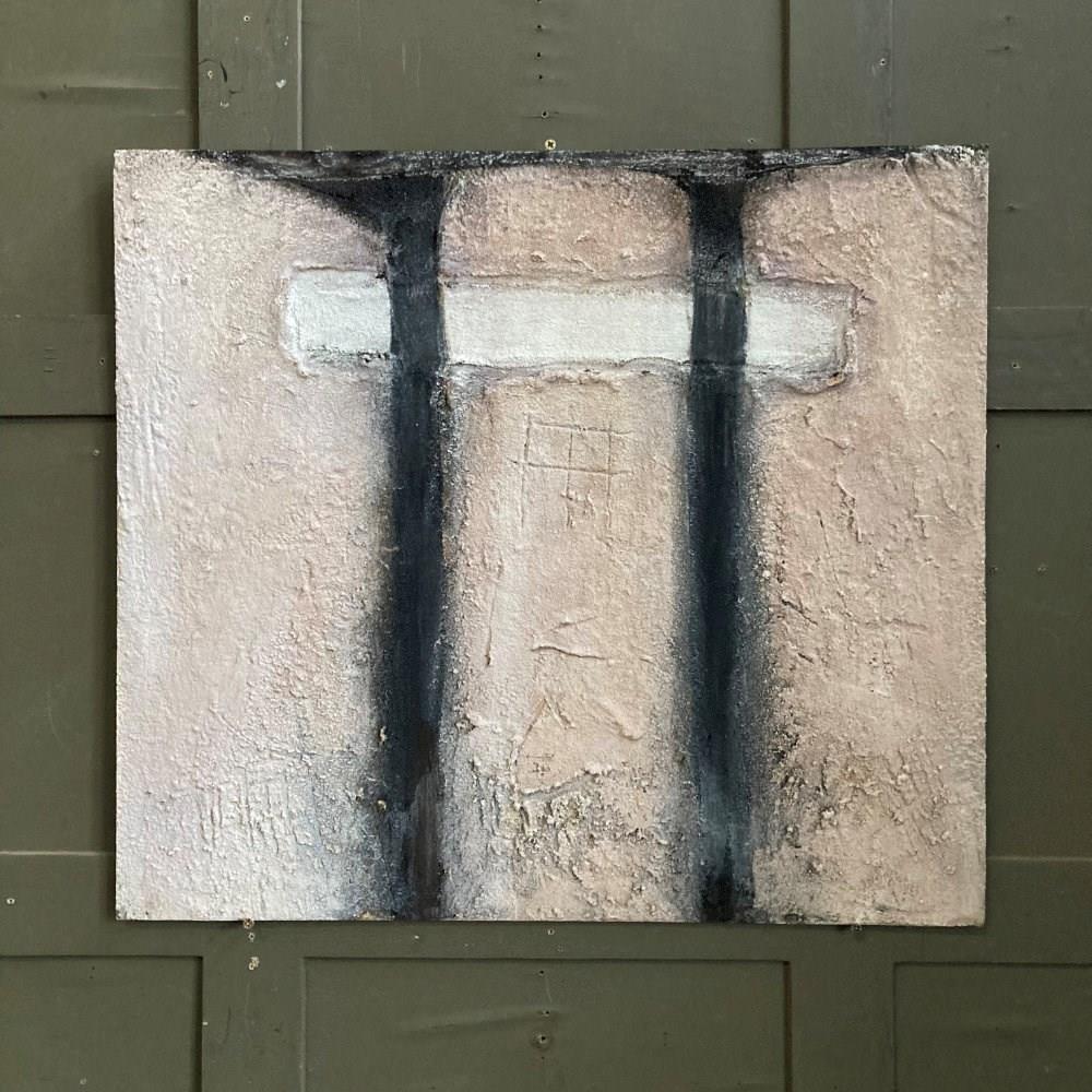 A late 20th c. abstract painting on board. Very textural. Unsigned. Sourced in Cornwall.