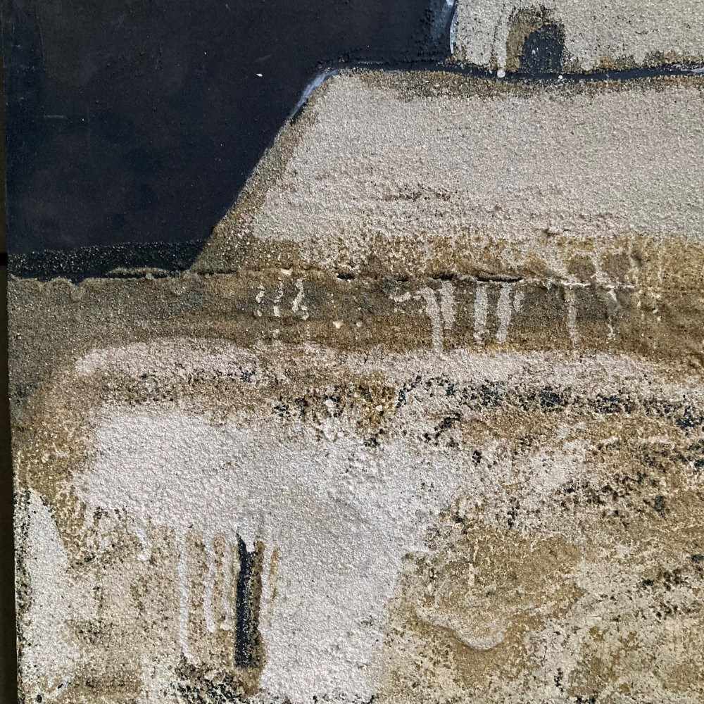 A late 20th c. abstract painting on board. Very textural. Unsigned. Sourced in Cornwall.