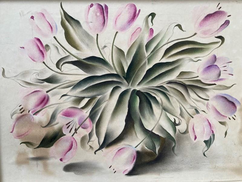 'Pink Tulips' - Still Life Painting By Frederick Roberts Johnson