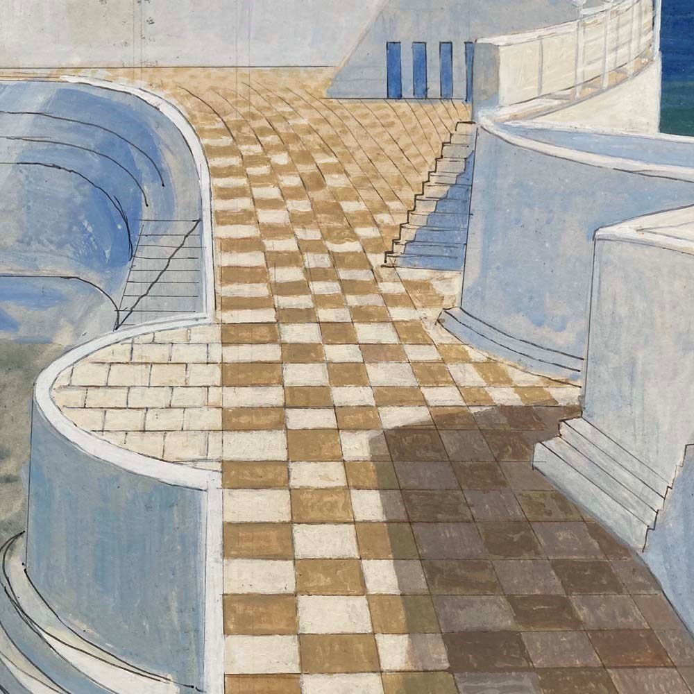 Victor Bramley (1934–2014) - Art Deco Lido (Penzance) Watercolour