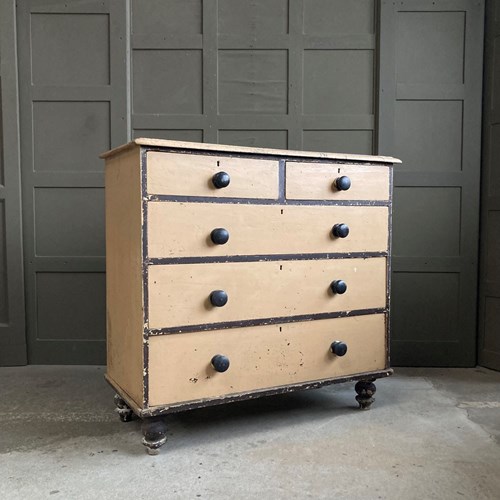 A delightful Cornish pine kitchen dresser, with lovely small proportions, made for a cottage home. 'Wood grained' paintwork, ebonised knobs, and interior dry-scraped back to its original green hue. Working lock on glazed doors, with key. Lots of folk art character and charm.